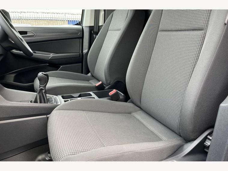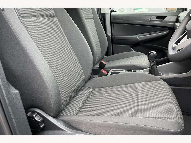 Bluetooth - Mobile phone interface, Car2X technology, Driver alert system, eCall emergency system, Intelligent Speed Assist, Lane assist, Seatbelt warning indicator, Service indicator, Start-stop system with regenerative braking, 2 USB interfaces type C in dashboard, DAB Radio, We Connect Basic Preparation, Automatic hazard light activation under emergency braking, Black front and rear bumpers, Electric front windows, Heat insulating windscreen, Roof rail preparation, Windscreen wiper with variable intermittent delay and wash-wipe system, Dimming breakaway interior rear view mirror, Electronically controlled heating system, Interior light in headliner incorporting LED technology, Lockable glove compartment door with light, Manual heating and ventilation system, Manual height adjustment for front seats, Reach and rake adjustable steering column, Six lashing points for securing loads, 3-point seat belts in front, with pretensioner and height adjustment, Driver and front passenger airbag with front passenger airbag deactivation, Tyre pressure monitoring system, Anti-theft alarm system, interior monitoring, backup horn, and towing protection, Electronic engine immobiliser, Remote central locking with deadlocks, interior locking, Anti locking braking system (ABS), Automatic post collision braking system, Autonomous Emergency Braking Front Assist with Pedestrian Monitoring, Brake assist, Diesel particulate filter, Electric parking brake with auto hold function, Electronic brake force distribution (EBD), Electronic differential lock (EDL), Electronic stabilisation programme (ESP), Engine drag torque control (MSR), Hill hold assist, Traction control system (TCS), Decorative beige birch vein inserts, Full size wheel trims,