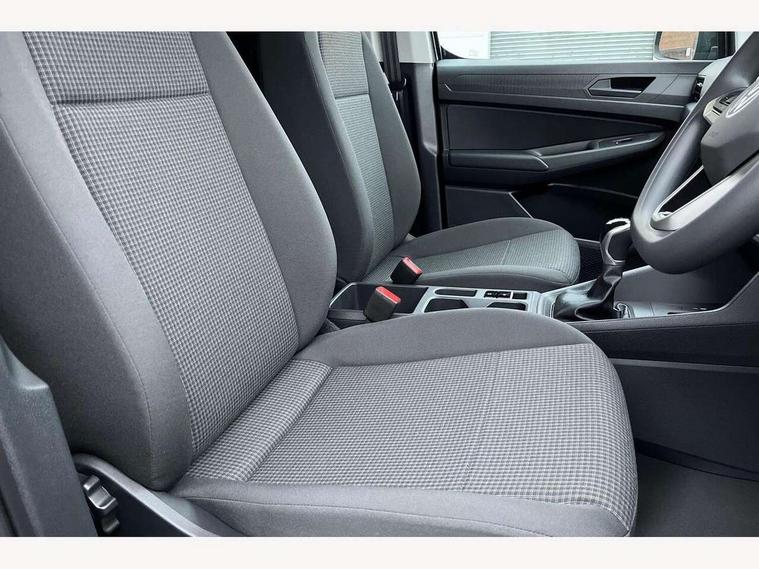Bluetooth - Mobile phone interface, Car2X technology, Driver alert system, eCall emergency system, Intelligent Speed Assist, Lane assist, Seatbelt warning indicator, Service indicator, Start-stop system with regenerative braking, 2 USB interfaces type C in dashboard, DAB Radio, We Connect Basic Preparation, Automatic hazard light activation under emergency braking, Black front and rear bumpers, Electric front windows, Heat insulating windscreen, Roof rail preparation, Windscreen wiper with variable intermittent delay and wash-wipe system, Dimming breakaway interior rear view mirror, Electronically controlled heating system, Interior light in headliner incorporting LED technology, Lockable glove compartment door with light, Manual heating and ventilation system, Manual height adjustment for front seats, Reach and rake adjustable steering column, Six lashing points for securing loads, 3-point seat belts in front, with pretensioner and height adjustment, Driver and front passenger airbag with front passenger airbag deactivation, Tyre pressure monitoring system, Anti-theft alarm system, interior monitoring, backup horn, and towing protection, Electronic engine immobiliser, Remote central locking with deadlocks, interior locking, Anti locking braking system (ABS), Automatic post collision braking system, Autonomous Emergency Braking Front Assist with Pedestrian Monitoring, Brake assist, Diesel particulate filter, Electric parking brake with auto hold function, Electronic brake force distribution (EBD), Electronic differential lock (EDL), Electronic stabilisation programme (ESP), Engine drag torque control (MSR), Hill hold assist, Traction control system (TCS), Decorative beige birch vein inserts, Full size wheel trims,