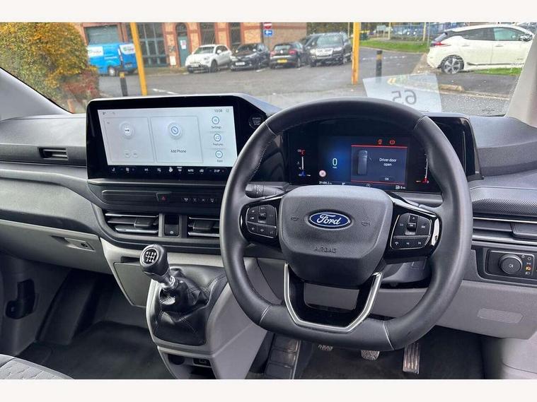 13" Touchscreen, 5G embedded modem, AECS NO SMS/Roll Detect 2G, PAS, Tyre pressure monitor, SYNC 4 - Android Auto/Apple Car Play, advance speech recognition, over the air update capability, Automatic headlights, Body coloured door mirrors, Body coloured front bumper, Body coloured rear bumpers, Daytime running lights, Electric front windows with one touch facility for driver and front passenger, Fixed DSS LED headlamps with auto high headlamp, Front splash guards, Low roof line, Quickclear front window defroster, Rear cargo hinged door, Rear splash guards, Trailer sway control, 6 Load compartment tie down loops, Courtesy light, Interior grab handle with driver's sunglasses holder, LED lights, Locking glove box lid, Sensico gearshift knob, Super bright load compartment lights, Passenger airbag, 2 remote keys, Alcohol Interlock wiring preparation pack, Keyless entry and start, Locking wheel lug nut, Thatcham category 1 alarm, 20L AdBlue tank, ABS, Diesel particulate filter, ESP, Hill launch assist, Traction control, 16" Steel spare wheel, Full wheelcovers,