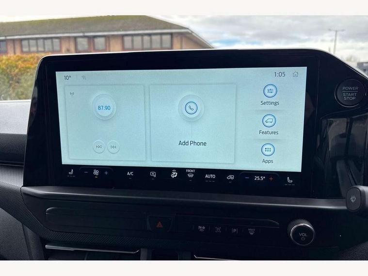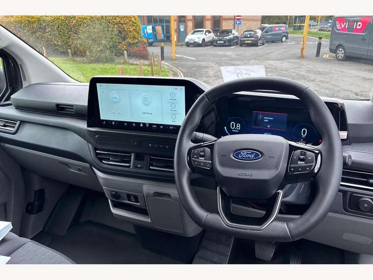 13" Touchscreen, 5G embedded modem, AECS NO SMS/Roll Detect 2G, PAS, Tyre pressure monitor, SYNC 4 - Android Auto/Apple Car Play, advance speech recognition, over the air update capability, Automatic headlights, Automatic windscreen wipers, Body coloured door mirrors, Body coloured front bumper, Body coloured rear bumpers, Daytime running lights, Electric front windows with one touch facility for driver and front passenger, Front mud flaps, Front splash guards, Low roof line, Quickclear front window defroster, Rear cargo hinged door, Rear splash guards, Trailer sway control, 6 Load compartment tie down loops, Courtesy light, Interior grab handle with driver's sunglasses holder, LED lights, Locking glove box lid, Sensico gearshift knob, 2 remote keys, Alcohol Interlock wiring preparation pack, Keyless entry and start, Locking wheel lug nut, Thatcham category 1 alarm, 20L AdBlue tank, ABS, Diesel particulate filter, ESP, Hill launch assist, Traction control, Full wheelcovers,