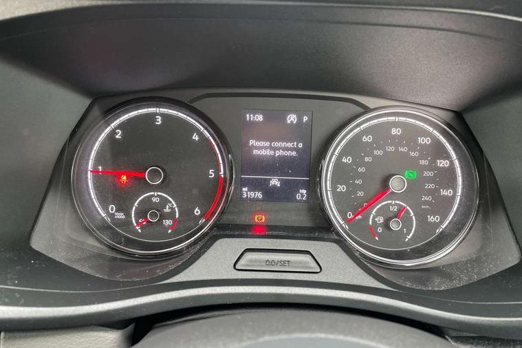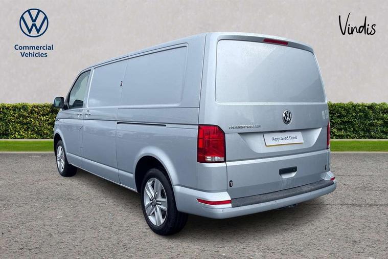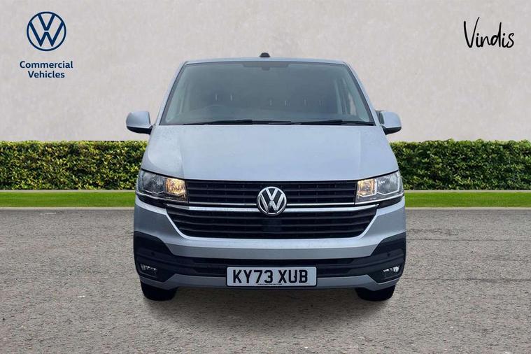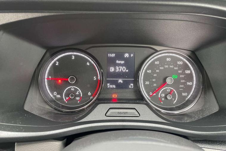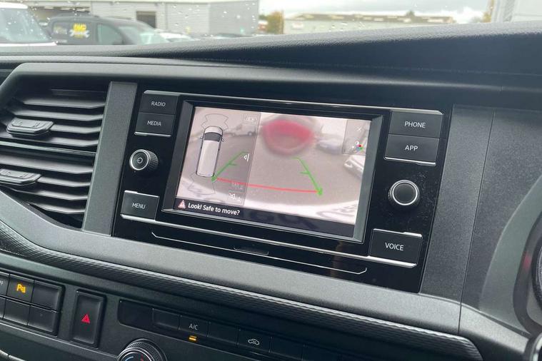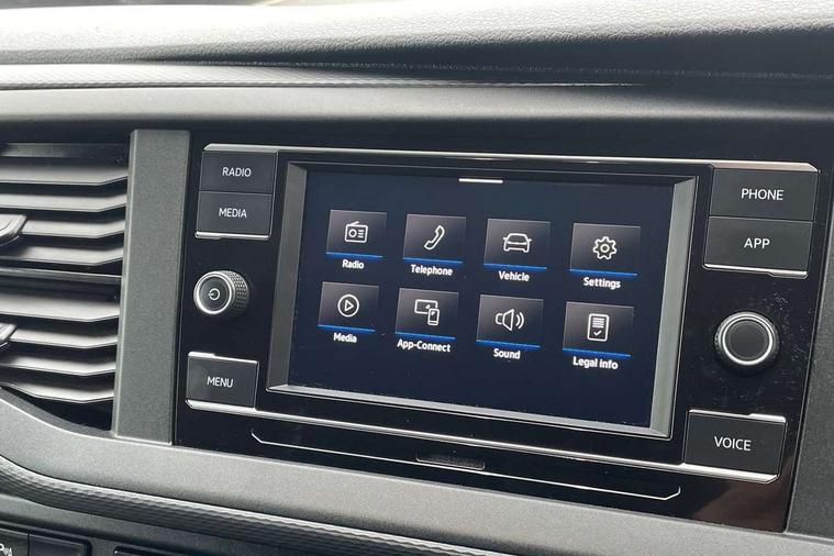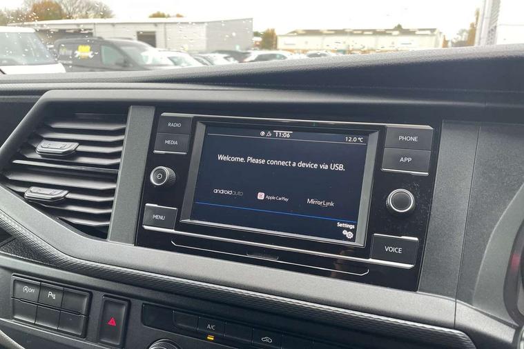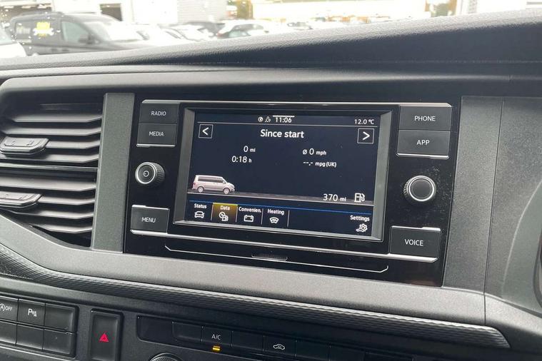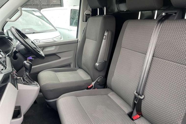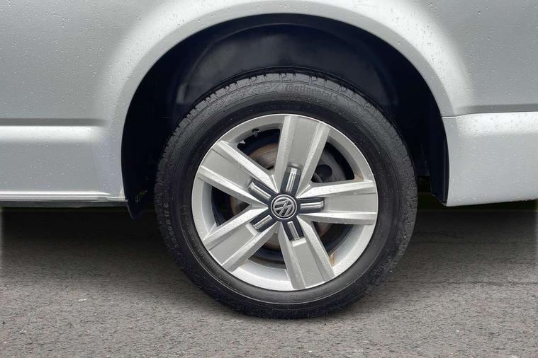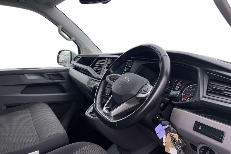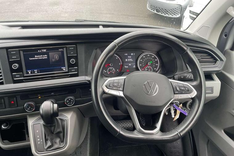 Adaptive cruise control, Cross wind assist, Dimmable illuminated instruments, Driver alert with Multi-function display plus, eCall emergency system, Forward collision warning front assist with autonomous emergency braking, Mobile phone interface, Multi function display plus with black and white display, 2 USB interfaces type C in dashboard, 4 speakers with 2 tweeters and 2 woofers, Composition colour radio with 6.5" touchscreen, Digital radio reception (DAB+), Volkswagen app connect, Closing rear wing door with unlatching from the inside, Front fog lamps with cornering light, Heat insulating glass (green) in cab and passenger/load compartment, Heated front windscreen, Left convex exterior mirror, Power folding adjustable door mirrors with separately heated, Radiator grille with 2 chrome trims, Rear wing doors without window apertures, Right convex exterior mirror, Transporter nameplate on the rear fender, 3 spoke leather wrapped multi function steering wheel, Comfort headliner in cab, hardboard roof trim in passenger and load compartment, Dust/pollen filter, Front and rear left without window closed side panel in load compartment, Front seats on the right in 1st row of seat, Heavy duty tool kit and jack, High partition, Interior plastic loading edge protection, LED Interior lighting in load and passenger compartment, Refrigerant R134a, Standard lower part dashboard in palladium, Storage compartments on cab seats and reading light, Without right side window apertures in passenger and load compartment, Comfort pack - Transporter, Exterior pack without fog light- Transporter, Light and vision pack - Transporter, Non smoker pack - Transporter, 3 point height adjustable seat belts on outer seats cab with electric pretensioners, Driver and front passenger airbag with front passenger airbag deactivation, Warning buzzer and light for driver and front passenger seat belt not fastened, Without child safety lock in passenger compartment, Anti theft alarm system with interior monitoring in cab, backup horn and towing protection, Lockable wheel bolts, 16" chassis with 16" brake system, Diesel particulate filter, Electronic stability control, ABS, ASR with deactivation button, hill start assist and brake assist system, Start/stop system with regenerative breaking, 17" Devonport alloy wheels,