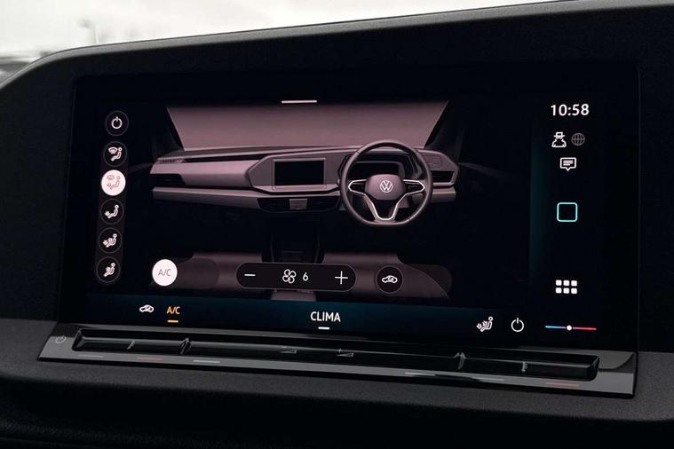 Bluetooth - Mobile phone interface, Car2X technology, Driver alert system, eCall emergency system, Intelligent Speed Assist, Lane assist, Seatbelt warning indicator, Service indicator, Start-stop system with regenerative braking, 2 USB interfaces type C in dashboard, DAB Radio, We Connect Basic Preparation, Automatic hazard light activation under emergency braking, Electric front windows, Heat insulating windscreen, Roof rail preparation, Windscreen wiper with variable intermittent delay and wash-wipe system, Dimming breakaway interior rear view mirror, Electronically controlled heating system, ergoComfort seats for driver, Interior light in headliner incorporting LED technology, Lockable glove compartment door with light, Manual heating and ventilation system, Manual height adjustment for front seats and seat cushion inclination and depth adjustment on drivers seat, Multi function leather steering wheel, Power-adjustable lumbar support for drivers seat, Reach and rake adjustable steering column, Six lashing points for securing loads, Steering wheel paddle shift, Storage compartments under driver and front passenger seats, Sun visors with mirror, airbag label on front passenger sun visor, 3-point seat belts in front, with pretensioner and height adjustment, Driver and front passenger airbag with front passenger airbag deactivation, Tyre pressure monitoring system, Anti-theft alarm system, interior monitoring, backup horn, and towing protection, Electronic engine immobiliser, Remote central locking with deadlocks, interior locking, Anti locking braking system (ABS), Automatic post collision braking system, Brake assist, Diesel particulate filter, Electric parking brake with auto hold function, Electronic brake force distribution (EBD), Electronic differential lock (EDL), Electronic stabilisation programme (ESP), Engine drag torque control (MSR), Hill hold assist, Traction control system (TCS), Decorative beige birch vein inserts, Full size wheel trims,
