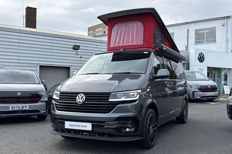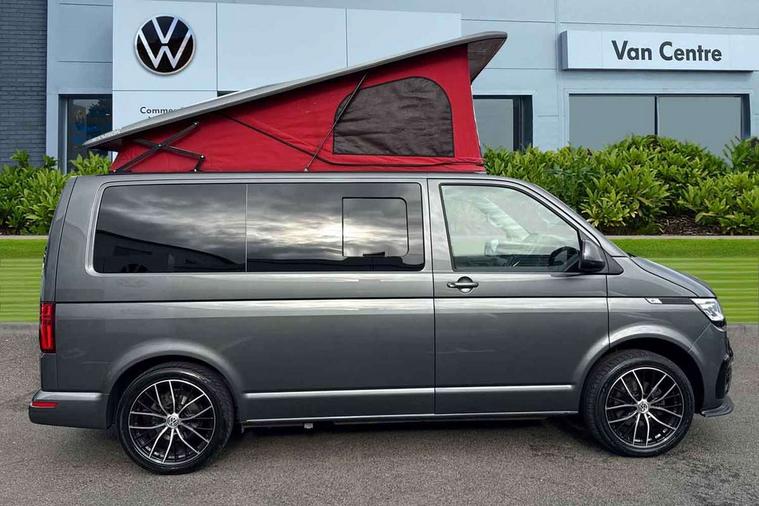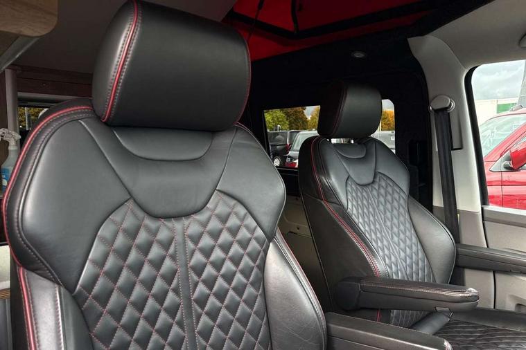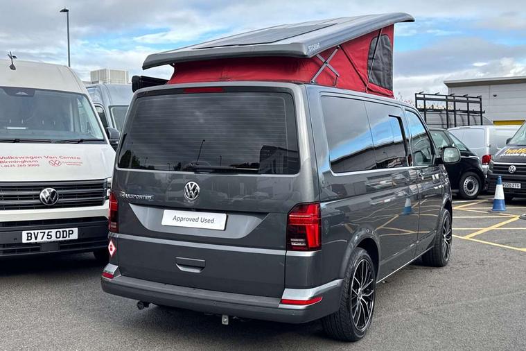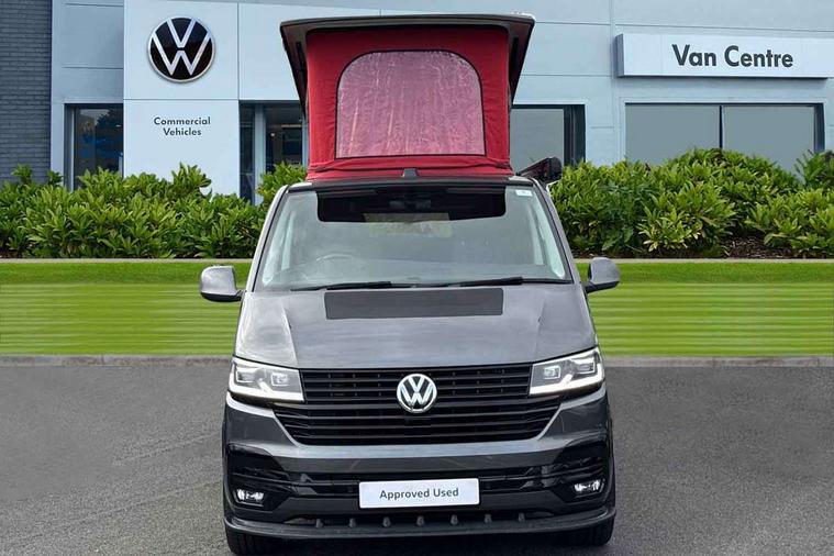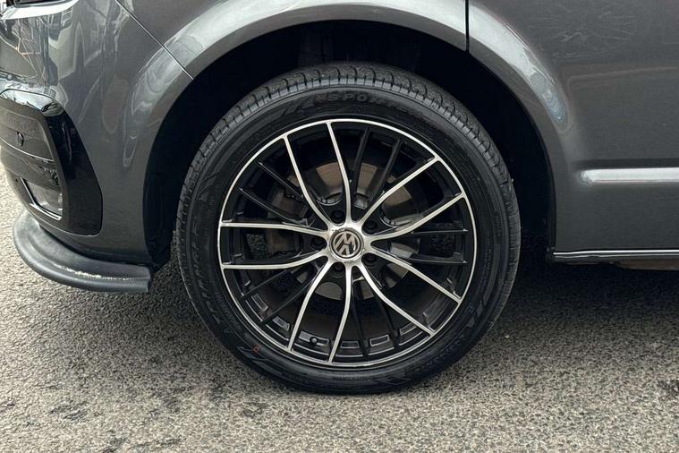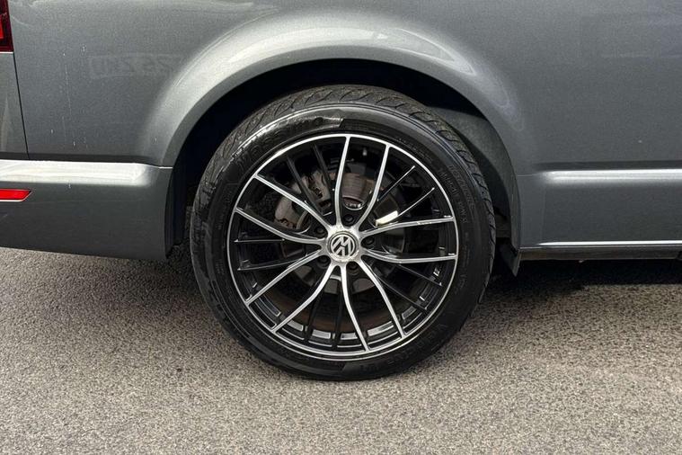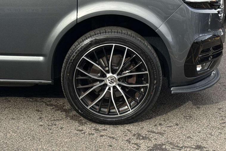 Adaptive cruise control, Cross wind assist, Dimmable illuminated instruments, Driver alert with Multi-function display plus, eCall emergency system, Electromechanical speed sensitive power steering, height and longitudinally adjustable steering column, Forward collision warning front assist with autonomous emergency braking, Mobile phone interface, Multi function display plus with black and white display, 2 USB interfaces type C in dashboard, 4 speakers with 2 tweeters and 2 woofers, Composition colour radio with 6.5" touchscreen, Digital radio reception (DAB+), Volkswagen app connect, Automatic headlight control, leaving home and manual coming home feature, Closing rear wing door with unlatching from the inside, Front fog lamps with cornering light, Green tinted heat insulating glass in cab and passenger compartment, Heated front windscreen, Left convex exterior mirror, Power adjustable and heated exterior mirrors, Power folding adjustable door mirrors with separately heated, Radiator grille with 2 chrome trims, Rear wing doors without window apertures, Right convex exterior mirror, Transporter nameplate on the rear fender, Windshield wiper intermittent control with rain sensor for windshield wipers, 3 spoke leather wrapped multi function steering wheel, Auto dimming breakaway interior rear view mirror, Comfort headliner in cab, hardboard roof trim in passenger and load compartment, Dust/pollen filter, Front and rear left without window closed side panel in load compartment, Front seats on the right in 1st row of seat, Glove compartment with illumination, High partition, Interior plastic loading edge protection, LED Interior lighting in load and passenger compartment, Manual adjustable lumbar support for right single seat in 1st row seats, Refrigerant R134a, Rubber floor covering in cab, Standard lower part dashboard in palladium, Storage compartments on cab seats and reading light, Without right side window apertures in passenger and load compartment, Comfort pack - Transporter, Exterior pack without fog light- Transporter, Non smoker pack - Transporter, 3 point height adjustable seat belts on outer seats cab with electric pretensioners, Driver and front passenger airbag with front passenger airbag deactivation, Single tone horn, Warning buzzer and light for driver and front passenger seat belt not fastened, Without child safety lock in passenger compartment, Anti theft alarm system with interior monitoring in cab, backup horn and towing protection, Lockable wheel bolts, 16" chassis with 16" brake system, Diesel particulate filter, Electronic stability control, ABS, ASR with deactivation button, hill start assist and brake assist system, Start/stop system with regenerative breaking, 16" Clayton alloy wheels,