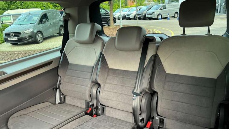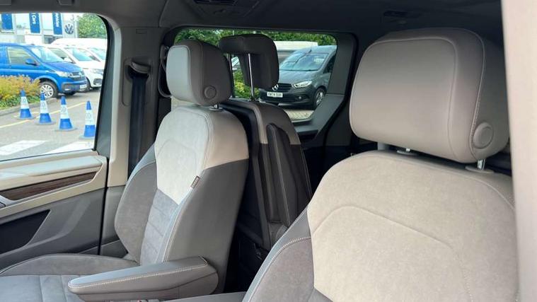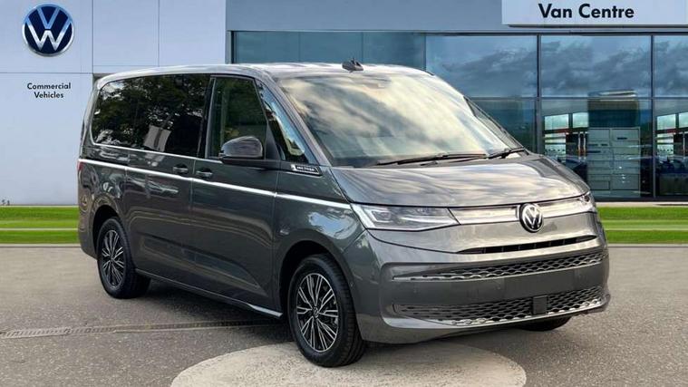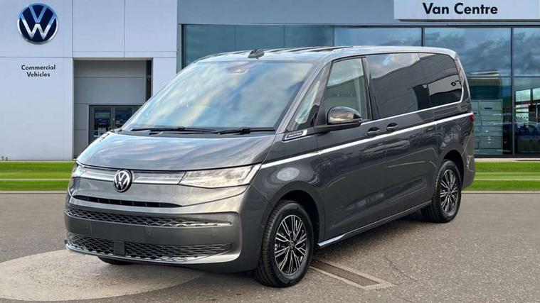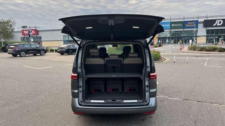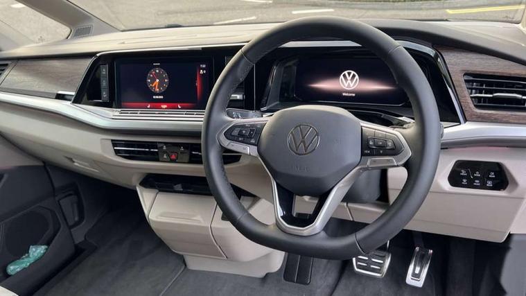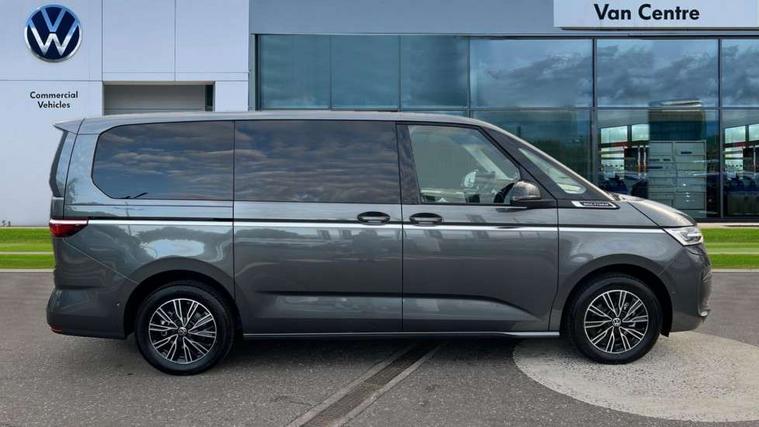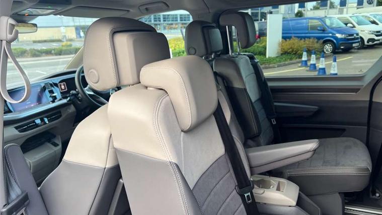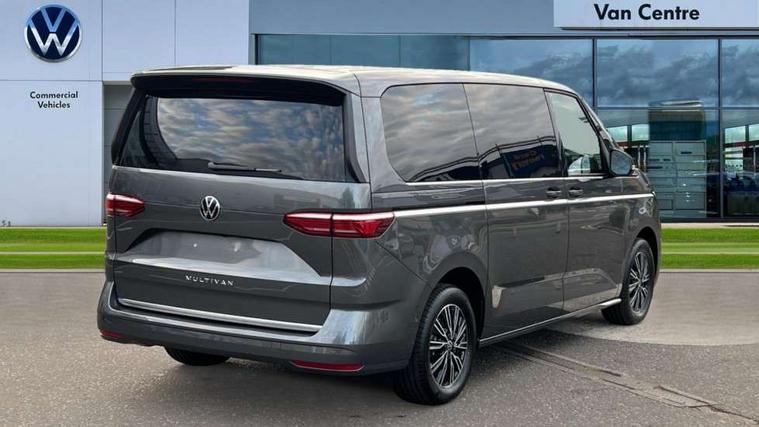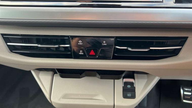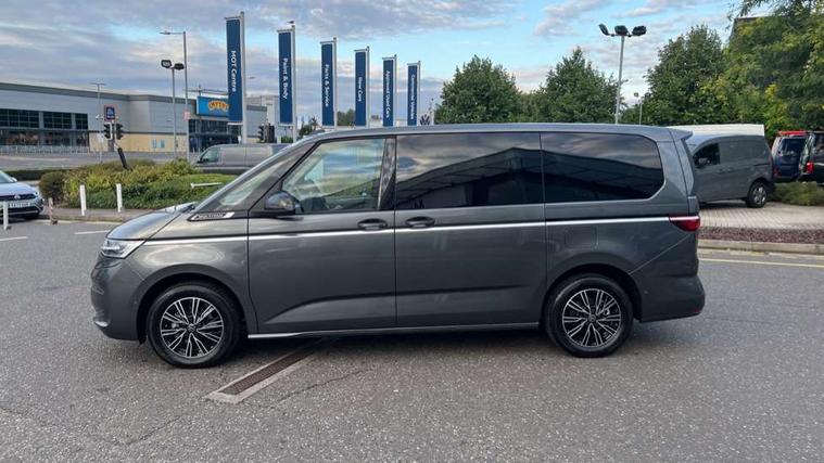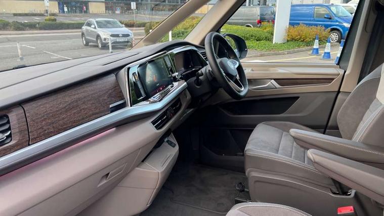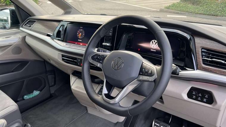 Adaptive cruise control with C2X including front assist and city emergency braking system, Digital Cockpit Pro with 10.25" colour display with adaptable display includes navigation map display, telephone contact images and audio information, Discover media pro navi system with 10" colour touch incl DAB+radio/appconnect for apple carplay/android auto/streaming and internet/gesture control, Driver alert system, Dynamic road sign display, eCall emergency system, Electrically-operated tailgate opening and closing function (Easy open), operated via foot movement under rear tailgate, Emergency assist, Front Cross Traffic Alert, Lane change system with side assist including blind spot monitor, rear traffic alert and exit warning system, Lane keeping system Lane Assist, Mobile phone interface, PAS, Semi-automated driving assistance, Tailgate, Travel assist, Voice control system including Alexa web app, We connect preparation, Electronic differential lock, 2 USB-C ports in front and 4 USB-C ports in passenger compartment, Additional interior noise reduction measures, Advanced high beam control dynamic light assist for LED matrix headlamps, Automatic headlight control with welcome home lights, Body coloured exterior door handles, Break away auto dimming rear view interior mirror, Chrome trim decorative strip mid-way on side and rear, Dynamic headlight range control with dynamic cornering light, Electrically adjustable, heated and folding door mirrors, Front fog lights, Glossy black painted radiator grille with 2 illuminated chrome trims, Heated rear window with window wiper and washer system, Heated windscreen, High gloss black exterior mirror housing, IQ.Light LED matrix headlamps with LED separate daytime running light, Laminated safety glass windshield, heat and sound insulating, LED 3rd brake lamp, LED rear combination lamps, Rear wiper, Stainless steel tailgate trim, Surround lighting in door area and tailgate with logo projection in door area, Windshield wiper intermittent control with rain sensor, 1 x 12V sockets on the dash panel, 12V socket in passenger compartment, 3 seat bench in 3rd row, 30 colours ambient interior lighting and tailgate surround lighting, 7 single seats removable/movable, Carpet mats in cab, Climatronic 3 zone air conditioning with additional control panel in passenger compartment, Front and rear head restraints, Grab handles on A pillar for access, on driver and front passenger side, Height adjustable seats, Height and longitudinal adjustment steering wheel with gear shift paddles, Illumination lockable glovebox compartment, ISOFIX (including i-size) and top tether in all seats in 2nd and 3rd rows, LED luggage compartment lighting X 2, Load compartment partition to 20kg with bag hooks and luggage net, Luggage compartment lid power latching with unlatching from inside, Multifunction leather steering wheel with tiptronic, Reinforced carpet floor covering in passenger compartment, Removable armrests for front seats with power adjustable lumbar support and folding table for 2nd row passenger seats, Removable armrests in 2nd row passenger seats, Single front passenger seat, Slidable multifunction table/centre console with 3 cup holders, Stainless steel pedals, Storage compartment under the 2nd and 3rd row seat and two waste bins, Sun visors with illuminated vanity mirror, ticket holder on driver side with airbag warning label on sunvisor and B-pillar, Easy open package - Multivan, 3x3 point rear seat belts, ABS, Automatic post collision braking system, Autonomous emergency braking front assist with pedestrian and cyclist monitoring, Driver and front passenger airbag with front passenger airbag deactivation, Electric childproof lock, Electronic stability control (ESC) and Electromechanical brake booster, ESP, First aid kit with warning triangle and safety vest, Front disc brakes, Hill hold assist, Seat belt warning for the drivers and all passengers seats if unfastened, Side and curtain airbags for driver and front passenger, curtain airbags for outer seats in rear, centre airbag in front, Single tone horn, Traction control, Tyre pressure monitoring system, Anti theft alarm system with interior monitoring in cab, backup horn and towing protection, Central locking system with interior control and safe lock, Keyless advanced with keyless entry, Start/stop button on centre console, Dark woodgrain optic decorative inserts,