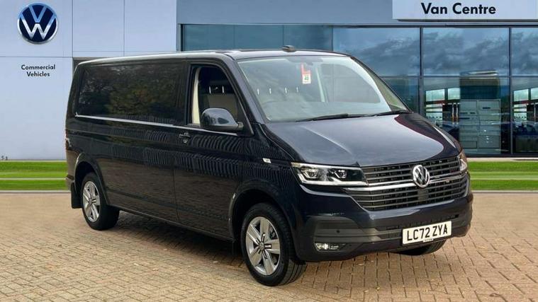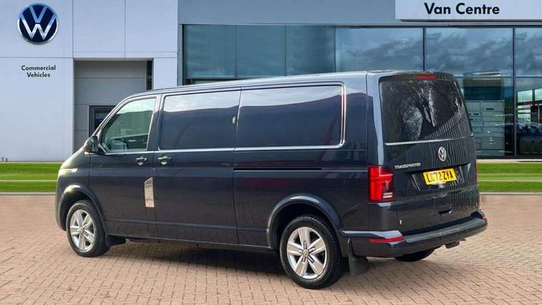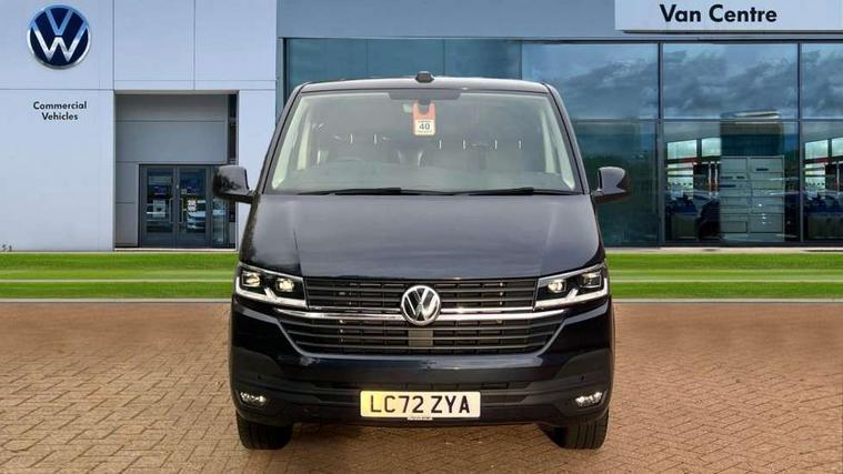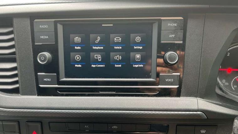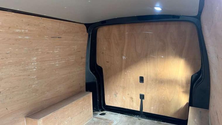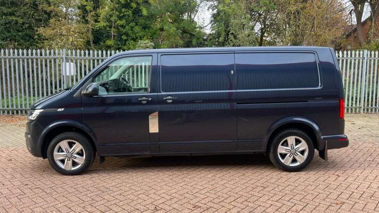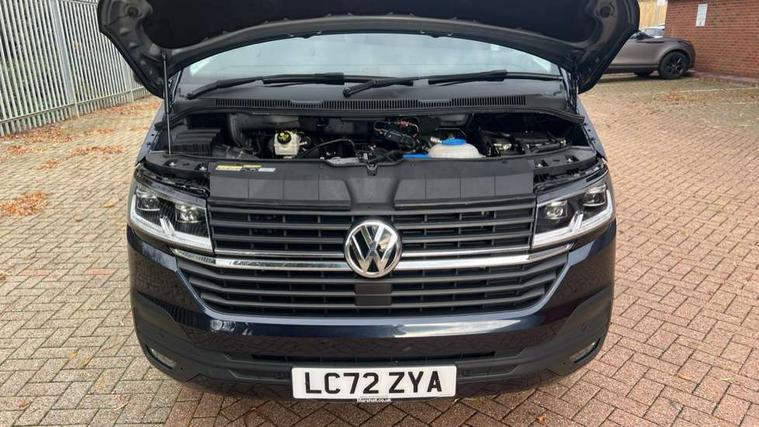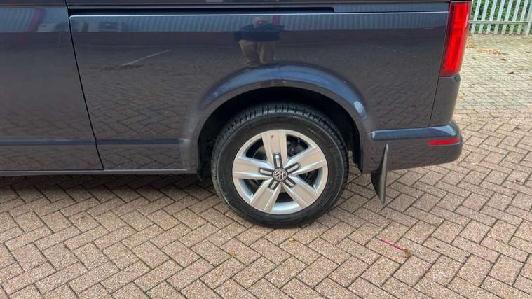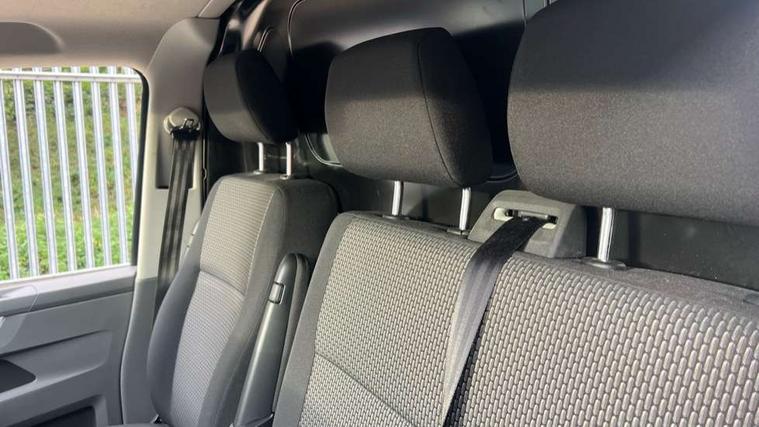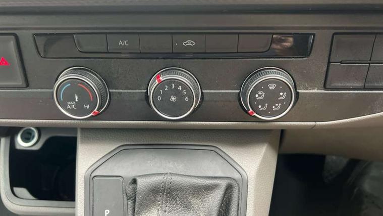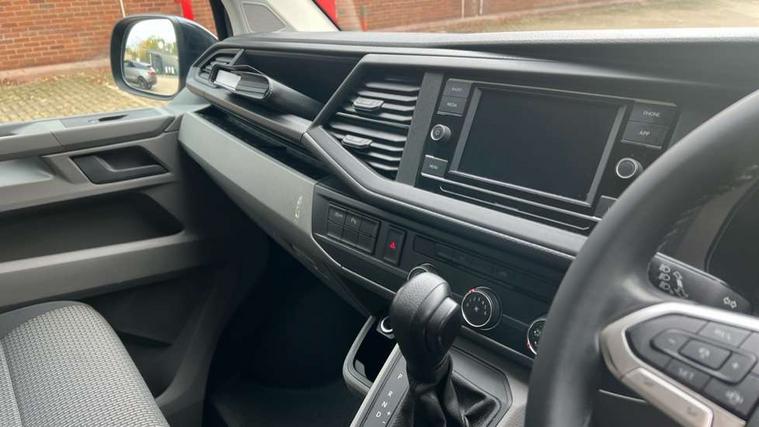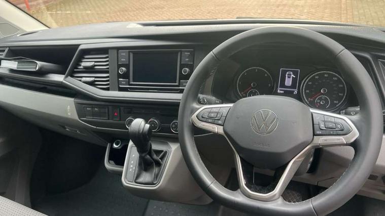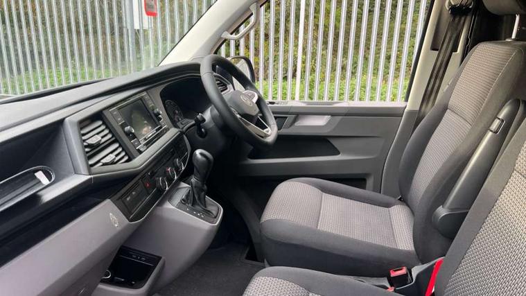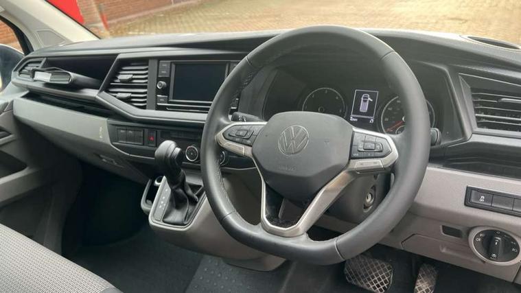 Adaptive cruise control, Cross wind assist, Dimmable illuminated instruments, Driver alert with Multi-function display plus, eCall emergency system, Forward collision warning front assist with autonomous emergency braking, Mobile phone interface, Multi function display plus with black and white display, 2 USB interfaces type C in dashboard, 4 speakers with 2 tweeters and 2 woofers, Composition colour radio with 6.5" touchscreen, Digital radio reception (DAB+), Volkswagen app connect, Automatic headlight control, leaving home and manual coming home feature, Closing rear wing door with unlatching from the inside, Front fog lamps with cornering light, Heat insulating glass (green) in cab and passenger/load compartment, Heated front windscreen, Left convex exterior mirror, Power folding adjustable door mirrors with separately heated, Radiator grille with 2 chrome trims, Rear wing doors without window apertures, Right convex exterior mirror, Transporter nameplate on the rear fender, Windshield wiper intermittent control with rain sensor for windshield wipers, 3 spoke leather wrapped multi function steering wheel, Auto dimming breakaway interior rear view mirror, Comfort headliner in cab, hardboard roof trim in passenger and load compartment, Dust/pollen filter, Front and rear left without window closed side panel in load compartment, Front seats on the right in 1st row of seat, Glove compartment with illumination, Heavy duty tool kit and jack, High partition, Interior plastic loading edge protection, LED Interior lighting in load and passenger compartment, Manual adjustable lumbar support for right single seat in 1st row seats, Refrigerant R134a, Standard lower part dashboard in palladium, Storage compartments on cab seats and reading light, Without right side window apertures in passenger and load compartment, Comfort pack - Transporter, Exterior pack without fog light- Transporter, Non smoker pack - Transporter, 3 point height adjustable seat belts on outer seats cab with electric pretensioners, Driver and front passenger airbag with front passenger airbag deactivation, Warning buzzer and light for driver and front passenger seat belt not fastened, Without child safety lock in passenger compartment, Anti theft alarm system with interior monitoring in cab, backup horn and towing protection, Lockable wheel bolts, 16" chassis with 16" brake system, Diesel particulate filter, Electronic stability control, ABS, ASR with deactivation button, hill start assist and brake assist system, Start/stop system with regenerative breaking, 16" Clayton alloy wheels,
