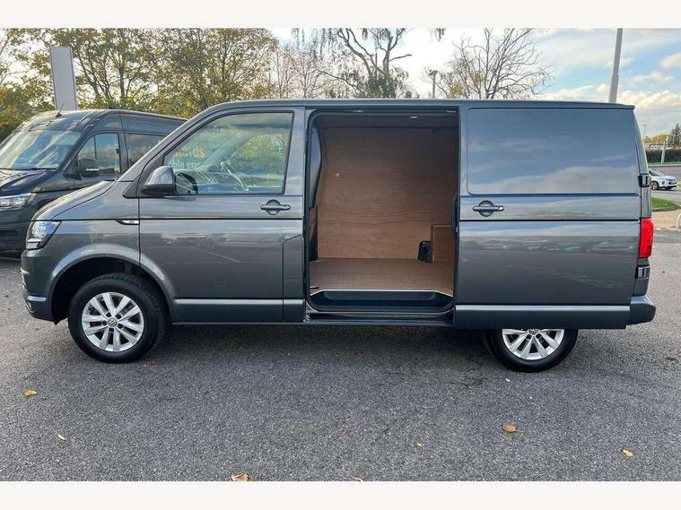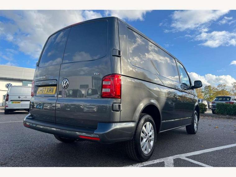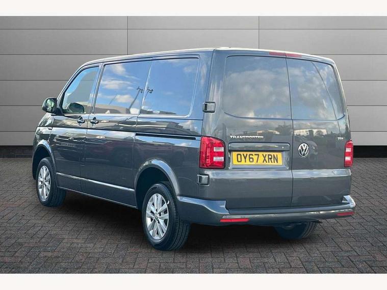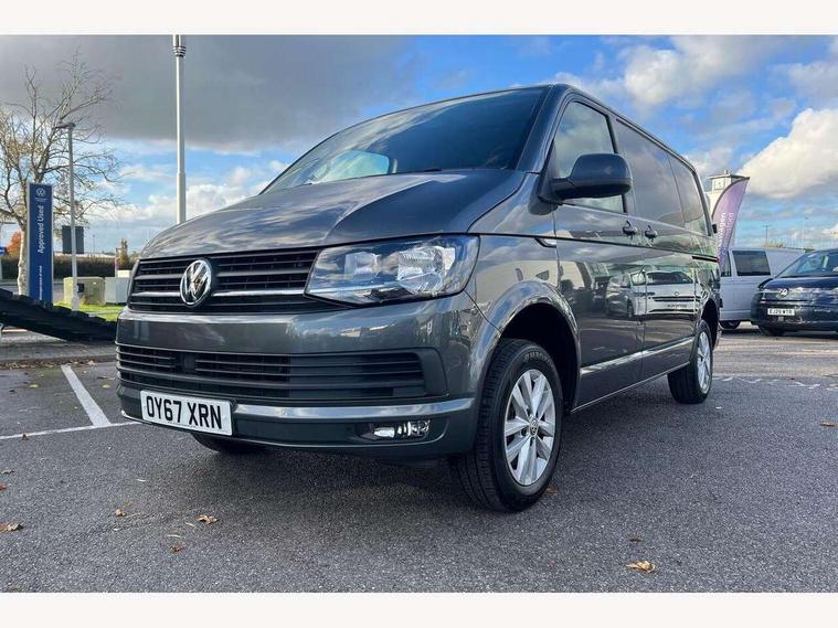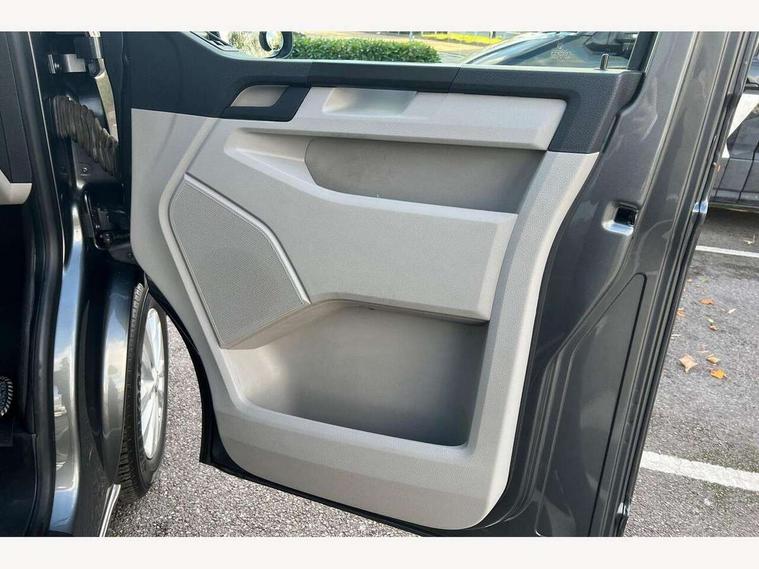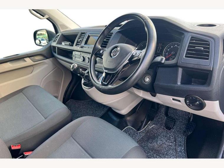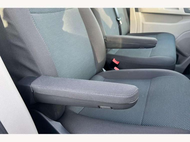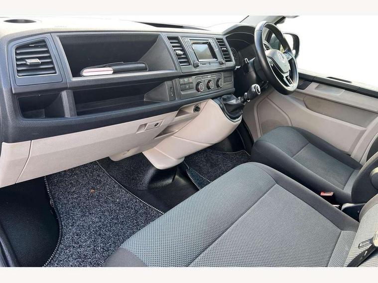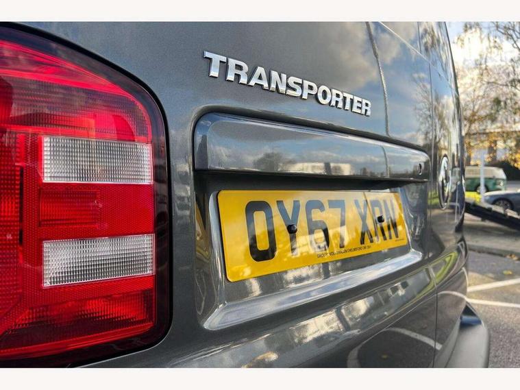 Bluetooth connectivity, Collision prevention assist, Digital clock, Driver alert with Multi-function display plus, Gearshift indicator, Headlight range control, Lights on warning buzzer, Multi-function Display Plus, Rear door interior release lever, Rev counter, SD card slot, Service indicator, 4 speakers, DAB radio/CD player, 180 degree opening rear doors, 2 speed windscreen wipers/intermittent wash, 8 securing points for roof load rack system, Auto dimming rear view mirror, Automatic coming/leaving home lighting function, Electric front windows, Front and rear towing rings, Front fog lights with cornering function, Heat insulating glass, Heat reflective glass, Heated front windscreen, Laminated windscreen, 1 coat hook, 1 hook on lower dash on front passenger side, 2 rear interior lights, switchable by door, 2 storage trays in dashboard, 2 sun visors folding and pivoted, Additional 12v accessory socket, Cab interior light, Drinks holder, Dust/pollen filter, Front door pockets with bottle holder, Height adjustable head restraints, Height and rake adjustable steering column, Interior entry steps, Interior roof trim - hardboard, Interior roof trim as headliner, Locking glovebox, Multifunction leather steering wheel, gearknob and gaiter, Open storage compartment in dash panel including mobile phone holder, Passenger seat with reach and rake adjustment, Sheet steel flooring, Side roof frame trim, Storage box integrated in roof headliner, Storage compartments in doors, Storage compartments in outer side of driver & passenger seats, Storage net on lower dash passenger side, Cab comfort pack - Transporter Van, Electric pack A - Transporter, Exterior pack - Transporter, 3 point inertia reel belt on all seats, Brake pad wear indicator, Front passenger airbag deactivation, Height adjustable seatbelts with tensioners, Anti-theft alarm with rear control in cab, backup horn and towing protection, Locking wheel bolts, 70 litre fuel tank, ABS with electronic brake distribution, ASR traction control, Diesel particulate filter, EDL, Electronic differential lock, Engine braking control (MSR), ESP, Hill start assist, Traction control, Platinum grey trim,