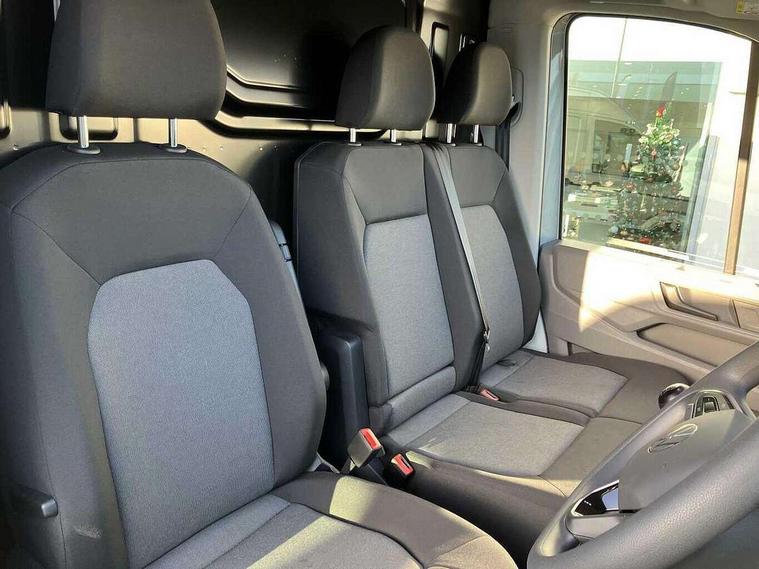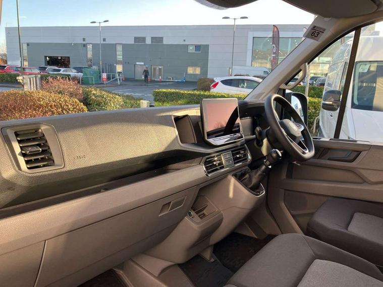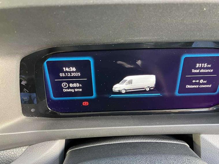 Bluetooth, Digital clock, Driver alert system, E-call + We connect basic preparation, Instrument cluster, Lights on warning buzzer, Locking fuel cap, Multi-function Display Plus, Rev counter, Service indicator, Speedometer, Voice control system, Composition media with 6.5" with we connect plus prep, 4 speaker, multifun display plus, USB, mob interface, app con, "We connect function", DAB Radio, Auto low beam mode, Leaving home function and manual coming home function, Cab doors, Convex and wide angle mirror, Driver seatbelt warning light, Electric windows, Electrically heated and adjustable door mirrors, Half painted front bumper, Heat insulating glass, Indicators in front door mirrors, One towing eye in front, Rear wing doors with 270 degree hinges, Special identification plate, Unpainted radiator grille, Air recirculation system, Ashtray, Centre console storage tray, CFCU preparation, Charcoal filter, Climatic air conditioning, Document holder on centre console, Drinks holders, Electromechanical Servotronic steering, Electronically controlled heating system, Fully adjustable suspension type driver seat, Grab handles on rear entry pillars, Height adjustable head restraints, Height and reach adjustable steering wheel, Illuminated glove compartment with lockable lid, Interior light, including 2 reading lights, Interior light, switchable by door, Jack and tool kit, Preparation for interface for external use with terminal block, Storage compartments in doors and in step, right, Storage tray on dashboard, Two 12V outlets in the cab (in the dashboard), Without rear side trim panel passenger load compartment, Non-smokers pack - Crafter, 3 point inertia reel belt on all seats, Automatic hazard light with emergency braking, Crosswind assist, Driver and front passenger airbag with front passenger airbag deactivation, Height adjustable seatbelts for outer cab seats, 1 rigid key, Anti-theft alarm with interior monitor, back up horn and tow away protect, overhead storage with two 1-DIN, reading light, SAFELOCK with 2 remote keys, Engine immobiliser, ABS, Automatic post collision braking system, EBA, EBD, EDL, ESP, Front disc brakes, HBA, Hill start assist, Parking brake - hill hold control, Start and stop system with regenerative braking, TCS, Hub cap covers,