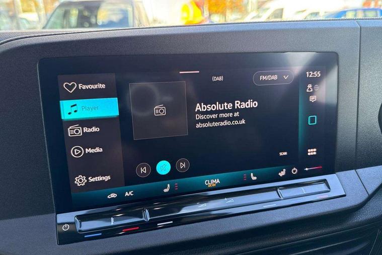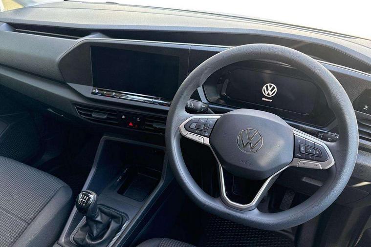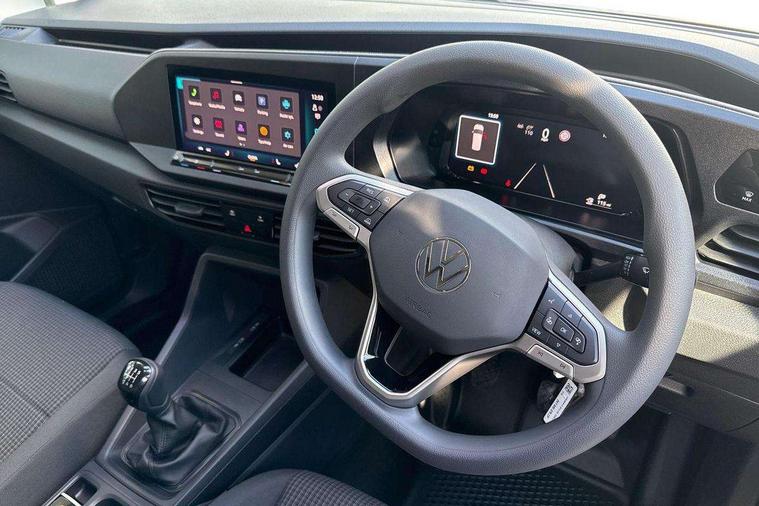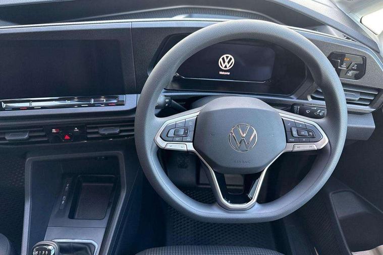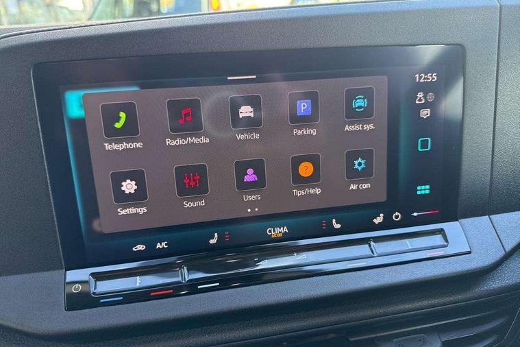 Bluetooth - Mobile phone interface, Car2X technology, Driver alert system, eCall emergency system, Intelligent Speed Assist, Lane assist, Seatbelt warning indicator, Service indicator, Start-stop system with regenerative braking, 2 USB interfaces type C in dashboard, DAB Radio, We Connect Basic Preparation, Automatic hazard light activation under emergency braking, Black front and rear bumpers, Electric front windows, Heat insulating windscreen, Roof rail preparation, Windscreen wiper with variable intermittent delay and wash-wipe system, Dimming breakaway interior rear view mirror, Electronically controlled heating system, Interior light in headliner incorporting LED technology, Lockable glove compartment door with light, Manual heating and ventilation system, Manual height adjustment for front seats, Reach and rake adjustable steering column, Six lashing points for securing loads, 3-point seat belts in front, with pretensioner and height adjustment, Driver and front passenger airbag with front passenger airbag deactivation, Tyre pressure monitoring system, Anti-theft alarm system, interior monitoring, backup horn, and towing protection, Electronic engine immobiliser, Remote central locking with deadlocks, interior locking, Anti locking braking system (ABS), Automatic post collision braking system, Autonomous Emergency Braking Front Assist with Pedestrian Monitoring, Brake assist, Diesel particulate filter, Electric parking brake with auto hold function, Electronic brake force distribution (EBD), Electronic differential lock (EDL), Electronic stabilisation programme (ESP), Engine drag torque control (MSR), Hill hold assist, Traction control system (TCS), Decorative beige birch vein inserts, Full size wheel trims,