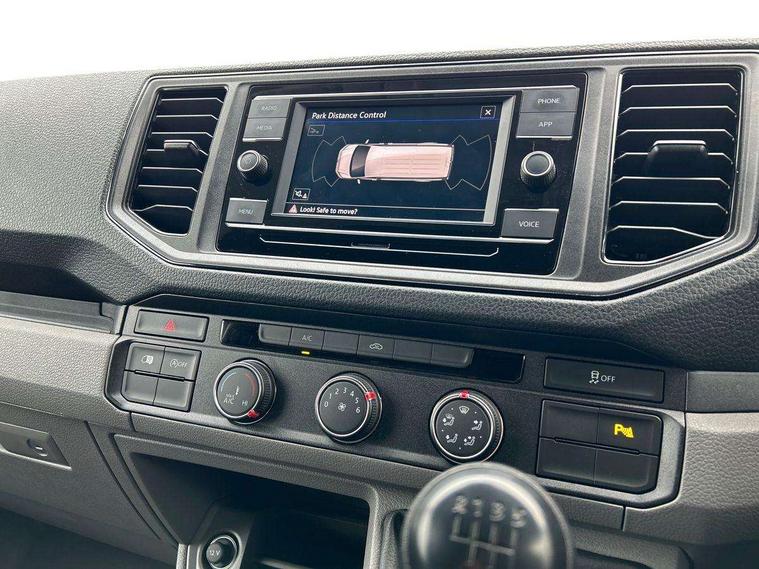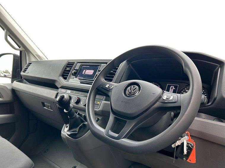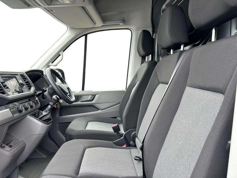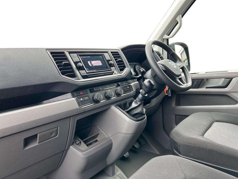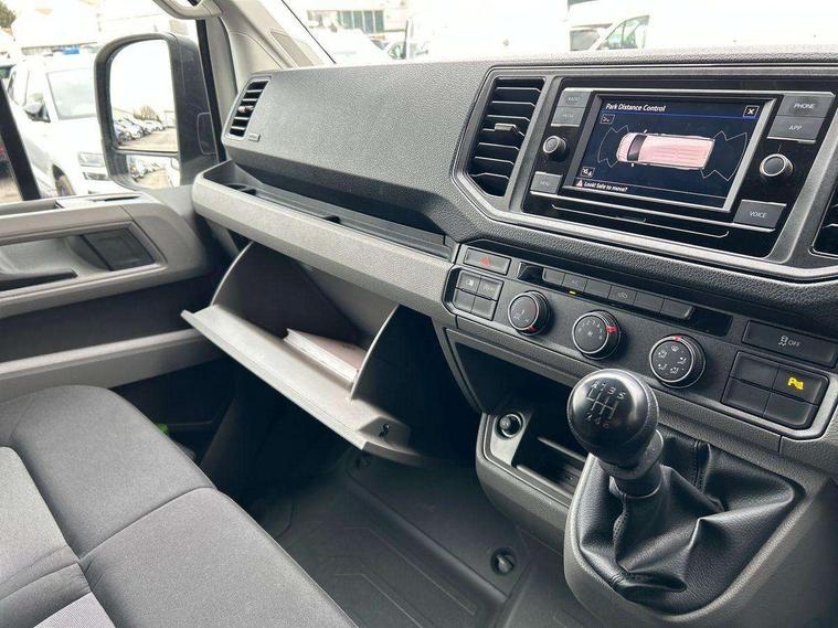 Advanced driver attention and drowsiness monitor, Blind spot monitor, Bluetooth, Digital clock, Digital cockpit with active Info display, Dynamic road sign display, E-call + We connect basic preparation, Forward collision warning with warning and braking reaction to vehicles, pedestrians and cyclists, Front assist including city emergency braking, Instrument cluster, Lane keeping assist, Lights on warning buzzer, Locking fuel cap, Rev counter, Roof console for interior lighting control, Service indicator, Speedometer, USB socket at top of windscreen, Wireless charging, 2 USB C ports in dashboard, DAB Radio, Auto low beam mode, Leaving home function and manual coming home function, Black unpainted plastic front bumper, Cab doors, Convex and wide angle mirror, Driver seatbelt warning light, Electric windows, Heat insulating glass, Indicators in front door mirrors, One towing eye in front, Rear badges, Special identification plate, Touch panel control for exterior lights, Unpainted radiator grille, Windscreen wiper auto control with light and rain sensor, Air recirculation system, Ashtray, Centre console storage tray, CFCU preparation, Charcoal filter, Document holder on centre console, Drinks holders, Electromechanical Servotronic steering, Electronically controlled heating system, Fully adjustable suspension type driver seat, Height adjustable head restraints, Height and reach adjustable steering wheel, Illuminated glove compartment with lockable lid, Interior light, including 2 reading lights, Interior light, switchable by door, Jack and tool kit, Preparation for interface for external use with terminal block, Storage compartments in doors and in step, right, Storage tray on dashboard, Two 12V outlets in the cab (in the dashboard), Without rear side trim panel passenger load compartment, Non-smokers pack - Crafter, 3 point inertia reel belt on all seats, Automatic hazard light with emergency braking, Crosswind assist, Driver and front passenger airbag with front passenger airbag deactivation, Height adjustable seatbelts for outer cab seats, 1 rigid key, Central locking system with Keyless Go without SAFELOCK entry - Keyless entry and start, Engine immobiliser, ABS, Automatic post collision braking system, EBA, EBD, EDL, Electronic parking brake - hill hold control, ESP, Front disc brakes, HBA, Hill start assist, Start and stop system with regenerative braking, TCS, Hub cap covers,