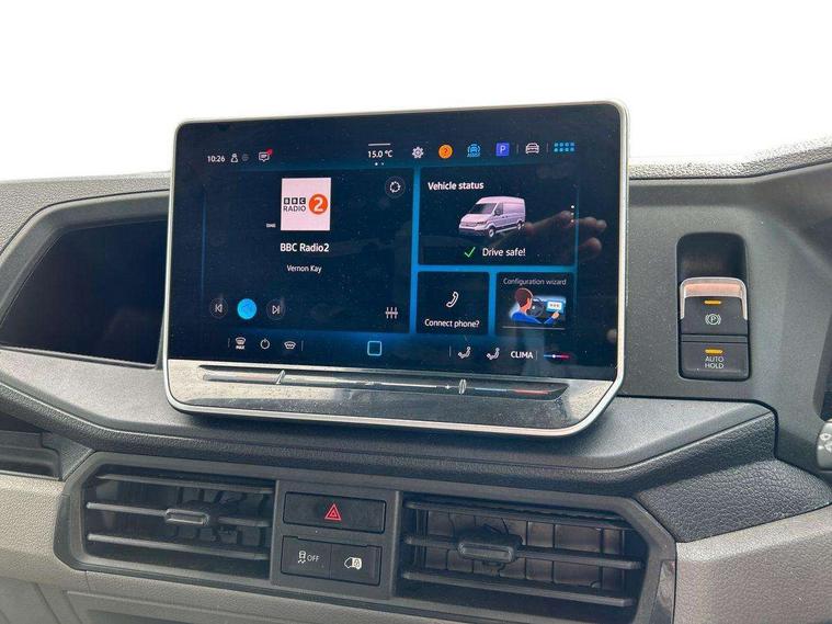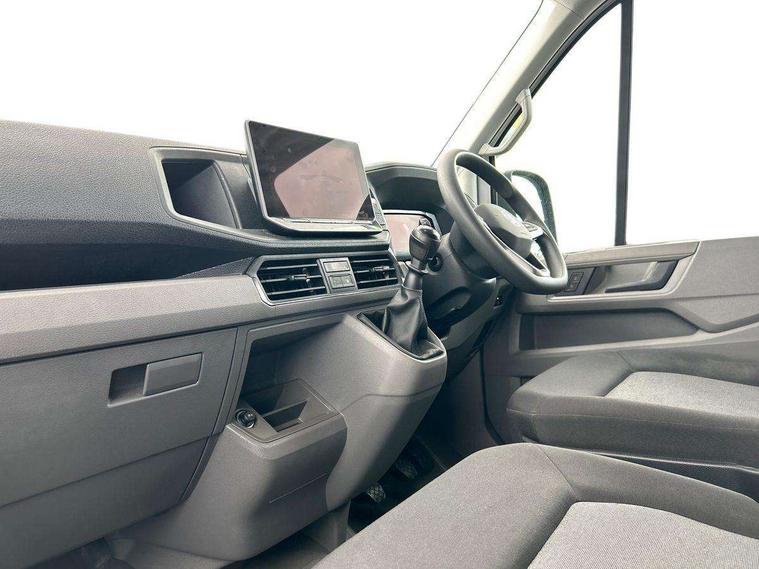 Bluetooth, Digital clock, Driver alert system, E-call + We connect basic preparation, Instrument cluster, Lights on warning buzzer, Locking fuel cap, Multi-function Display Plus, Rev counter, Service indicator, Speedometer, Voice control system, Composition media with 6.5" with we connect plus prep, 4 speaker, multifun display plus, USB, mob interface, app con, "We connect function", DAB Radio, Auto low beam mode, Leaving home function and manual coming home function, Cab doors, Convex and wide angle mirror, Driver seatbelt warning light, Electric windows, Electrically heated and adjustable door mirrors, Half painted front bumper, Heat insulating glass, Indicators in front door mirrors, One towing eye in front, Rear wing doors with 270 degree hinges, Special identification plate, Unpainted radiator grille, Air recirculation system, Ashtray, Centre console storage tray, CFCU preparation, Charcoal filter, Climatic air conditioning, Document holder on centre console, Drinks holders, Electromechanical Servotronic steering, Electronically controlled heating system, Fully adjustable suspension type driver seat, Grab handles on rear entry pillars, Height adjustable head restraints, Height and reach adjustable steering wheel, Illuminated glove compartment with lockable lid, Interior light, including 2 reading lights, Interior light, switchable by door, Jack and tool kit, Preparation for interface for external use with terminal block, Storage compartments in doors and in step, right, Storage tray on dashboard, Two 12V outlets in the cab (in the dashboard), Without rear side trim panel passenger load compartment, Non-smokers pack - Crafter, 3 point inertia reel belt on all seats, Automatic hazard light with emergency braking, Crosswind assist, Driver and front passenger airbag with front passenger airbag deactivation, Height adjustable seatbelts for outer cab seats, 1 rigid key, Anti-theft alarm with interior monitor, back up horn and tow away protect, overhead storage with two 1-DIN, reading light, SAFELOCK with 2 remote keys, Engine immobiliser, ABS, Automatic post collision braking system, EBA, EBD, EDL, ESP, Front disc brakes, HBA, Hill start assist, Parking brake - hill hold control, Start and stop system with regenerative braking, TCS, Hub cap covers,