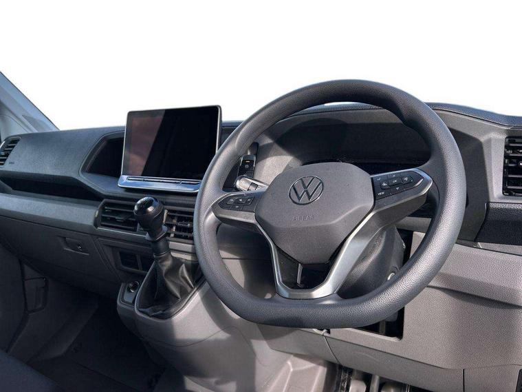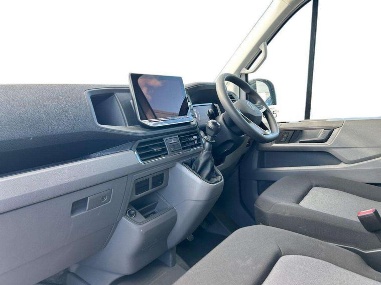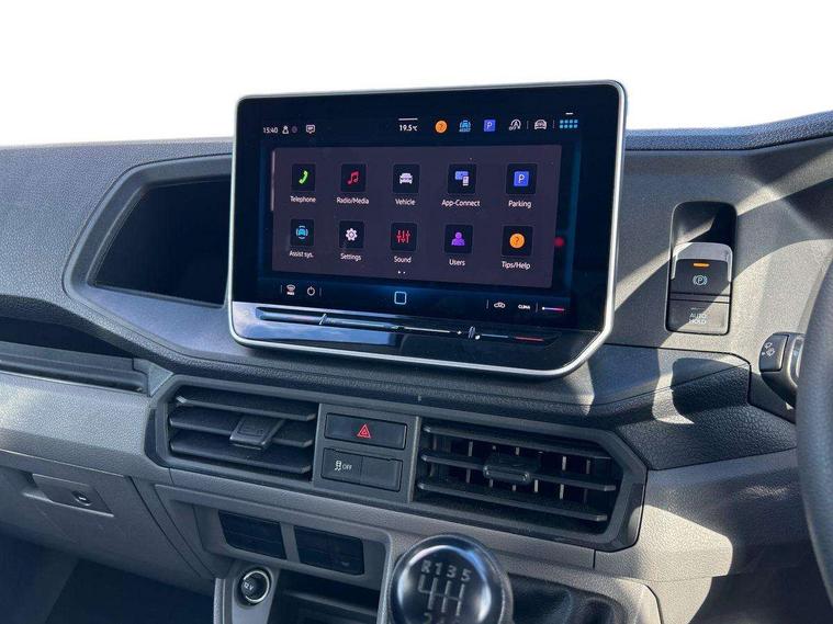 Bluetooth connectivity, Digital clock, Dimmable instrument illumination, Driver alert system, Front assist including city emergency braking, Headlight range control, Instrument cluster, Lights on warning buzzer, Lockable fuel cap, Rev counter, Service indicator, Start-stop system with regenerative braking, Composition colour with 6.5" touch-screen, We Connect+ preparation, USB interface, 4 speakers, mobile phone interface, App-Connect, DAB digital radio, 2 cab doors, Cab rear panel without lining, Electric windows, Halogen twin headlights, Heat insulating windscreen, Integral step in front bumper, Light weight sides and bulkhead with no visible fixings, Low roof, Radiator grille, Rear footstep, Right and left convex and wide angle exterior mirror, Roof lights on cab, Standard bumper, Tinted laminated windscreen with top shade band, Unique Ingimex four-tier load restraint system for deck, 2 sun visors folding and pivoted, Air recirculation system, Centre console storage tray, Dashboard, Document holder on centre console, Drinks holders, Electromechanical Servotronic steering, Electronically controlled heating system, Full height grab handle with integrated 360 degree rotating spot lamp, Full steel bulkhead without window, Fully adjustable suspension type driver seat, Grab handle on B pillar, Grab handles on roof frame, Height adjustable head restraints, Height and reach adjustable steering wheel, Illuminated glove compartment with lockable lid, Interior roof trim, Preparation for interface for external use with terminal block, Rubber floor covering, Storage compartments in doors and in step, right, Storage tray on dashboard, Non smoker pack, 3 point seat belts in front, Automatic hazard light with emergency braking, Central locking with radio remote control, interior controls without SAFELOCK, Driver and front passenger airbag with front passenger airbag deactivation, Height adjustable seatbelts for outer cab seats, Seat belt reminder with electric contact in buckle, 2 remote control folding keys, Engine immobiliser, ABS, Automatic post collision braking system, EBA, EBD, EDL, ESP, Front disc brakes, HBA, Heavy duty front axle, Hill start assist, Parking brake - hill hold control, TCS, Hub cap, Low rolling resistance tyres,