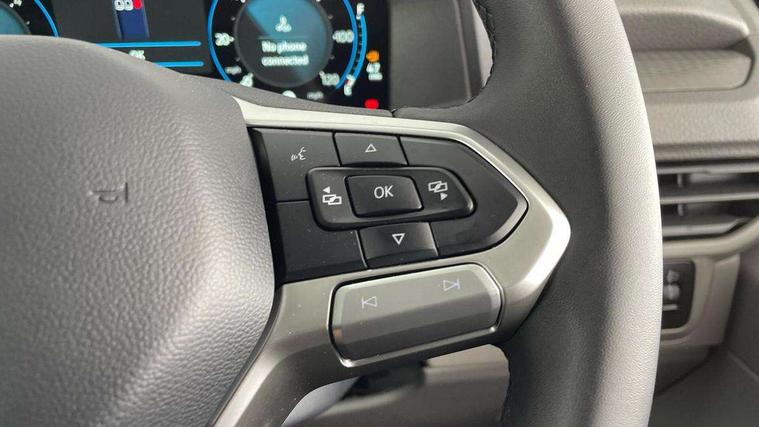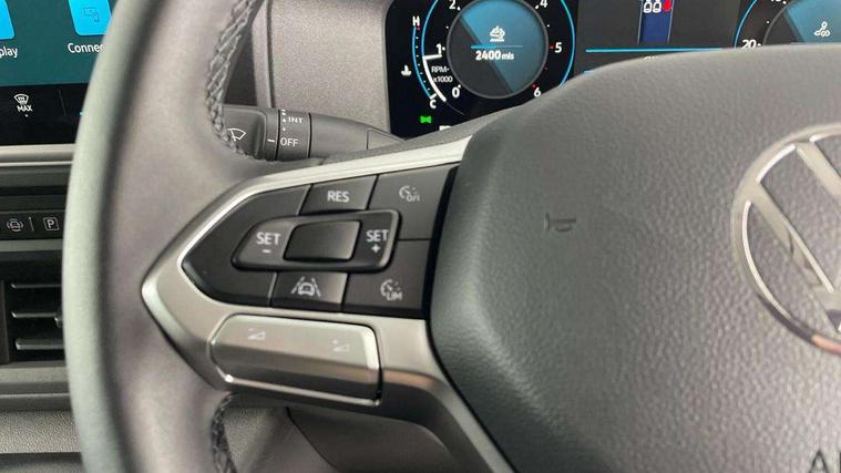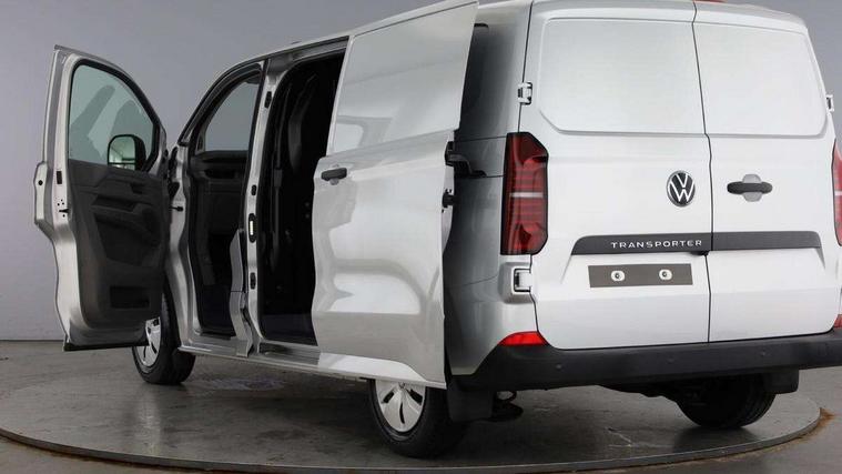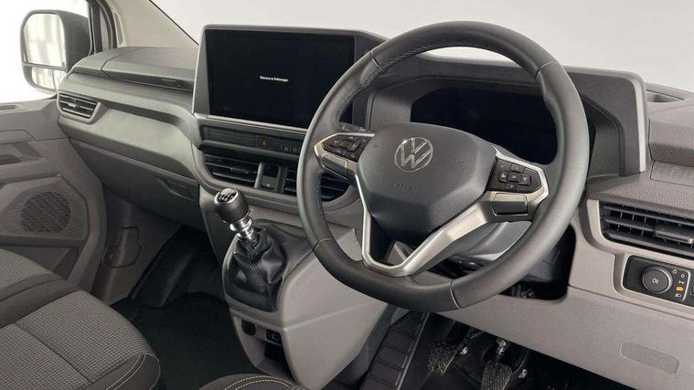 12" digital drivers display, 13" touchscreen infotainment display with wireless app connect and DAB radio, 5G Modem, Apple CarPlay and Android Auto, Cruise control, Dynamic road sign display, eCall emergency system, Electromechanical speed sensitive power steering, height and longitudinally adjustable steering column, Lane assist, Preparation of VW connect and connect plus, Wrong way driver warning, 4 speakers - 2x dashboard, 2x cab doors, Body coloured door handles, Heat reflecting side window glass, Mud flaps front and rear, Rear Transporter nameplate in black grained decorative trim, Vehicle opening configuration 1x 1st row of seats, 2x all doors, 2x 15-W USB data/charging ports in dashboard and 1x USB-C, 1x USB-A center bottom, 2x LED lights in load compartment, 3 spoke leather wrapped multi function steering wheel, 4 way height and tilt adjustable head restraints, Black plastic scuff plate for sliding door in cargo without illumination, Cabin interior lighting, Lashing rings for reinforced floor covering, Leatherette gear lever, Narrow centre console with cup holder and compartment for mobile phone, Overhead storage compartment, Roof grab handle on front passenger side, Rubber floor covering in cab, Striped fabric upholstery, Without passenger seats in load compartment, Driver and front passenger airbag with front passenger airbag deactivation, Dual tone horn, Front and curtain airbags for driver and front passenger, Seat belt pretensioner for driver seat, Anti theft alarm system with interior monitoring in cab, backup horn and towing protection, Electronic immobiliser, Preparation for alcohol ignition interlock, 5+ Promise, Alternator - 230A, Electronic stability control, ABS, ASR with deactivation button, hill start assist and brake assist system,
