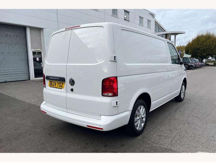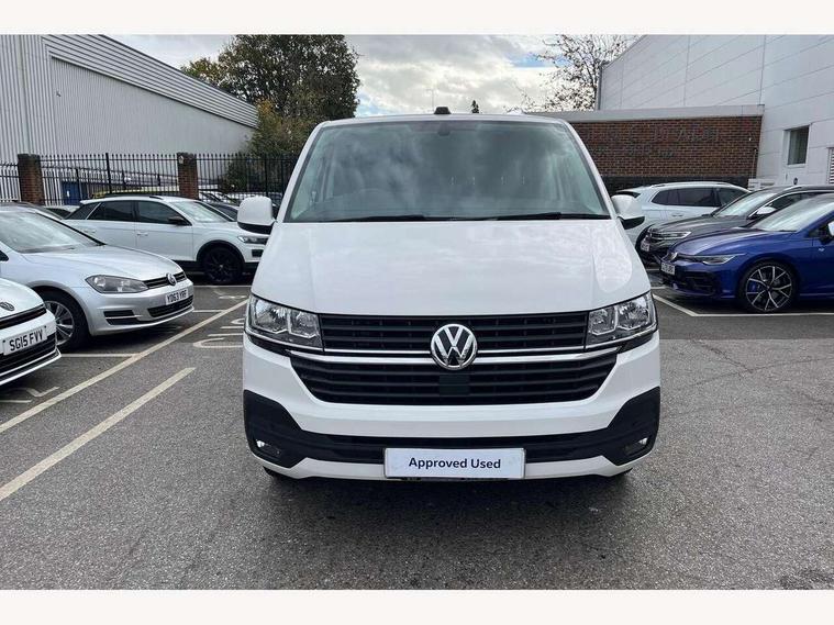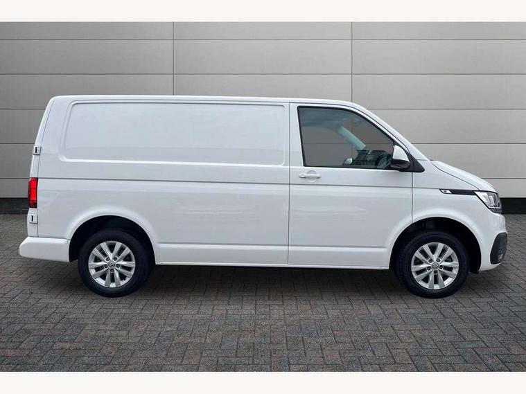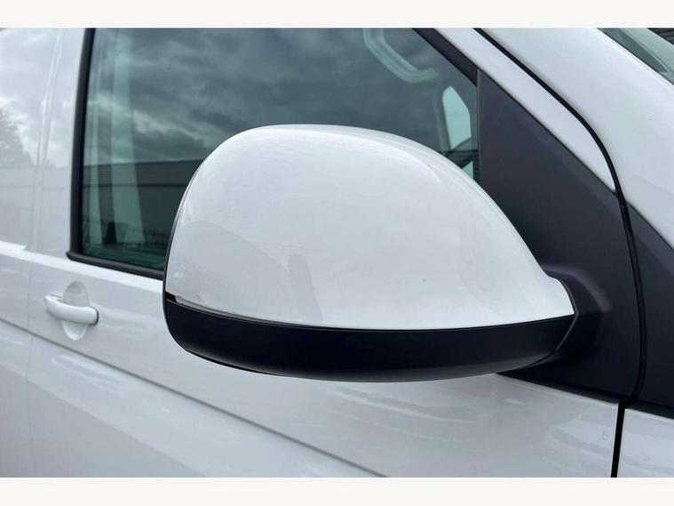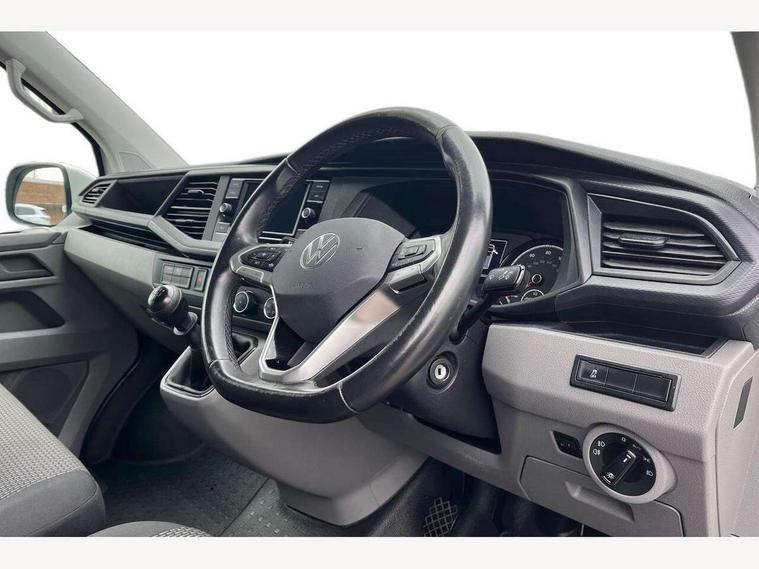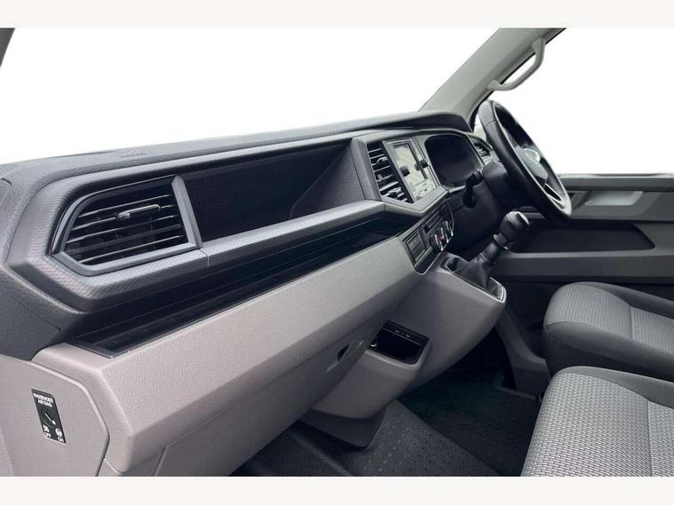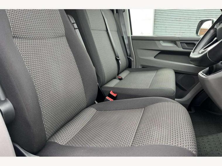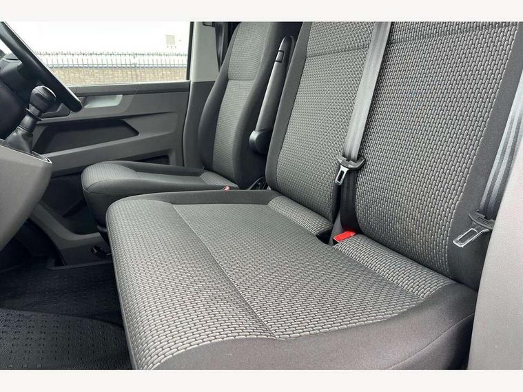 Adaptive cruise control, Cross wind assist, Dimmable illuminated instruments, Driver alert with Multi-function display plus, eCall emergency system, Forward collision warning front assist with autonomous emergency braking, Mobile phone interface, Multi function display plus with black and white display, 2 USB interfaces type C in dashboard, 4 speakers with 2 tweeters and 2 woofers, Composition colour radio with 6.5" touchscreen, Digital radio reception (DAB+), Volkswagen app connect, Closing rear wing door with unlatching from the inside, Front fog lamps with cornering light, Heat insulating glass (green) in cab and passenger/load compartment, Heated front windscreen, Left convex exterior mirror, Power folding adjustable door mirrors with separately heated, Radiator grille with 2 chrome trims, Rear wing doors without window apertures, Right convex exterior mirror, Transporter nameplate on the rear fender, 3 spoke leather wrapped multi function steering wheel, Comfort headliner in cab, hardboard roof trim in passenger and load compartment, Dust/pollen filter, Front and rear left without window closed side panel in load compartment, Front seats on the right in 1st row of seat, Heavy duty tool kit and jack, High partition, Interior plastic loading edge protection, LED Interior lighting in load and passenger compartment, Refrigerant R134a, Standard lower part dashboard in palladium, Storage compartments on cab seats and reading light, Without right side window apertures in passenger and load compartment, Comfort pack - Transporter, Exterior pack without fog light- Transporter, Light and vision pack - Transporter, Non smoker pack - Transporter, 3 point height adjustable seat belts on outer seats cab with electric pretensioners, Driver and front passenger airbag with front passenger airbag deactivation, Warning buzzer and light for driver and front passenger seat belt not fastened, Without child safety lock in passenger compartment, Anti theft alarm system with interior monitoring in cab, backup horn and towing protection, Lockable wheel bolts, 16" chassis with 16" brake system, Diesel particulate filter, Electronic stability control, ABS, ASR with deactivation button, hill start assist and brake assist system, Start/stop system with regenerative breaking, 16" Clayton alloy wheels,