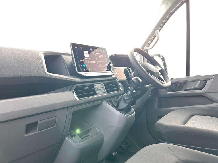 Bluetooth, Digital clock, Driver alert system, E-call + We connect basic preparation, Instrument cluster, Lights on warning buzzer, Locking fuel cap, Multi-function Display Plus, Rev counter, Service indicator, Speedometer, Voice control system, Composition media with 6.5" with we connect plus prep, 4 speaker, multifun display plus, USB, mob interface, app con, "We connect function", DAB Radio, Auto low beam mode, Leaving home function and manual coming home function, Cab doors, Convex and wide angle mirror, Driver seatbelt warning light, Electric windows, Electrically heated and adjustable door mirrors, Half painted front bumper, Heat insulating glass, Indicators in front door mirrors, One towing eye in front, Rear wing doors with 270 degree hinges, Special identification plate, Unpainted radiator grille, Air recirculation system, Ashtray, Centre console storage tray, CFCU preparation, Charcoal filter, Climatic air conditioning, Document holder on centre console, Drinks holders, Electromechanical Servotronic steering, Electronically controlled heating system, Fully adjustable suspension type driver seat, Grab handles on rear entry pillars, Height adjustable head restraints, Height and reach adjustable steering wheel, Illuminated glove compartment with lockable lid, Interior light, including 2 reading lights, Interior light, switchable by door, Jack and tool kit, Preparation for interface for external use with terminal block, Storage compartments in doors and in step, right, Storage tray on dashboard, Two 12V outlets in the cab (in the dashboard), Without rear side trim panel passenger load compartment, Non-smokers pack - Crafter, 3 point inertia reel belt on all seats, Automatic hazard light with emergency braking, Crosswind assist, Driver and front passenger airbag with front passenger airbag deactivation, Height adjustable seatbelts for outer cab seats, 1 rigid key, Anti-theft alarm with interior monitor, back up horn and tow away protect, overhead storage with two 1-DIN, reading light, SAFELOCK with 2 remote keys, Engine immobiliser, ABS, Automatic post collision braking system, EBA, EBD, EDL, ESP, Front disc brakes, HBA, Hill start assist, Parking brake - hill hold control, Start and stop system with regenerative braking, TCS, Hub cap covers,