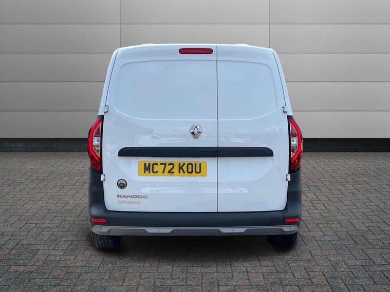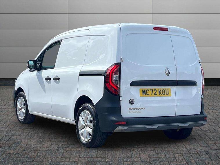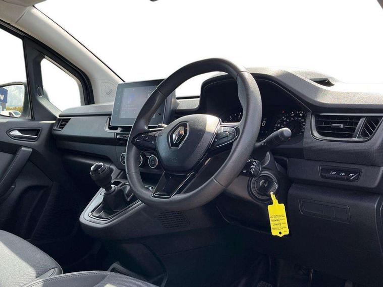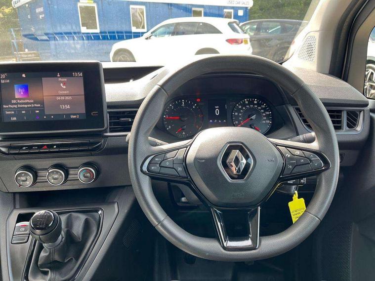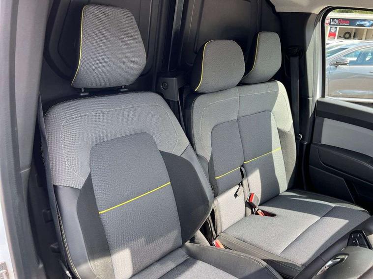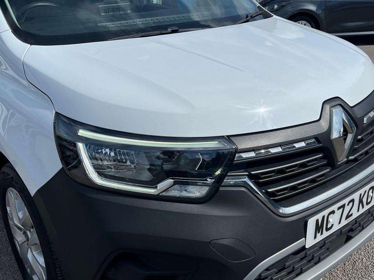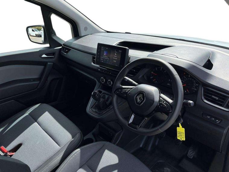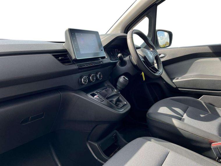 E-call, Power assisted steering, Automatic headlights and rain sensitive front wipers, Body coloured door rail, Driver side one touch descending electric front windows, Electrically adjustable + heated door mirrors, Full halogen headlights and daytime running lights, Roof bar fixings, Wide view mirror, 10 anchorage points in load area, 12V power socket in front, 2 additional anchorage points in load area, Closed glovebox, Height adjustable drivers seat, Kangoo cloth upholstery, Load area LED lighting, Premium gear stick with chrome inserts, Driver and passenger seatbelt reminder, Driver's airbag, 3 button folding key with selective opening and superlocking feature, Alarm - Thatcham T1 volumetric alarm, Deadlocking, Diesel particulate filter, Electric parking brake, ESC + Hill start assist, Increased payload, 16" Flex wheels,