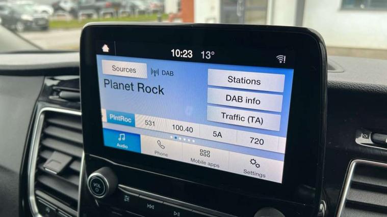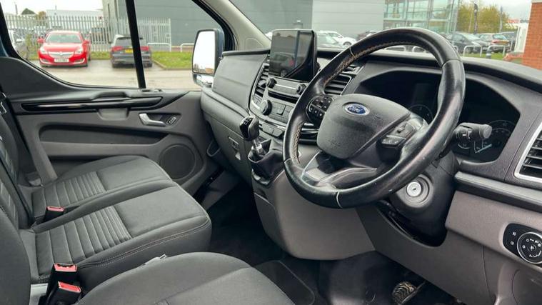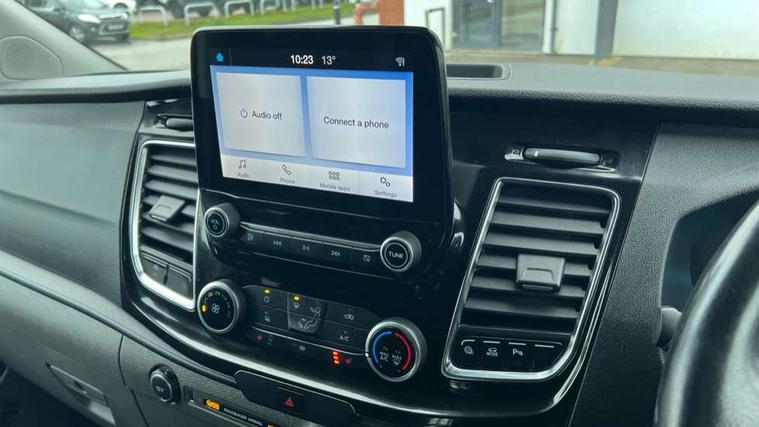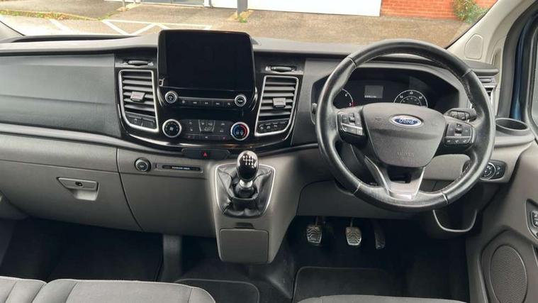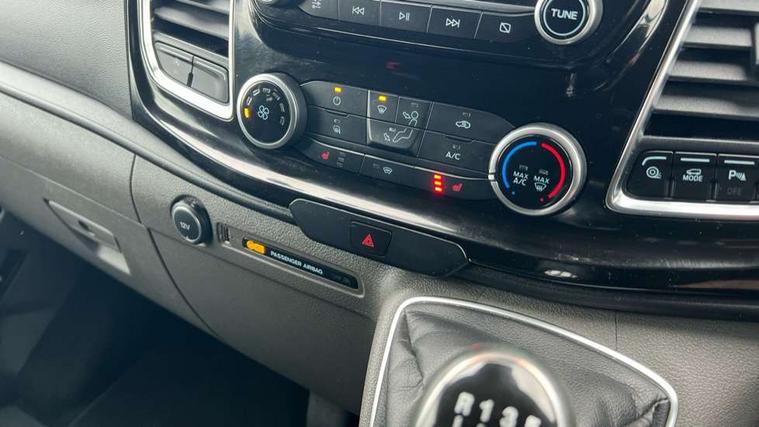 Adjustable steering column, Easy fuel capless refuelling system, Ford Eco mode, PAS, Seatbelt warning indicator, Selectable drive mode, Vehicle maintenance monitor, Audio controls mounted on steering wheel, Aux input socket, 'Guide me home' headlights, Automatic lights and wipers, Body colour door and tailgate handles, Body coloured body side mouldings, Body coloured door mirrors, Body coloured front bumper, Body coloured rear bumpers, Electric front windows with one touch facility for driver and front passenger, Fixed glazed dual side load doors, Front mud flaps, Headlamp levelling, Intermittent front wash/wipe, Passenger side sliding load door with track cover, Quickclear heated windscreen, Rear mudflaps, 2nd row three seat wide bench, Assist handle, Cloth upholstery, Coat hook, Courtesy light, Driver and passenger sunvisors with illuminated vanity mirrors, Front manual air conditioning, Front passenger grab handle, Grab handle on B pillar, Half height load compartment trim boards, Header mounted package tray, Height adjustable head restraints, Illuminated footwell, Isofix child seat attachments - centre and offside 2nd row seats, Load box LED lights, Lockable glove box, Map reading lights, Moulded cab headlining, Passenger underseat storage box, Reach and rake adjustable steering column, Recirculation heater, Rubber floor covering, Tie-down loops, 3 point seatbelts for all seats, Driver's airbag, Front outer passenger airbag with deactivation switch, Front passenger airbag, Front seatbelt pretensioners, Height adjustable drivers seatbelt mount, Passenger seatbelt height adj, Auto locking on drive-away, Auto relocking, Configurable Unlocking, Power door dead locks, Remote central locking, Thatcham category 1 alarm with 2nd remote key, 2 12v sockets, 80 litre fuel tank, ABS, Alternator - 150A, Auto start/stop system, Diesel particulate filter, ESP + EBA, Power point plug 400W - Level 2, Roll stability control, Side wind mitigation, 16" 6.5 alloy wheels,
