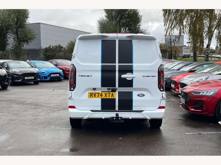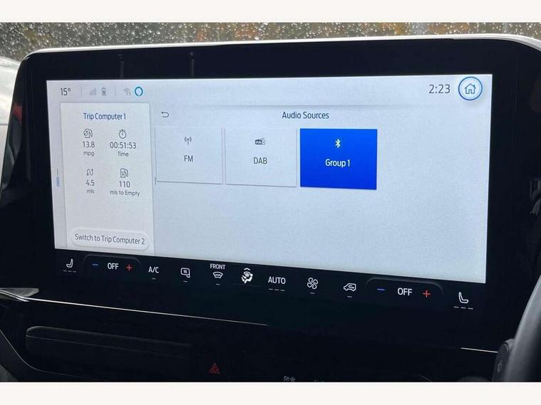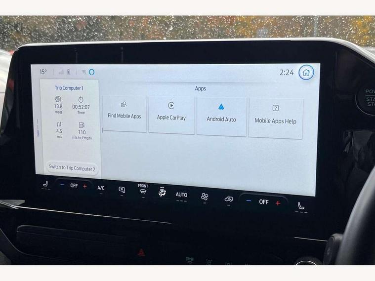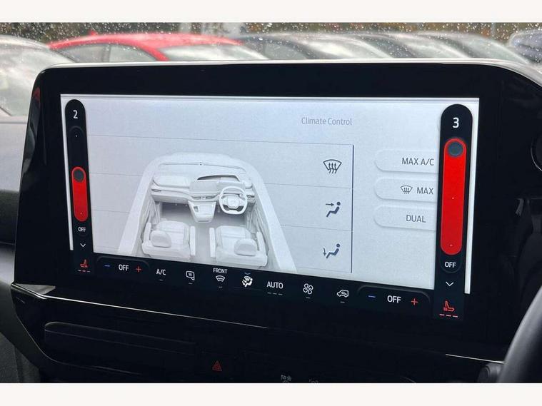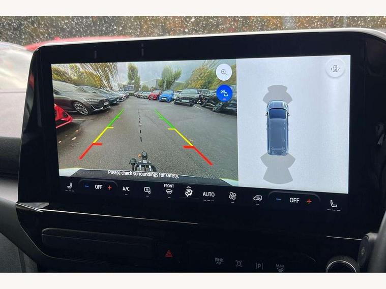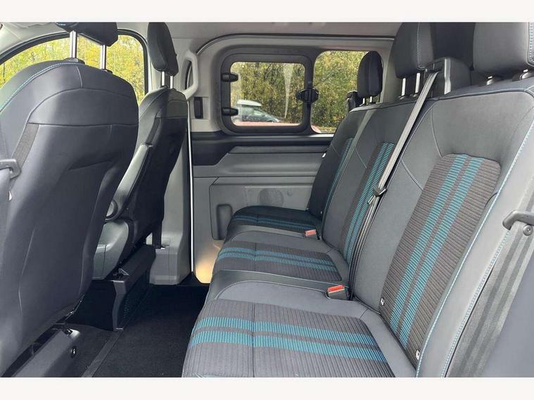 13" Touchscreen, 5G embedded modem, AECS NO SMS/Roll Detect 2G, Close Assist, PAS, Rear USB charge port, Tyre pressure monitor, SYNC 4 - Android Auto/Apple Car Play, advance speech recognition, over the air update capability, Automatic headlights, Body coloured door mirrors, Body coloured front bumper, Body coloured rear bumpers, Daytime running lights, Dual side load doors, Electric front windows with one touch facility for driver and front passenger, Fixed DSS LED headlamps with auto high headlamp, Flip open second row windows, Hood Accent Stripes, LED tail lamps, Low roof line, Molded load floor liner, Power cinch latch, Privacy glass, Quickclear front window defroster, Rear cargo hinged door, Rear spoiler, Trailer sway control, 3 Seat Rear seats with under seat stowage, 4 Load compartment tie down loops, Carpet floor in first row and rubber in second row, Courtesy light, DCiV Moulded polymer bulkhead, Dual zone automatic air conditioning, Half height polypro interior trim panels, Interior grab handle with driver's sunglasses holder, Large console, LED lights, Locking glove box lid, Rear reading light, Sensico gearshift knob, Super bright load compartment lights, Passenger airbag, 2 remote keys, Alcohol Interlock wiring preparation pack, Keyless entry and start, Locking wheel lug nut, Standard unlocking, Thatcham category 1 alarm, 20L AdBlue tank, ABS, Diesel particulate filter, ESP, Hill launch assist, Traction control, 16" Steel spare wheel, Full wheelcovers,