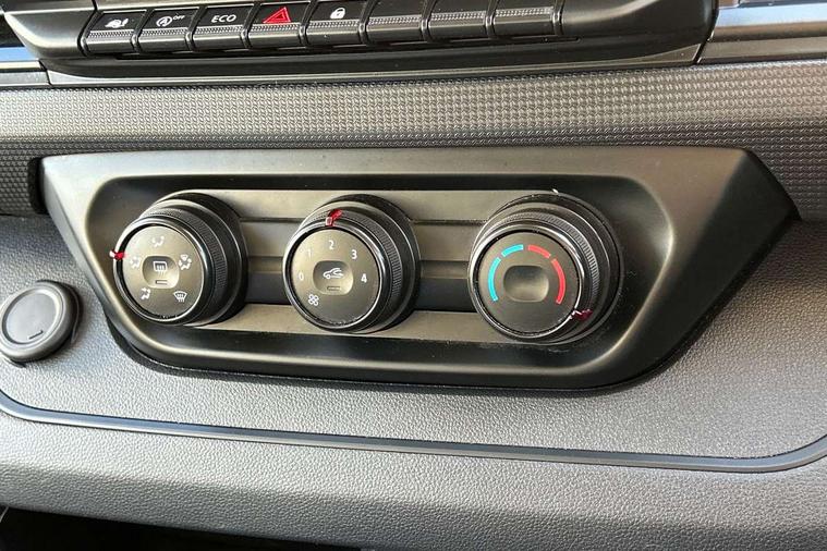 ECO mode button, Gearshift indicator, PAS, Trip computer, Black door mirrors, Black door rail, Black front bumper, Black rear tail column, Electric front windows with one touch drivers window, Full LED headlights with C-shaped DRL, Heated with electric adjustment door mirrors and external temperature sensors, Roof bar fixings, 12V power socket in front, 16 load anchorage points, Closed glovebox, Dashboard with geometric grain, Height adjustable drivers seat with armrest and lumbar adjustment, Interior cabin lighting, Kompo cloth upholstery, Passenger seat bench, Reach and rake adjustable steering column, 3 point height adjustable seatbelts with pretensioners and load limiter, Driver and passenger seatbelt reminder, Driver's airbag, Alarm - Thatcham T2 volumetric alarm, Deadlocking, Electronic immobiliser, Remote central locking, 12v socket in loadspace, 20L AdBlue tank, 4 disc brakes, 80 litre fuel tank, ABS with EBD (Electronic Brake force Distribution), ESC (Electronic Stability Control) with Hill Start Assist and Grip Xtend,