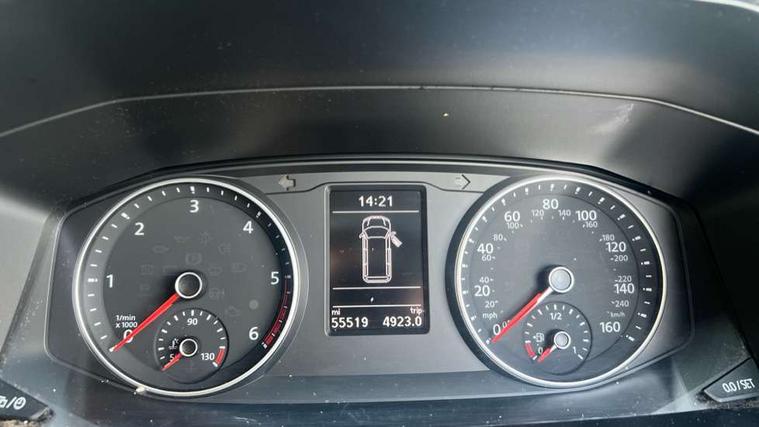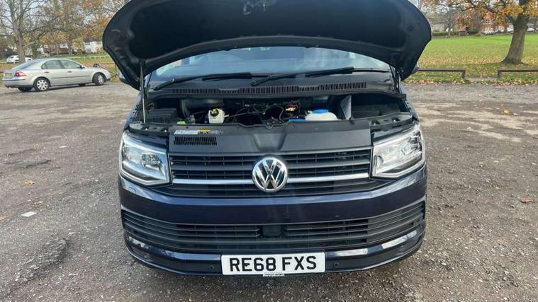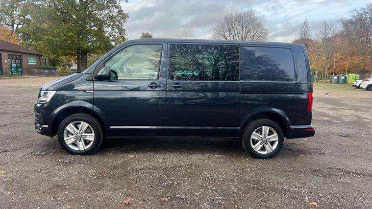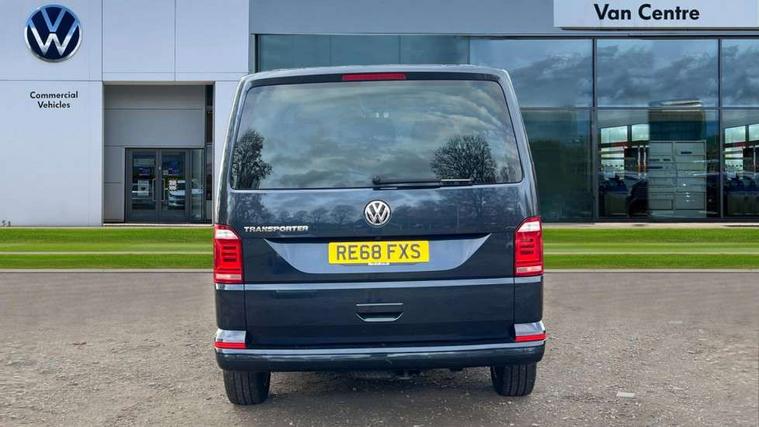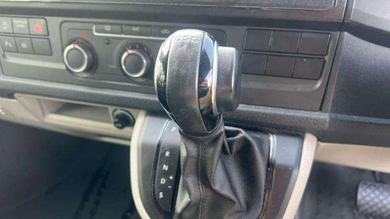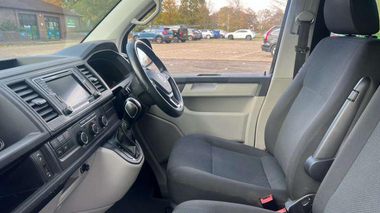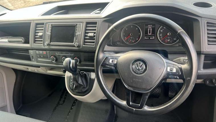 Bluetooth connectivity, Collision prevention assist, Digital clock, Driver alert with Multi-function display plus, Headlight range control, PAS, Rev counter, SD card slot, Seatbelt warning indicator, Service indicator, Trip computer, Tyre pressure monitor, 4 speakers, Aux input socket, DAB radio/CD player, iPod/USB connection, Auto dimming and breakaway interior rear view mirror, Automatic headlights, Body coloured bumpers, Body coloured door handles, Body coloured door mirrors, Chrome plated strip on air intake charge air cooler, Electric front windows, Front and rear towing rings, Front fog lights with cornering function, Heat reflective glass, Heated front windscreen, Heated rear window and wash wipe, No windows in rear side panels, Privacy glass rear + load compartment with green heat insulating glass, Sliding windows in side door and opposite, 2 rear interior lights, switchable by door, 2 storage trays in dashboard, 2 sun visors folding and pivoted, 3 seater rear bench, Additional 12v accessory socket, Cab interior light, Drinks holder, Drivers seat adjustable for reach and rake, Dust/pollen filter, Height adjustable head restraints, Height and rake adjustable steering column, Interior entry steps, Load lashing rings, Locking glovebox, Multifunction leather steering wheel, gearknob and gaiter, Open storage compartment in dash panel including mobile phone holder, Passenger armrest, Passenger seat with reach and rake adjustment, Rubber load floor cover with step light, Storage compartments in doors, Storage net on lower dash passenger side, Cab comfort pack - Transporter Kombi, Lights and vision pack - Transporter, Non smoker pack, 3 point inertia reel belt on all seats, Front passenger airbag deactivation, Height adjustable seatbelts for outer cab seats, Height adjustable seatbelts with tensioners, Internal central locking control, Anti-theft alarm with rear control in cab, backup horn and towing protection, Interior (cab only) and tow away protection, Locking wheel bolts, Remote central/dead locking + 2 keys, 70 litre fuel tank, ABS with electronic brake distribution, Diesel particulate filter, EDL, ESP, Parking brake - hill hold control, Traction control, 17" Devonport alloy wheels,