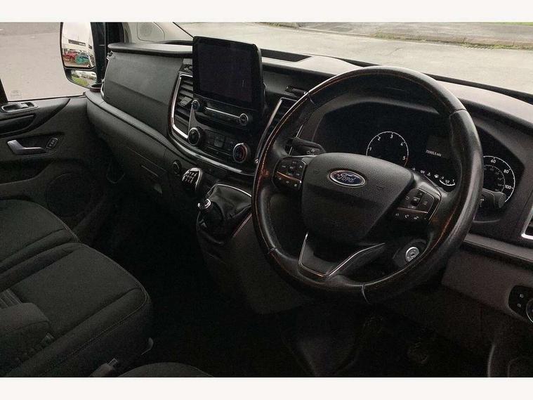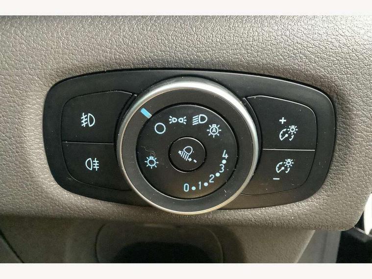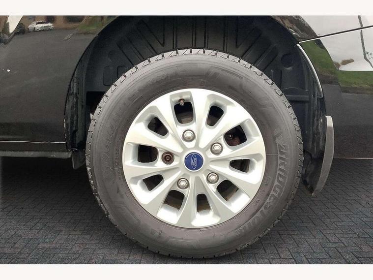 Adjustable steering column, Blind spot monitor, Easy fuel capless refuelling system, Ford Eco mode, Front and rear parking aid + front fog lamps, PAS, Seatbelt warning indicator, Trip computer, Audio controls mounted on steering wheel, Aux input socket, 'Guide me home' headlights, Automatic lights and wipers, Body colour door and tailgate handles, Body coloured body side mouldings, Body coloured door mirrors, Body coloured front bumper, Body coloured rear bumpers, Electric front windows with one touch facility for driver and front passenger, Fixed glazed dual side load doors, Front mud flaps, Headlamp levelling, Intermittent front wash/wipe, Power folding electric heated and adjustable door mirrors, Quickclear heated windscreen, Rear mudflaps, 2nd row three seat wide bench, Assist handle, Cloth upholstery, Coat hook, Courtesy light, Driver and passenger sunvisors with illuminated vanity mirrors, Drivers seat with lumbar adjustment, Front manual air conditioning, Front passenger grab handle, Grab handle on B pillar, Half height load compartment trim boards, Header mounted package tray, Heated front seats, Height adjustable head restraints, Illuminated footwell, Isofix child seat attachments - centre and offside 2nd row seats, Lockable glove box, Map reading lights, Moulded cab headlining, Reach and rake adjustable steering column, Recirculation heater, Rubber floor covering, Tie-down loops, Underseat storage compartment, 3 point seatbelts for all seats, Driver's airbag, Front outer passenger airbag with deactivation switch, Front passenger airbag, Front seatbelt pretensioners, Height adjustable drivers seatbelt mount, Passenger seatbelt height adj, 2nd remote key, Auto locking on drive-away, Auto relocking, Configurable Unlocking, Power door dead locks, Remote central locking, Thatcham category 1 alarm, 2 12v sockets, 80 litre fuel tank, ABS, Diesel particulate filter, ESP + EBA, Power point plug 400W - Level 2, Roll stability control, Side wind mitigation, 16" 6.5 alloy wheels,