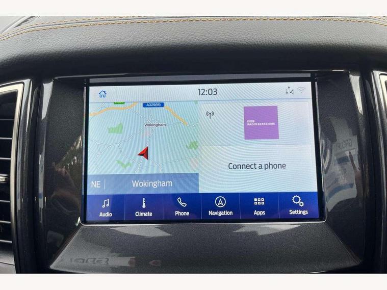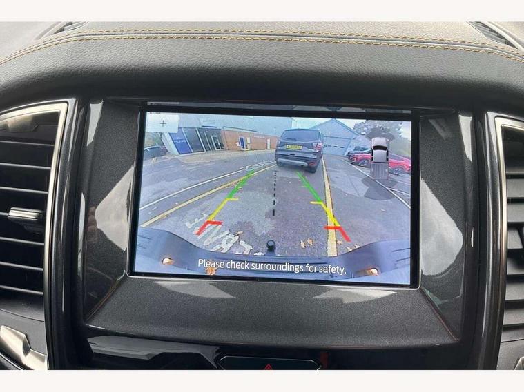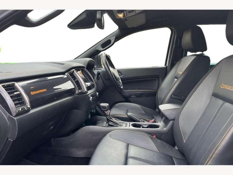 2 key fob, Collision mitigation braking system, Electric power assisted steering, Fixed rear view camera, Intelligent speed assistant, Lane keeping aid, Traffic sign recognition, Trip computer, Automatic headlights, Body coloured plastic front bumper, Boulder grey exterior door handle, Boulder grey exterior door mirror, Boulder grey radiator grille, Daytime running lights, Dual power heated fold back door mirror with puddle lamp and signal, Electrically operated windows with one shot driver's window, Electrochromic interior mirror, Front splash guard and mud flaps, Heated windshield and rear window, High mounted stop lamp with cargo area light, LED Front fog lamp, LED projector headlamps, Moulded in colour tailgate handle, Painted front fender grille, Privacy glass, Rain sensitive windshield wipers, Rear bumper chrome under-bar, Rear bumper step in boulder grey, Rear mudflaps, Roof rails, Side step with brushed inserts, Sports bar, Tailgate - Easy-lift/lower mechanism, Under hood engine cover, Underbody protection, Centre console coolbox, Chrome interior door handle, Driver seat back mounted map pocket, Dual control system - Electronic air temperature control (EATC), Ebony headliner, Heated front seat, Journey grain partial leather upholstery with Wildtrak logo, Leather gearknob, LED ambient interior lighting, Power adjustable 8 way driver seat, Premium front and rear floor mats with Wildtrak logo, Reach and rake adjustable steering column, Roof storage for driver sunglasses, Sport leather stitched steering wheel, Tie down rails and rope hooks, Wildtrak door trim panel insert, ICE feature pack 129 - Ranger, 3 point inertia rear seatbelts, Driver and front passenger airbag, side airbag, curtain airbag and driver knee airbag, ISOFIX child safety seat attachment, Seatbelt reminders for driver and front passenger, Tyre pressure sensors, Double locking power door lock with flip key, Immobiliser, Locking wheel nuts, Passive anti theft system, Passive keyless entry and start system, Power tailgate lock, Spare wheel lock, Thatcham category 1 alarm security system, ABS, ESP and roll over mitigation, Emergency brake assist, Engine start/stop system, Locking rear axle, Power converter,