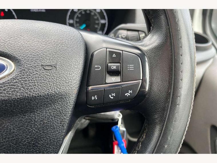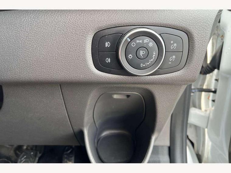 Adjustable steering column, Blind spot monitor, Easy fuel capless refuelling system, Ford Eco mode, Front and rear parking aid + front fog lamps, PAS, Trip computer, Audio controls mounted on steering wheel, Aux input socket, 'Guide me home' headlights, Automatic lights and wipers, Body coloured door mirrors, Body coloured front bumper, Electric front windows with one touch facility for driver and front passenger, Front mud flaps, Headlamp levelling, Intermittent front wash/wipe, Power folding electric heated and adjustable door mirrors, Quickclear heated windscreen, Rear mudflaps, 2 adjustable sunvisors, Cloth upholstery, Courtesy light, Drivers seat with lumbar adjustment, Easy clean load floor, Half height load compartment trim boards, Height adjustable front headrests, Illuminated footwell, Lockable glove box, Map reading lights, Moulded cab headlining, Reach and rake adjustable steering column, Recirculation heater, Roof console (front seats), Rubber floor covering, Tie-down loops, Underseat storage compartment, 3 point seatbelts for all seats, Driver's airbag, Front seatbelt pretensioners, Height adjustable drivers seatbelt mount, Passenger seatbelt height adj, 2nd remote key, Auto locking on drive-away, Auto relocking, Power door dead locks, Remote central locking, 2 12v sockets, 80 litre fuel tank, ABS, Diesel particulate filter, ESP + EBA, Power point plug 400W - Level 2, Roll stability control, Side wind mitigation, Full wheelcovers,