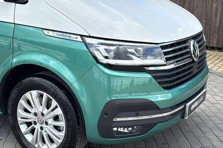 Adaptive cruise control including speed limiter and city emergency braking, Bluetooth handsfree set, Coolant temperature indicator, Cross wind assist, Digital clock, Digital cockpit and driver alert system, eCall emergency system, Electric tailgate without interior release, Mobile phone interface comfort with inductive charging feature, Navigation system preparation, Rear gate with window aperture and power opening and closing, Rest assist, Service interval indicator, Start/stop system with regenerative braking, Tailgate power latching without unlatching from the inside, Trip computer, Voice control system, Warning lights, Wired and wireless app connect, 16 inch chassis with 16 inch brake system, 2 (type C) USB interfaces in dashboard, 2 USB charging sockets in the left C pillar, 6 speakers - 2 tweeters, 2 woofers, 2 full range speakers, DAB digital radio reception, 8 feet standard roof with mounting points for roof rack system, Additional dust seals on the outside, Automatic headlight control system, Automatic headlight range control, B pillar in glossy black contrasting colour adhesive film, Black radiator grille with 5 chrome trims with additional chrome trim at lower radiator grille, Body colour bumpers, Body coloured exterior door handles, Break away auto dimming rear view interior mirror, Caravelle nameplate on the fender and on the rear, Chrome trims in front lower air intake on the sides and in rear tailgate, Electric front windows, Exterior mirrors - power adjustable, heated and power folding, folding possible via vehicle key, Fixed side window front and rear in load/passenger compartment left and right, Heated washer nozzles in front and washer fluid level indicator, LED headlights with LED daytime running lights, Left and right convex exterior mirror, Manual coming and leaving home function, Rear window with heat insulating glass, heated, rear window wiper and washer system, Windshield wiper intermittent control with rain sensor, Without trailer hitch, 2 velour floor mats, 3 Spoke leather multi function steering wheel, Air recirculation system, Air vent in driver's door, Allergen filter, Armrest for both cab seats, Comfort headliner in cab and headliner for recirculated air vents in passenger compartment, Comfort seat on the left and right, in 1st row of seats (not swiveling), Dashboard illuminated dimmable instruments, Electromechanical speed sensitive power steering, height and longitudinally adjustable steering column, Front cupholder, Front/rear reading lights, Glove compartment with illumination, Grab handles on A pillar for access, on driver and front passenger side, Height and tilt adjustable head restraints for all seats, Illuminated steps in passenger/load compartment, Interior lighting with LED technology in load/passenger compartment, Interior lighting with switch off delay and contact switches on all doors, Interior loading edge protection in stainless steel, ISOFIX and top tether child seat anchorage in 2nd to 4th rows, Jack and tool kit, Lashing rings for load restraint system for reinforced floor covering, Leather handbrake grip, Lockable glovebox, Luggage compartment cover, Lumbar support on the left and right single seat in the 1st row of seats(Both manually adjustable), Passenger compartment side trim panel with leather look mirror, Rail seat system in passenger compartment, Rear cupholders, Refrigerant R1234yf, Reinforced carpet floor covering in passenger compartment, Roller blinds for side windows, Seat height adjustment for left and right single seat in cab, Separately controllable seat heater in cab, left and right, Soft folding grab handles on roof frame, Special interior noise suppression measures, Special sound deadening measures in cab and passenger compartment, Stainless steel load sill protection, Step illumination with caravelle lettering, Storage compartment on outer side of front seats, Storage net on lower dash passenger side, Storage pockets in backrests of front seats, Sun visors with illuminated mirror and airbag label on front passenger sun visor, Sunshades for side windows in passenger compartment, Two 12V accessory power outlets, Variable intensity instrument illumination, Velour non woven floor covering in cab, Chrome pack - Caravelle, Non smokers pack - Caravelle, 3 point automatic seatbelts in rear, Brake pad warning light, Driver and front passenger airbag with front passenger airbag deactivation, Electronic brake force distribution, Electronic stability control, ABS, ASR with deactivation button, hill start assist, brake assist system, Front assist with autonomous emergency braking, Front side airbags with curtain airbags for driver and front passenger, Height adjustable 3 point seat belts on outer seats in cab with electric pretensioners, Power operated child safety locks, Single tone horn, Traction control, Warning buzzer and light for driver seat belt not fastened, Alarm deactivation switch of interior and tow away protection on B pillar, Anti theft alarm system with interior monitoring in cab, backup horn and towing protection, Central locking system with radio remote control, system controls inside and safelock, Deadlocks, Electronic immobiliser, Lockable fuel cap, Locking wheel bolts, Comfort dashboard titanium black lower part with black chrome elements and bezels, Pewter wave grey decorative inserts,