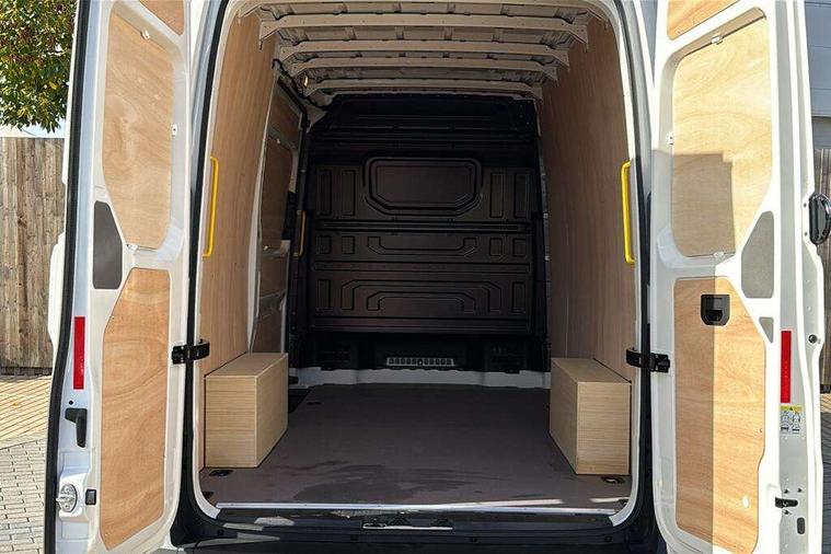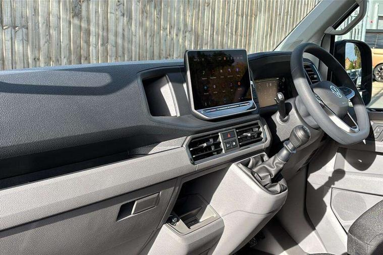 Bluetooth, Digital clock, Driver alert system, E-call + We connect basic preparation, Instrument cluster, Lights on warning buzzer, Locking fuel cap, Multi-function Display Plus, Rev counter, Service indicator, Speedometer, Voice control system, Composition media with 6.5" with we connect plus prep, 4 speaker, multifun display plus, USB, mob interface, app con, "We connect function", DAB Radio, Auto low beam mode, Leaving home function and manual coming home function, Cab doors, Convex and wide angle mirror, Driver seatbelt warning light, Electric windows, Electrically heated and adjustable door mirrors, Half painted front bumper, Heat insulating glass, Indicators in front door mirrors, One towing eye in front, Rear wing doors with 270 degree hinges, Special identification plate, Unpainted radiator grille, Air recirculation system, Ashtray, Centre console storage tray, CFCU preparation, Charcoal filter, Climatic air conditioning, Document holder on centre console, Drinks holders, Electromechanical Servotronic steering, Electronically controlled heating system, Fully adjustable suspension type driver seat, Grab handles on rear entry pillars, Height adjustable head restraints, Height and reach adjustable steering wheel, Illuminated glove compartment with lockable lid, Interior light, including 2 reading lights, Interior light, switchable by door, Jack and tool kit, Preparation for interface for external use with terminal block, Storage compartments in doors and in step, right, Storage tray on dashboard, Two 12V outlets in the cab (in the dashboard), Without rear side trim panel passenger load compartment, Non-smokers pack - Crafter, 3 point inertia reel belt on all seats, Automatic hazard light with emergency braking, Crosswind assist, Driver and front passenger airbag with front passenger airbag deactivation, Height adjustable seatbelts for outer cab seats, 1 rigid key, Anti-theft alarm with interior monitor, back up horn and tow away protect, overhead storage with two 1-DIN, reading light, SAFELOCK with 2 remote keys, Engine immobiliser, ABS, Automatic post collision braking system, EBA, EBD, EDL, ESP, Front disc brakes, HBA, Hill start assist, Parking brake - hill hold control, Start and stop system with regenerative braking, TCS, Hub cap covers,