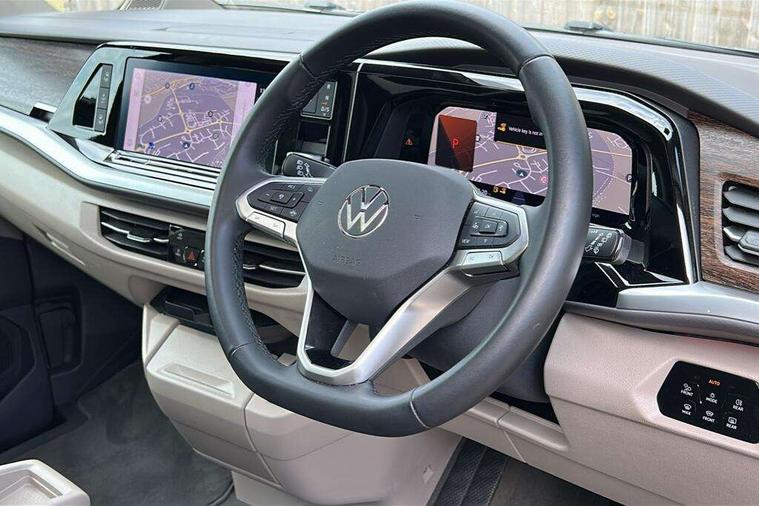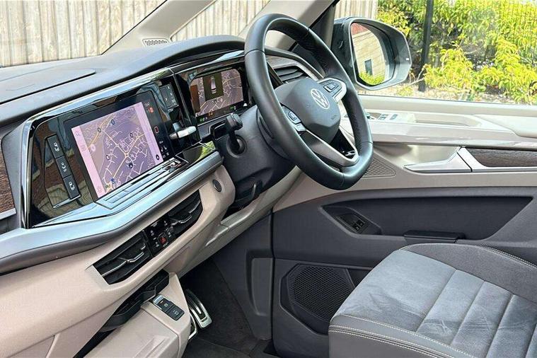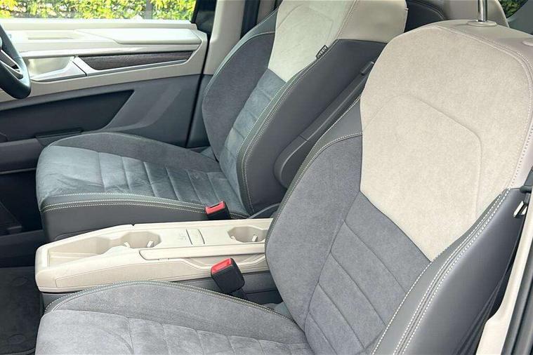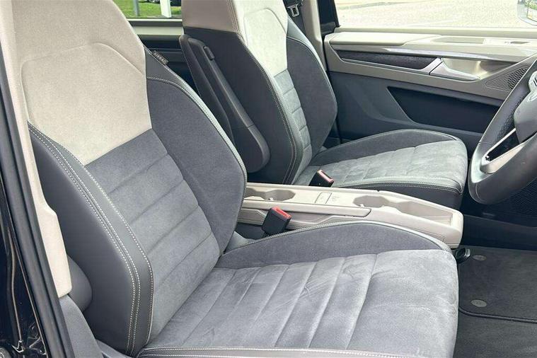 Adaptive cruise control with C2X including front assist and city emergency braking system, App-Connect incl. App-Connect Wireless for Apple CarPlay and Android Auto, Digital Cockpit Pro with 10.25" Display, Driver alert system, Dynamic road sign display, eCall emergency system, Electric tailgate with virtual pedal, Electrically-operated tailgate opening and closing function (Easy open), operated via foot movement under rear tailgate, Emergency assist, Lane change system with side assist including blind spot monitor, rear traffic alert and exit warning system, Lane keeping system Lane Assist, Mobile phone interface, PAS, Rear view camera, Semi-automated driving assistance, Socket AC Type 2, Tailgate, Travel assist, Voice control system including Alexa web app, We connect preparation, 1 x 6 metre charging cables - 16amp AC cable for wallbox chargepoints (mode 3), Electronic differential lock, 2 USB-C ports in front and 4 USB-C ports in passenger compartment, Digital radio reception (DAB+), Additional interior noise reduction measures, Advanced high beam control dynamic light assist for LED matrix headlamps, Automatic headlight control with welcome home lights, Body coloured exterior door handles, Break away auto dimming rear view interior mirror, Dynamic headlight range control with dynamic cornering light, Electric sliding rear side door on the left/right with easy open feature, Electrically adjustable, heated and folding door mirrors, Front fog lights, Glossy black painted radiator grille with 2 illuminated chrome trims, Heated rear window with window wiper and washer system, Heated windscreen, High gloss black exterior mirror housing, IQ.Light LED matrix headlamps with LED separate daytime running light, Laminated safety glass windshield, heat and sound insulating, LED 3rd brake lamp, LED rear combination lamps, Rear wiper, Stainless steel tailgate trim, Surround lighting in door area and tailgate with logo projection in door area, Windshield wiper intermittent control with rain sensor, 1 x 12V sockets on the dash panel, 12V socket in passenger compartment, 3 seat bench in 3rd row, 30 colours ambient interior lighting and tailgate surround lighting, 7 single seats removable/movable, Carpet mats in cab, Climatronic 3 zone air conditioning with 2nd evaporator, auxiliary heater, air conditioned headliner and additional passenger control, Front and rear head restraints, Grab handles on A pillar for access, on driver and front passenger side, Heated steering wheel, Height adjustable seats, Height and longitudinal adjustment steering wheel with gear shift paddles, Illumination lockable glovebox compartment, ISOFIX (including i-size) and top tether in all seats in 2nd and 3rd rows, LED luggage compartment lighting X 2, Load compartment partition to 20kg with bag hooks and luggage net, Luggage compartment lid power latching with unlatching from inside, Multifunction leather steering wheel with tiptronic, Reinforced carpet floor covering in passenger compartment, Removable armrests for front seats with power adjustable lumbar support and folding table for 2nd row passenger seats, Removable armrests in 2nd row passenger seats, Single front passenger seat, Stainless steel pedals, Storage compartment under the 2nd and 3rd row seat and two waste bins, Sun visors with illuminated vanity mirrors and airbag warning label on front passenger sun visors, 3x3 point rear seat belts, ABS, Automatic post collision braking system, Autonomous emergency braking front assist with pedestrian and cyclist monitoring, Driver and front passenger airbag with front passenger airbag deactivation, Electric childproof lock, Electronic stability control (ESC) and Electromechanical brake booster, ESP, First aid kit with warning triangle and safety vest, Front disc brakes, Hill hold assist, Seat belt warning for the drivers and all passengers seats if unfastened, Side and curtain airbags for driver and front passenger, curtain airbags for outer seats in rear, centre airbag in front, Single tone horn, Traction control, Tyre pressure monitoring system, Anti theft alarm system with interior monitoring in cab, backup horn and towing protection, Central locking system keyless entry with touch two stage unlocking, Start/stop button on centre console, Dark woodgrain optic decorative inserts,