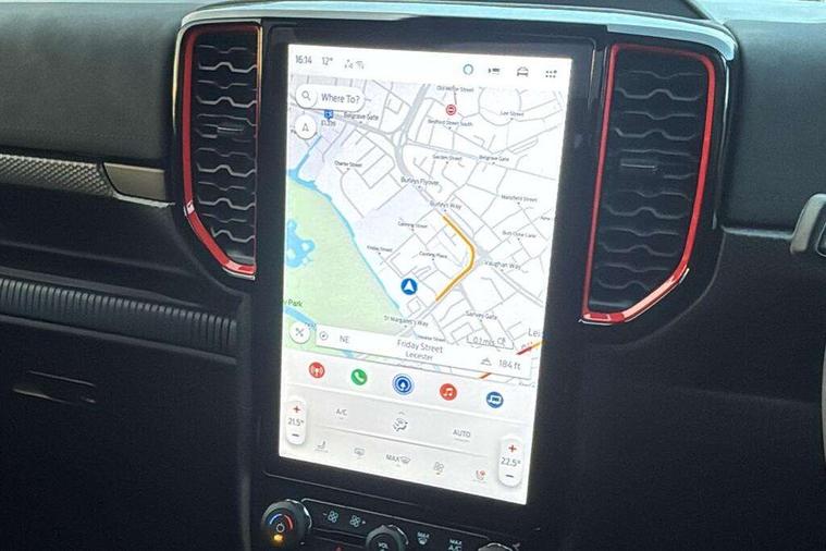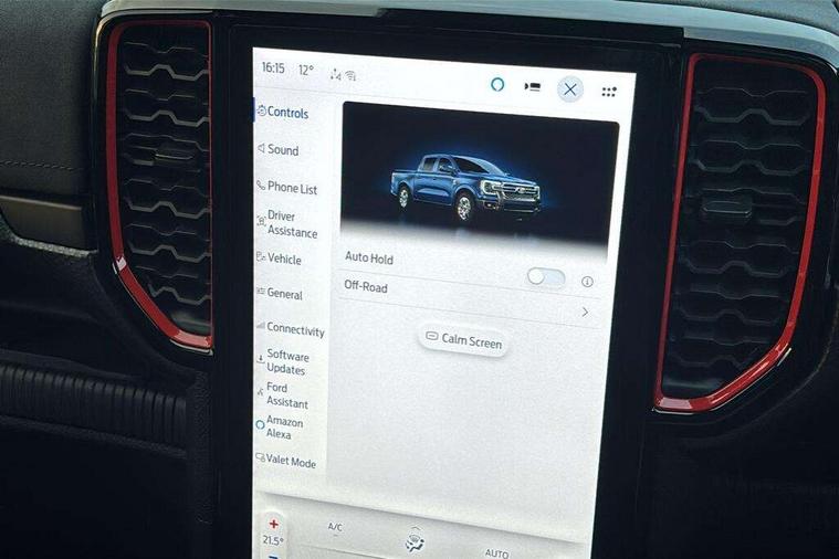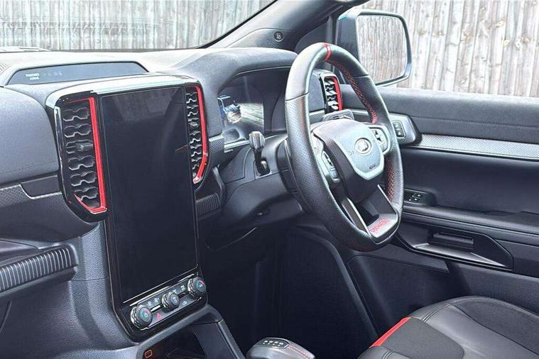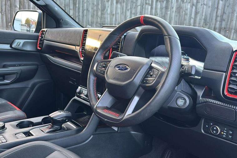 A-pillar assist handle, Electric power assisted steering, Electronic automatic gearshift, Full TFT/LCD instrument cluster, Passenger side roof mounted grab handle, Wireless charging pad, 360 lighting, Accent colour HD front bumper, Acoustic laminated windscreen, Assisted conventional tailgate, Automatic headlamp levelling, Automatic headlights, Black front fender grille, Black grille, Body colour exterior mirrors, Body coloured door handles, Cast alloy side step, Daytime running lights, Dual power heated fold back door mirror with puddle lamps, E-marked glass, Electric rear window defroster, Electric windshield defroster, Electrochromic interior mirror, Extra large wheelarch flares, Fog lamp bezel, Front splash guard, Front towing hooks, Fuel tank guard, High mounted stop lamp, LED Front fog lamp, Level 3 Taillamps, Manual liftgate, Metal underbody protection, Non locking capless fuel fill, Power front windows with one touch up/down, Power rear windows, Privacy glass, Rain sensitive windshield wipers, Rear bumper step accent color, Rear fog lamps, Rear splash guard, Rear towing hooks, Self coloured decklid handles, Tempered glass front window, Under hood engine cover, 12v socket in bedliner, Cargo light, Console with double lid, Driver and passenger sunvisor with mirror, Electronic dual zone automatic air conditioning, Fresh air heater, Front premium floor mats, Heated steering wheel, High series air register, LED ambient interior lighting, Load box bedliner, Load box edge protectors, Locking glove box lid, Non woven carpet, Overhead console with dome lamps, Pollen filter, Pull out cup holder, Radio noise supression, Rear floor ducts, Roof storage for driver sunglasses, Steering wheel with multimedia controls, Super matte leather upholstery, Tie down hooks, Washer tank level warn lamp, Front seat pack 9 - Ranger, Functional upgrade pack 3 - Ranger, Heavy duty terrain pack - Ranger, ICE feature pack 106 - Ranger, Interior trim pack 15 - Ranger, Rear seat pack 15 - Ranger, Wheel pack 19 - Ranger, Breakdown warning triangle, Child proof rear door locks, Driver and passenger airbag, Dual note electric horn, 2 Remote control unit - key fob, Non locking lug nuts, Passive keyless entry and start system, Power door dead locks, Stolen vehicle recovery system, Tailgate lock, Thatcham alarm system, Thatcham security system, 400W Power inverter, ABS/ESP brakes with electronic brake boost, Battery management system, Cabin socket and loadbox socket, Electric parking brake, Electrical outlet 3, Engine start/stop system, Front and rear disc brakes, Locking front axle, Locking rear axle, Performance suspension, Rear power point plug, 17" alloy wheels painted in precision grey and all terrain tyres with Ford carbon black centre cap, 17" Aluminium spare wheel, Spare tire lock,