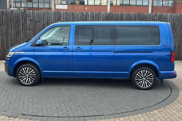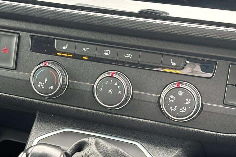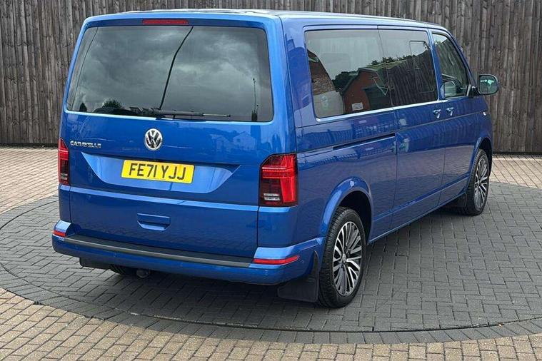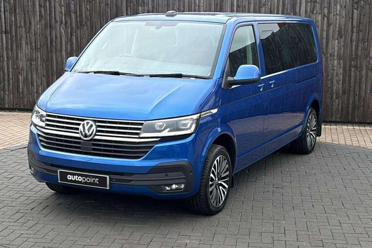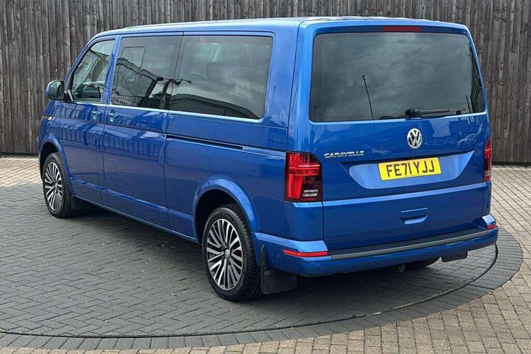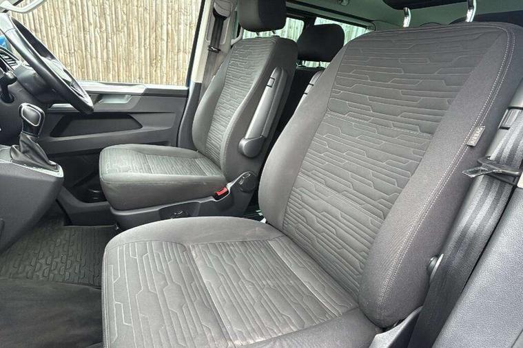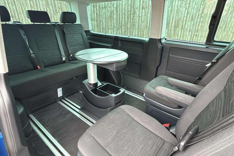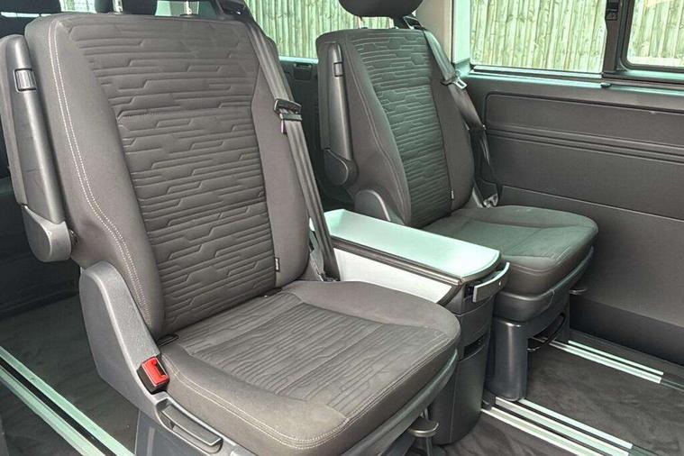 Adaptive cruise control including speed limiter and city emergency braking, Bluetooth handsfree set, Coolant temperature indicator, Cross wind assist, Digital clock, eCall emergency system, Mobile phone interface, Premium multifunction display with multicolour display, Radio composition with 6.5 inch colour touch screen, Rest assist, Service interval indicator, Start/stop system with regenerative braking, Tailgate closing with unlatching from the inside, Tailgate with window aperture and with power latching, Trip computer, Volkswagen app connect, Warning lights, Without voice control, 16 inch chassis with 16 inch brake system, Differential lock, Standard suspension and shock absorption, 2 (type C) USB interfaces in dashboard, 2 USB charging sockets in the left C pillar, 6 speakers - 2 tweeters, 2 woofers, 2 full range speakers, DAB digital radio reception, 10 feet standard roof with mounting points for roof rack system, Additional dust seals on the outside, Automatic headlight control system, Black radiator grille with 5 chrome trims, Body colour bumpers, Body coloured exterior door handles, Body coloured exterior mirror housings, Break away auto dimming rear view interior mirror, Caravelle nameplate on the fender and on the rear, Electric front windows, Fixed side window front and rear in load/passenger compartment left and right, Headlight range control, Left and right convex exterior mirror, Manual coming and leaving home function, Rear window with heat insulating glass, heated, rear window wiper and washer system, Sliding door on the left in load/ passenger compartment with power latching, Sliding door on the right in load/ passenger compartment with power latching, Windshield wiper intermittent control with rain sensor, Without adhesive film, Without trailer hitch, 3 Spoke leather multi function steering wheel, Air recirculation system, Air vent in driver's door, Armrest for both cab seats, Comfort headliner in cab and headliner for recirculated air vents in passenger compartment, Comfort seat on the left and right, in 1st row of seats (not swiveling), Comfort side trim panel in passenger compartment, Dashboard illuminated dimmable instruments, Dust/pollen filters, Electromechanical speed sensitive power steering, height and longitudinally adjustable steering column, Front cupholder, Front/rear reading lights, Glove compartment with illumination, Grab handles on A pillar for access, on driver and front passenger side, Height and tilt adjustable head restraints for all seats, Illuminated steps in passenger/load compartment, Interior lighting with LED technology in load/passenger compartment, Interior lighting with switch off delay and contact switches on all doors, Interior loading edge protection in plastic, ISOFIX and top tether child seat anchorage in 2nd to 4th rows, Jack and tool kit, Lashing rings for load restraint system for reinforced floor covering, Leather handbrake grip, Lockable glovebox, Luggage compartment cover, Rail seat system in passenger compartment, Rear cupholders, Refrigerant R1234yf, Reinforced carpet floor covering in passenger compartment, Roller blinds for side windows, Soft folding grab handles on roof frame, Special interior noise suppression measures, Special sound deadening measures in cab and passenger compartment, Step illumination with caravelle lettering, Storage compartment on outer side of front seats, Storage net on lower dash passenger side, Storage pockets in backrests of front seats, Sun visors with illuminated mirror and airbag label on front passenger sun visor, Sunshades for side windows in passenger compartment, Two 12V accessory power outlets, Variable intensity instrument illumination, Velour non woven floor covering in cab, Without floor mats, Without seat heater, Non smokers pack - Caravelle, 3 point automatic seatbelts in rear, Brake pad warning light, Driver and front passenger airbag with front passenger airbag deactivation, Electronic brake force distribution, Electronic stability control, ABS, ASR with deactivation button, hill start assist, brake assist system, Front assist with autonomous emergency braking, Front side airbags with curtain airbags for driver and front passenger, Height adjustable 3 point seat belts on outer seats in cab with electric pretensioners, Power operated child safety locks, Single tone horn, Traction control, Warning buzzer and light for driver seat belt not fastened, Alarm deactivation switch of interior and tow away protection on B pillar, Anti theft alarm system with interior monitoring in cab, backup horn and towing protection, Central locking system with radio remote control, system controls inside and safelock, Deadlocks, Electronic immobiliser, Lockable fuel cap, Locking wheel bolts, Bright brushed grey decorative inserts, Comfort dashboard titanium black lower part with black chrome elements and bezels,
