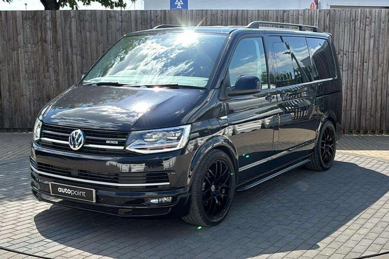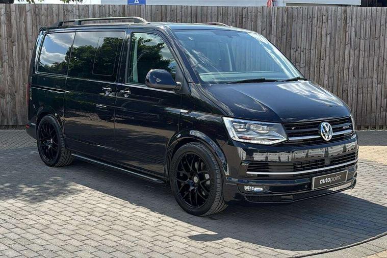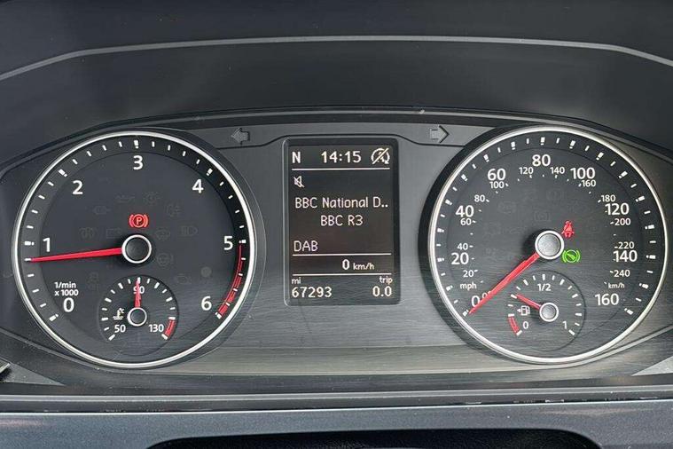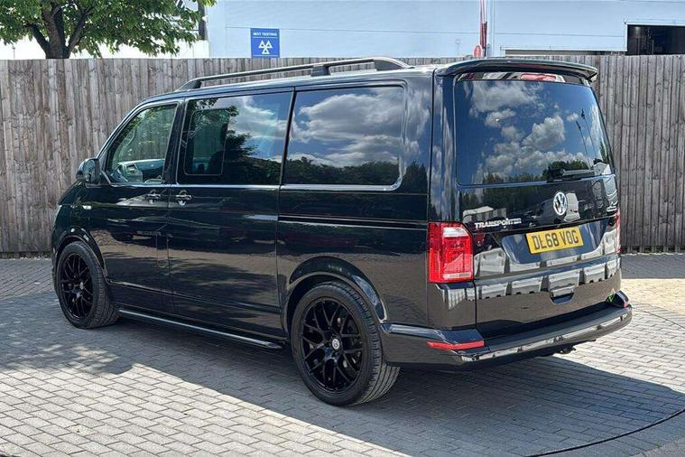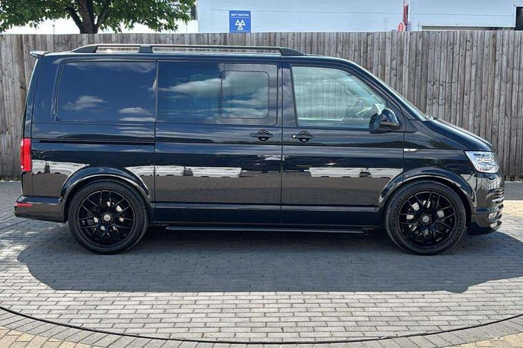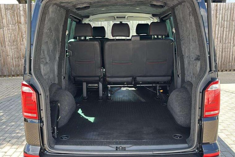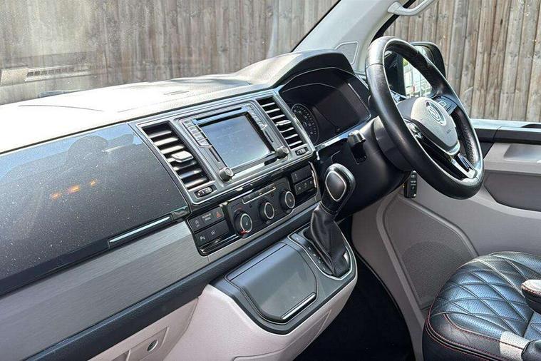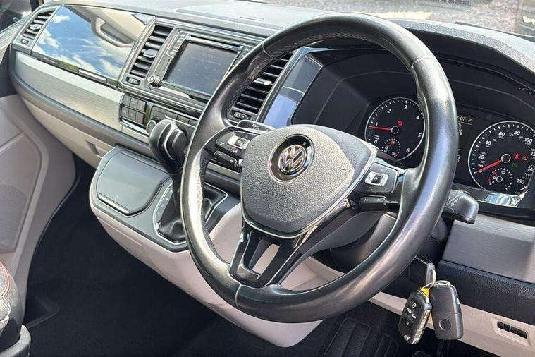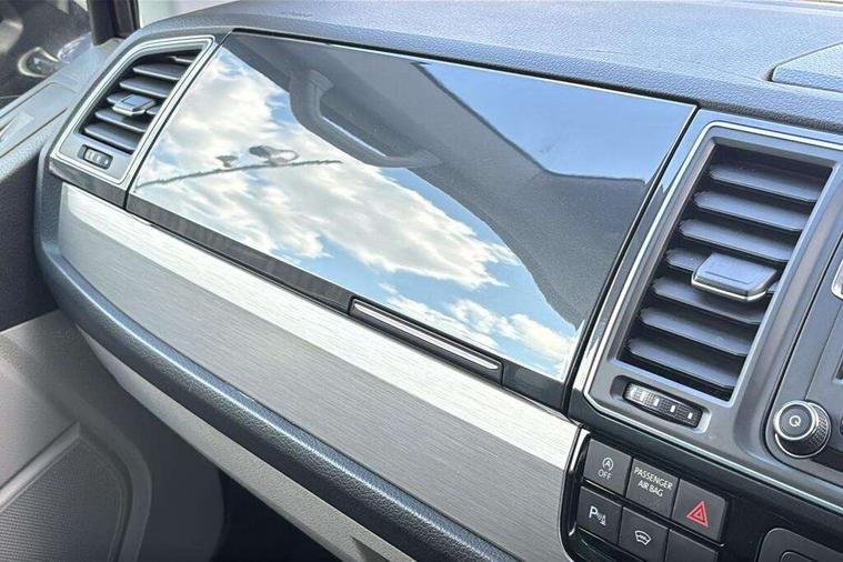 Bluetooth connectivity, Collision prevention assist, Digital clock, Driver alert with Multi-function display plus, Headlight range control, PAS, Rev counter, SD card slot, Seatbelt warning indicator, Service indicator, Trip computer, Tyre pressure monitor, 4 speakers, Aux input socket, DAB radio/CD player, iPod/USB connection, Auto dimming and breakaway interior rear view mirror, Automatic headlights, Body coloured bumpers, Body coloured door handles, Body coloured door mirrors, Chrome plated strip on air intake charge air cooler, Electric front windows, Front and rear towing rings, Front fog lights with cornering function, Heat reflective glass, Heated front windscreen, Heated rear window and wash wipe, No windows in rear side panels, Privacy glass rear + load compartment with green heat insulating glass, Sliding windows in side door and opposite, 2 rear interior lights, switchable by door, 2 storage trays in dashboard, 2 sun visors folding and pivoted, 3 seater rear bench, Additional 12v accessory socket, Cab interior light, Drinks holder, Drivers seat adjustable for reach and rake, Dust/pollen filter, Height adjustable head restraints, Height and rake adjustable steering column, Interior entry steps, Load lashing rings, Locking glovebox, Multifunction leather steering wheel, gearknob and gaiter, Open storage compartment in dash panel including mobile phone holder, Passenger armrest, Passenger seat with reach and rake adjustment, Rubber load floor cover with step light, Storage compartments in doors, Storage net on lower dash passenger side, Cab comfort pack - Transporter Kombi, Lights and vision pack - Transporter, Non smoker pack, 3 point inertia reel belt on all seats, Front passenger airbag deactivation, Height adjustable seatbelts for outer cab seats, Height adjustable seatbelts with tensioners, Internal central locking control, Anti-theft alarm with rear control in cab, backup horn and towing protection, Interior (cab only) and tow away protection, Locking wheel bolts, Remote central/dead locking + 2 keys, 70 litre fuel tank, ABS with electronic brake distribution, Diesel particulate filter, EDL, ESP, Parking brake - hill hold control, Traction control, 17" Devonport alloy wheels,