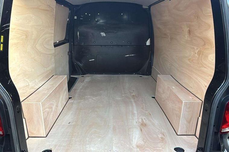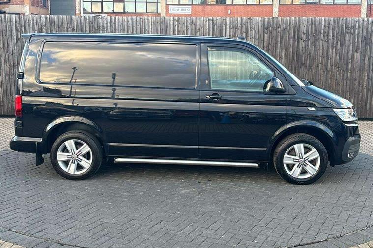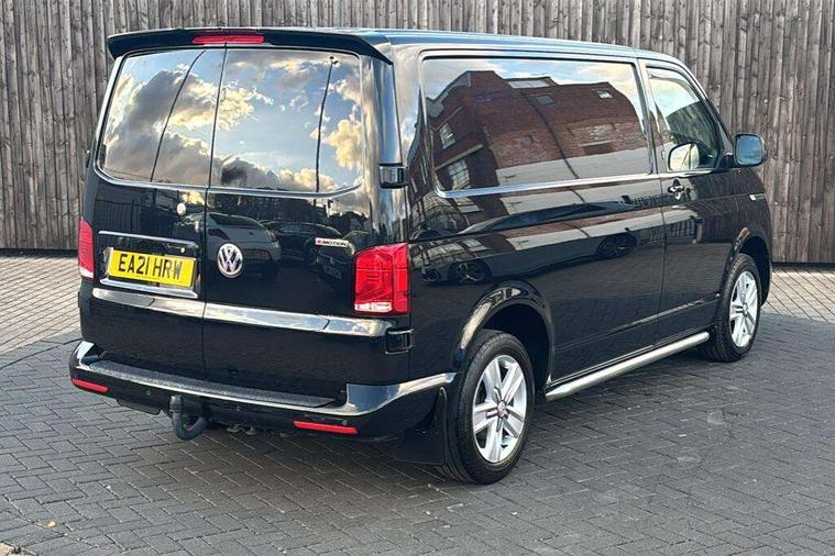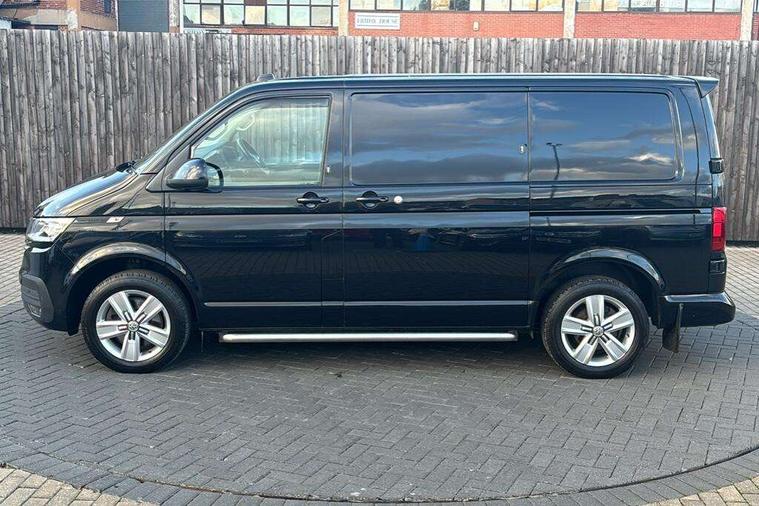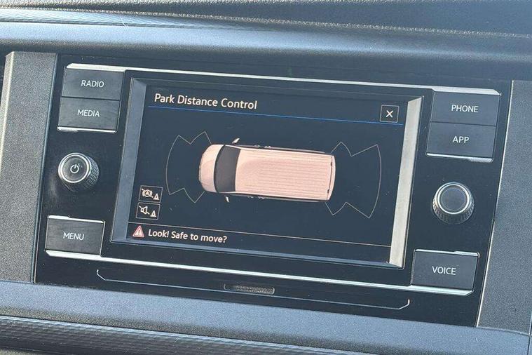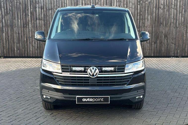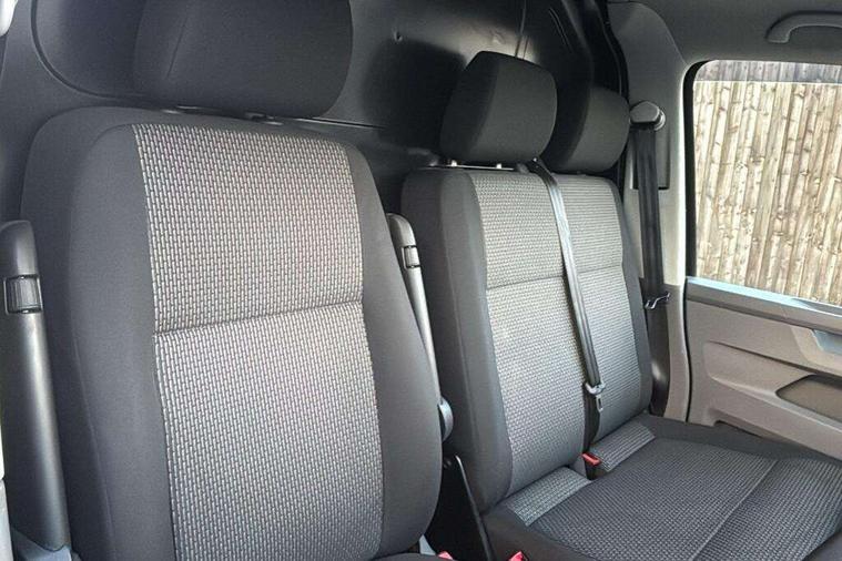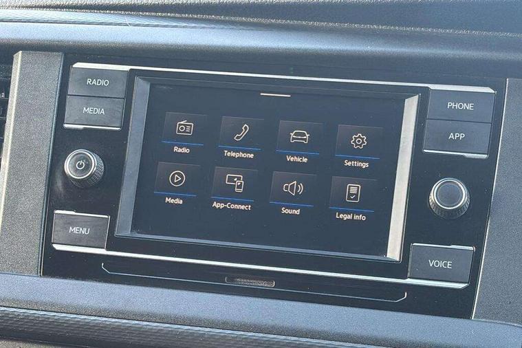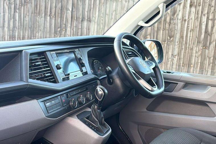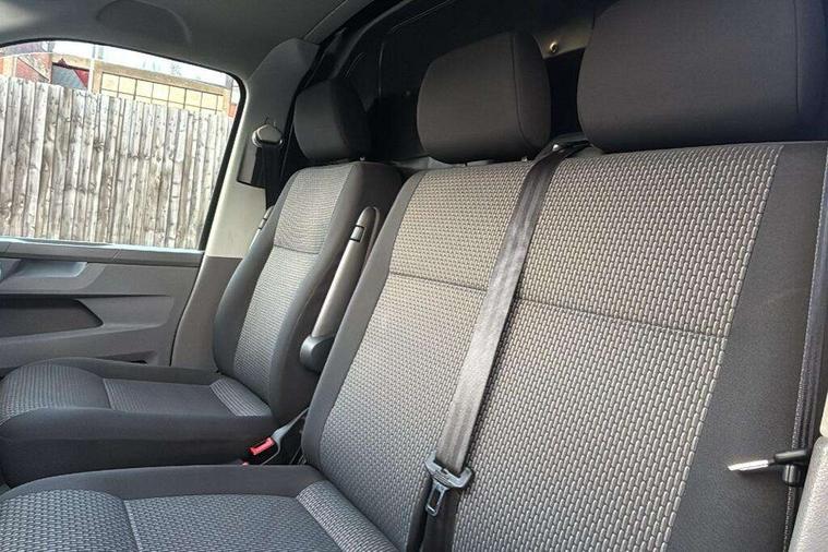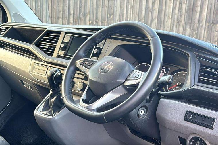 Adaptive cruise control, Cross wind assist, Dimmable illuminated instruments, Driver alert with Multi-function display plus, eCall emergency system, Electromechanical speed sensitive power steering, height and longitudinally adjustable steering column, Forward collision warning front assist with autonomous emergency braking, Mobile phone interface, Multi function display plus with black and white display, 2 USB interfaces type C in dashboard, 4 speakers with 2 tweeters and 2 woofers, Composition colour radio with 6.5" touchscreen, Digital radio reception (DAB+), Volkswagen app connect, Automatic headlight control, leaving home and manual coming home feature, Closing rear wing door with unlatching from the inside, Front fog lamps with cornering light, Green tinted heat insulating glass in cab and passenger compartment, Heated front windscreen, Left convex exterior mirror, Power adjustable and heated exterior mirrors, Power folding door mirrors, Radiator grille with 2 chrome trims, Rear wing doors without window apertures, Right convex exterior mirror, Transporter nameplate on the rear fender, Windshield wiper intermittent control with rain sensor for windshield wipers, 3 spoke leather wrapped multi function steering wheel, Auto dimming breakaway interior rear view mirror, Comfort headliner in cab, hardboard roof trim in passenger and load compartment, Dust/pollen filter, Front and rear left without window closed side panel in load compartment, Front seats on the right in 1st row of seat, Glove compartment with illumination, Heavy duty tool kit and jack, High partition, Interior plastic loading edge protection, LED Interior lighting in load and passenger compartment, Refrigerant R134a, Rubber floor covering in cab, Standard lower part dashboard in palladium, Storage compartments on cab seats and reading light, Without right side window apertures in passenger and load compartment, Comfort pack - Transporter, Exterior pack without fog light- Transporter, Non smoker pack - Transporter, 3 point height adjustable seat belts on outer seats cab with electric pretensioners, Driver and front passenger airbag with front passenger airbag deactivation, Single tone horn, Warning buzzer and light for driver and front passenger seat belt not fastened, Without child safety lock in passenger compartment, Anti theft alarm system with interior monitoring in cab, backup horn and towing protection, Lockable wheel bolts, 16" chassis with 16" brake system, Additional 12V socket, Diesel particulate filter, Electronic stability control, ABS, ASR with deactivation button, hill start assist and brake assist system, Start/stop system with regenerative breaking, 17" Devonport alloy wheels,
