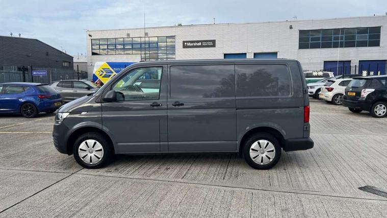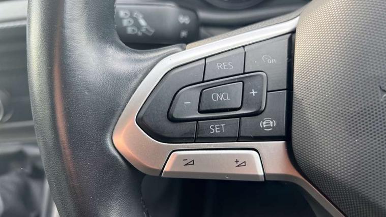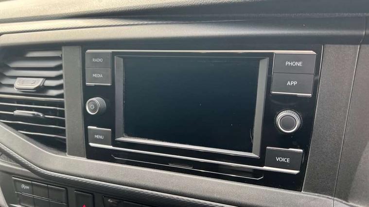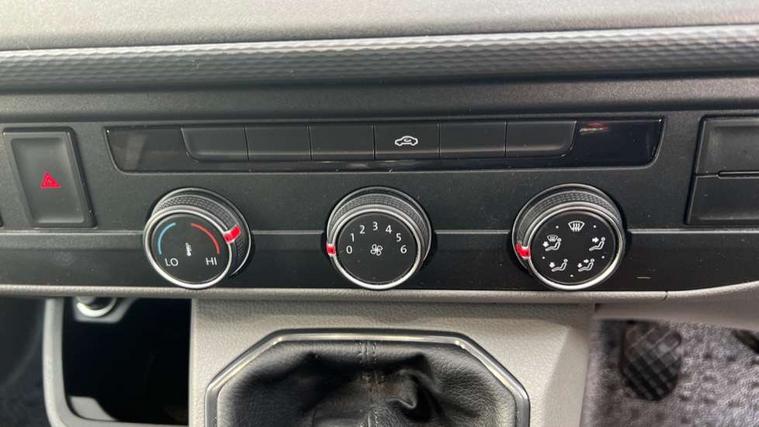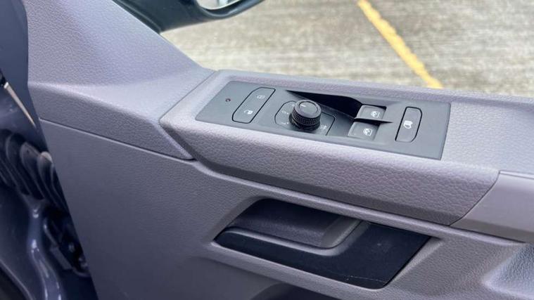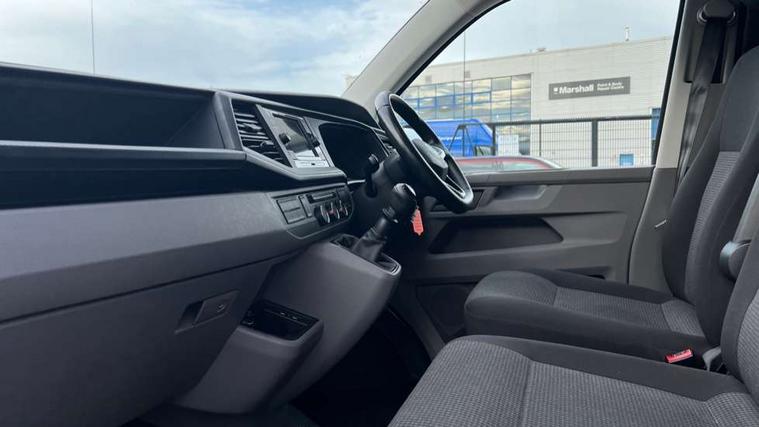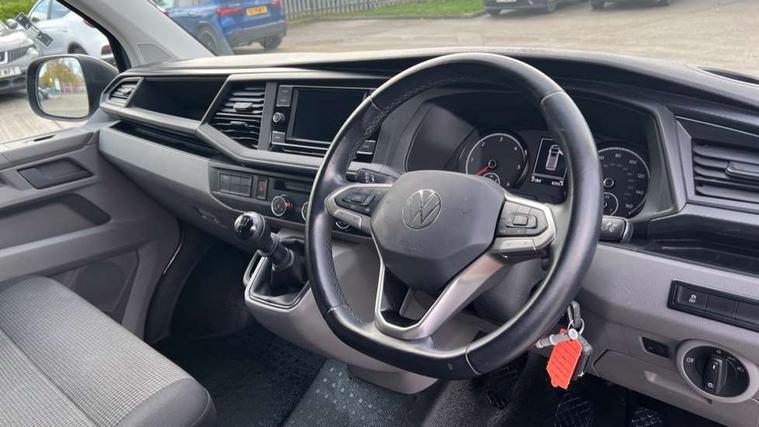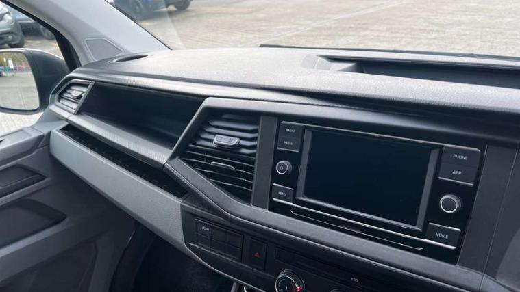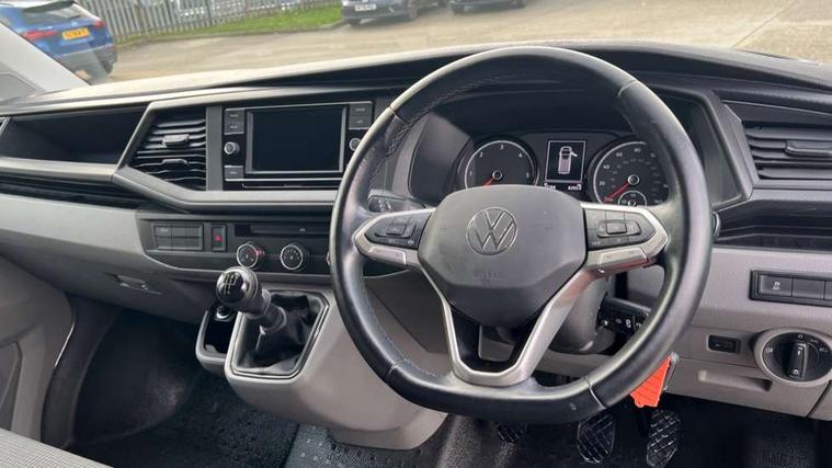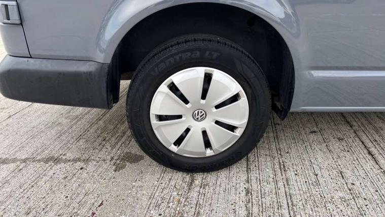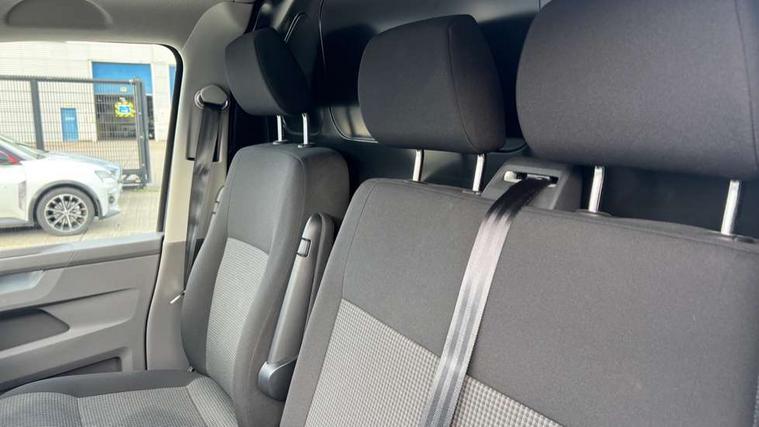 Cross wind assist, Dimmable illuminated instruments, Driver alert with Multi-function display plus, eCall emergency system, Forward collision warning front assist with autonomous emergency braking, Mobile phone interface, Multi function display plus with black and white display, 2 USB interfaces type C in dashboard, 4 speakers with 2 tweeters and 2 woofers, Composition colour radio with 6.5" touchscreen, Digital radio reception (DAB+), Volkswagen app connect, 4 stages windshield wiper intermittent control for windshield wipers, Closing rear wing door with unlatching from the inside, H7 twin halogen headlamps, Heat insulating glass (green) in cab and passenger/load compartment, Heat insulating windshield made of laminated glass, Left convex exterior mirror, Rear wing doors without window apertures, Right convex exterior mirror, Separate Daytime running lights, Transporter nameplate on the rear fender, Unpainted radiator grille with 2 chrome trims, 3 spoke leather wrapped multi function steering wheel, Comfort headliner in cab, hardboard roof trim in passenger and load compartment, Dust/pollen filter, Folding grab handles on roof frame, Front and rear left without window closed side panel in load compartment, Front seats on the right in 1st row of seat, Glove compartment without illumination, Heavy duty tool kit and jack, High partition, Interior plastic loading edge protection, LED Interior lighting in load and passenger compartment, Manual adjustable lumbar support for right single seat in 1st row seats, Standard lower part dashboard in palladium, Without breakaway interior rear view mirror, Without refrigerant, Without right side window apertures in passenger and load compartment, Non smoker pack - Transporter, 3 point height adjustable seat belts on outer seats cab with electric pretensioners, Driver and front passenger airbag with front passenger airbag deactivation, Warning buzzer and light for driver and front passenger seat belt not fastened, Without child safety lock in passenger compartment, Electronic immobiliser, Wheel bolts without wheel locks, 16" chassis with 16" brake system, Diesel particulate filter, Electronic stability control, ABS, ASR with deactivation button, hill start assist and brake assist system, Standard anti drum measures, Start/stop system with regenerative breaking,