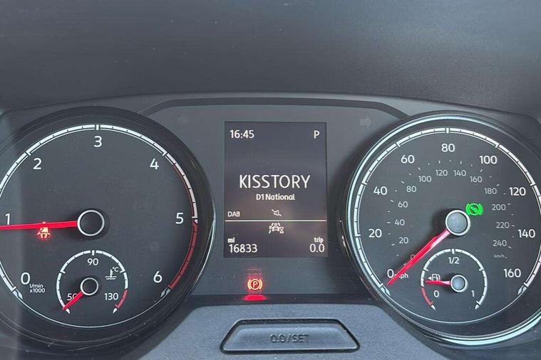 Adaptive cruise control, Cross wind assist, Dimmable illuminated instruments, Driver alert with Multi-function display plus, eCall emergency system, Forward collision warning front assist with autonomous emergency braking, Mobile phone interface, Multi function display plus with black and white display, 2 USB interfaces type C in dashboard, 4 speakers with 2 tweeters and 2 woofers, Composition colour radio with 6.5" touchscreen, Digital radio reception (DAB+), Volkswagen app connect, Closing rear wing door with unlatching from the inside, Front fog lamps with cornering light, Heat insulating glass (green) in cab and passenger/load compartment, Heated front windscreen, Left convex exterior mirror, Power folding adjustable door mirrors with separately heated, Radiator grille with 2 chrome trims, Rear wing doors without window apertures, Right convex exterior mirror, Transporter nameplate on the rear fender, 3 spoke leather wrapped multi function steering wheel, Comfort headliner in cab, hardboard roof trim in passenger and load compartment, Dust/pollen filter, Front and rear left without window closed side panel in load compartment, Front seats on the right in 1st row of seat, Heavy duty tool kit and jack, High partition, Interior plastic loading edge protection, LED Interior lighting in load and passenger compartment, Refrigerant R134a, Standard lower part dashboard in palladium, Storage compartments on cab seats and reading light, Without right side window apertures in passenger and load compartment, Comfort pack - Transporter, Exterior pack without fog light- Transporter, Light and vision pack - Transporter, Non smoker pack - Transporter, 3 point height adjustable seat belts on outer seats cab with electric pretensioners, Driver and front passenger airbag with front passenger airbag deactivation, Warning buzzer and light for driver and front passenger seat belt not fastened, Without child safety lock in passenger compartment, Anti theft alarm system with interior monitoring in cab, backup horn and towing protection, Lockable wheel bolts, 16" chassis with 16" brake system, Diesel particulate filter, Electronic stability control, ABS, ASR with deactivation button, hill start assist and brake assist system, Start/stop system with regenerative breaking, 17" Devonport silver alloy wheels,