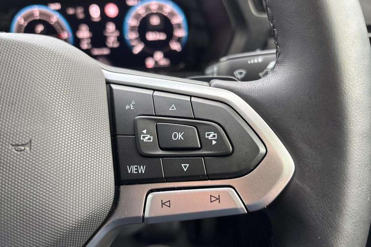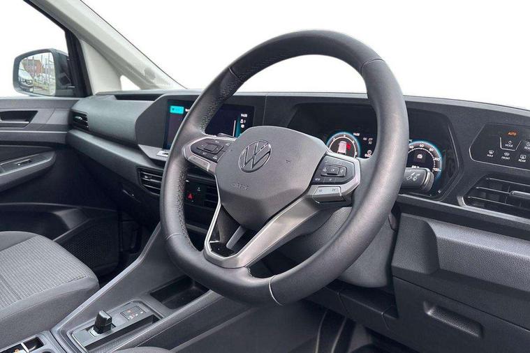 Driver alert system includes drowsiness detection, Emergency call control unit with eCall, Multi-function Display, Seatbelt warning indicator, Service indicator, Start-stop system with regenerative braking, DAB Radio, We Connect Plus Preparation, Automatic hazard light activation under emergency braking, Black painted exterior mirror housings, body-colored door handles and Silver sliding door rail, Body coloured bumpers, Electric front windows, Heated windscreen, LED rear combination lights, LED rear tail lights, Roof rail preparation, Windscreen wiper with variable intermittent delay and wash-wipe system, Electronically controlled heating system, ergoComfort seats for driver, Interior light in headlining, Lockable glove compartment door with light, Manual height adjustment for front seats and seat cushion inclination and depth adjustment on drivers seat, Multi function leather steering wheel, Power-adjustable lumbar support for drivers seat, Reach and rake adjustable steering column, Six lashing points for securing loads, Steering wheel paddle shift, Storage compartments under driver and front passenger seats, Sun visors with mirror, airbag label on front passenger sun visor, 3-point seat belts in front, with pretensioner and height adjustment, Driver and front passenger airbag with front passenger airbag deactivation, Anti-theft alarm system, interior monitoring, backup horn, and towing protection, Electronic engine immobiliser, Remote central locking with deadlocks, interior locking, Anti locking braking system (ABS), Automatic post collision braking system, Electric parking brake with auto hold function, Electronic brake force distribution (EBD), Electronic differential lock (EDL), Electronic stabilisation programme (ESP), Emergency brake assist, Engine drag torque control (MSR), Hill hold assist, Traction control system (TCS), Decorative beige birch vein inserts, Wheel bolts with anti-theft protection (unlockable),
