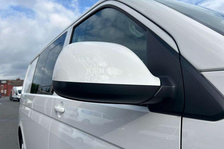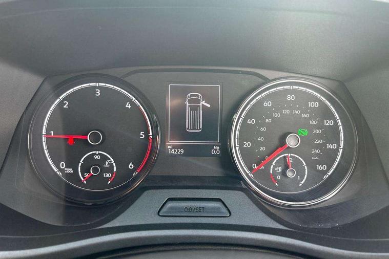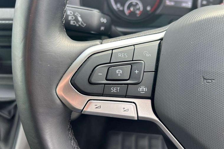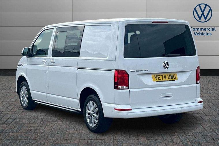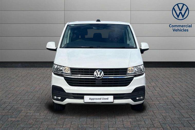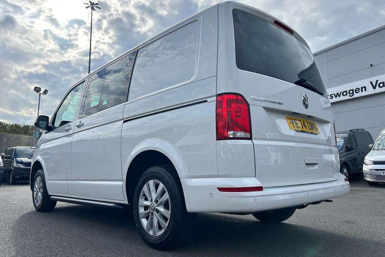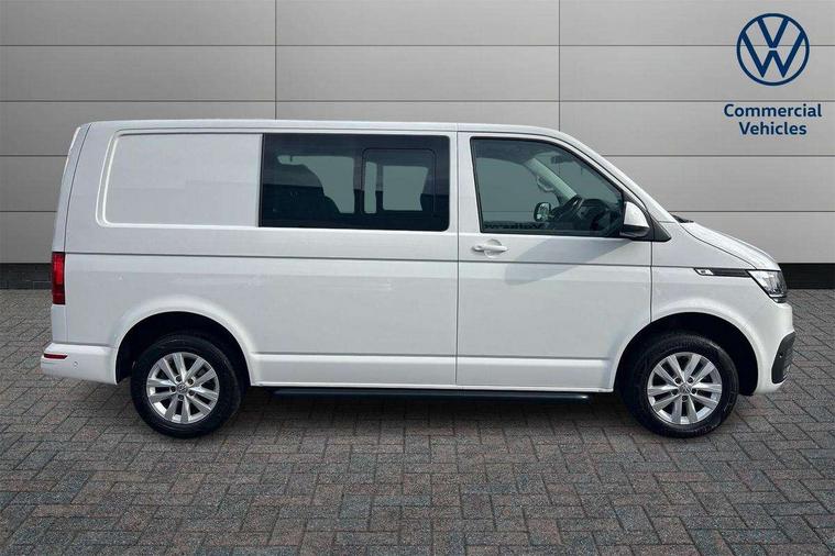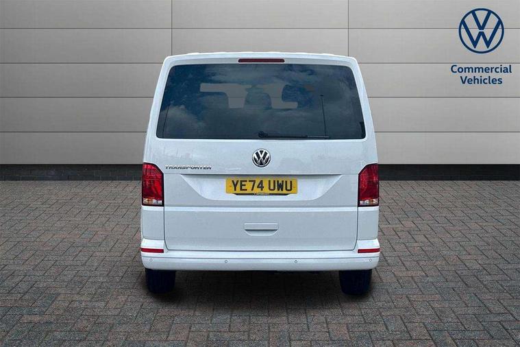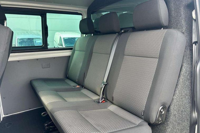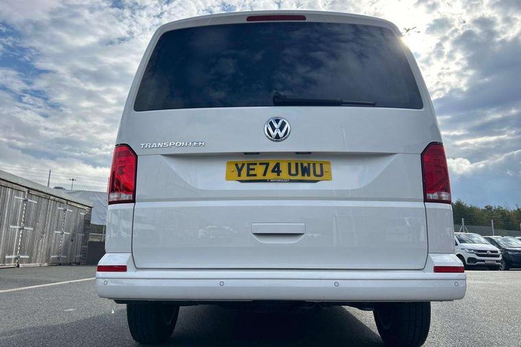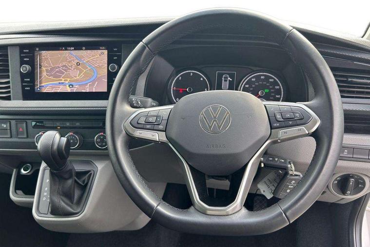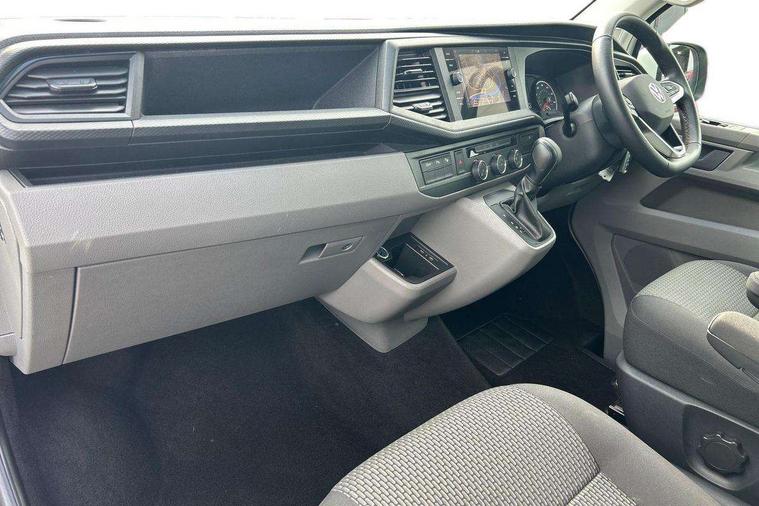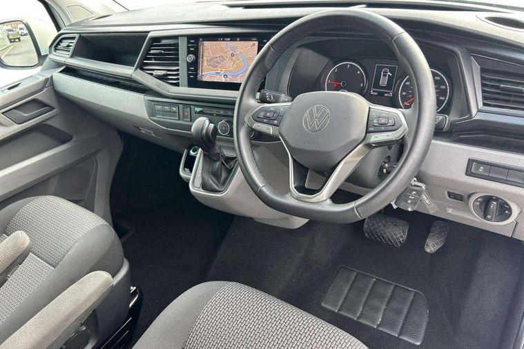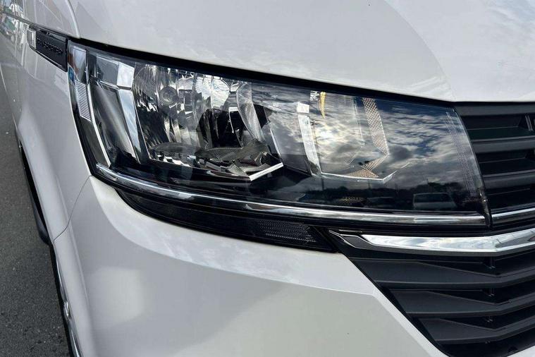 Adaptive cruise control, Child seat anchors ISOFIX and top tether in 2nd row of seats, Cross wind assist, Dimmable illuminated instruments, Driver alert with black and white multi function display plus, eCall emergency system, Forward collision warning front assist with autonomous emergency braking, Headlight range control, Mobile phone interface, Without voice control, 2 USB interfaces type C in dashboard, 4 speakers with 2 tweeters and 2 woofers, Composition colour radio with 6.5" touchscreen, Digital radio reception (DAB+), Volkswagen app connect, Automatic headlight control, leaving home and manual coming home feature, Front fog lamps with cornering light, Green heat insulating glass, Heated front windscreen, Illuminated steps in passenger/load compartment, Left convex exterior mirror, Power folding adjustable door mirrors with separately heated, Privacy glass from the B-pillar and heat-insulating glass in front, Radiator grille with 2 chrome trims, Rear window with heated insulating glass, heated rear window wiper and washer system, Right convex exterior mirror, Tailgate closing with unlatching from the inside, Transporter nameplate on the rear fender, Windshield wiper intermittent control with rain sensor for windshield wipers, Without adhesive film, 3 spoke leather wrapped multi function steering wheel, Additional sound deadening measures in cab and passenger compartment, Auto dimming breakaway interior rear view mirror, Comfort headliner in cab, hardboard roof trim in passenger and load compartment, Dust/pollen filter, Folding grab handles and storage compartments on cab seats, reading light, Front seats on the right in 1st row of seat, Glove compartment with illumination, Heavy duty tool kit and jack, Interior plastic loading edge protection, Lashing rings for load restraint system, LED Interior lighting in load and passenger compartment, Manual height adjustable and lumbar support for driver and single passenger seats, Medium height for vehicles with window aperture hardboard side trim panels in passenger/load compartment, Refrigerant R134a, Standard lower part dashboard in palladium, Without partition, Without seats in 3rd row of seats, Comfort pack - Transporter, Exterior pack without fog light- Transporter, Light and vision pack - Transporter, Non smoker pack - Transporter, 3 point height adjustable seat belts on outer seats cab with electric pretensioners, Driver and front passenger airbag with front passenger airbag deactivation, Power operated child safety lock, Warning buzzer and light for driver seat belt not fastened, Anti theft alarm system with interior monitoring in cab, backup horn and towing protection, Lockable wheel bolts, 16" chassis with 16" brake system, Additional 12V socket, Diesel particulate filter, Electronic stability control, ABS, ASR with deactivation button, hill start assist and brake assist system, Speed limiter, Start/stop system with regenerative breaking, 16" Clayton alloy wheels, Wheel trims,