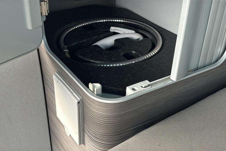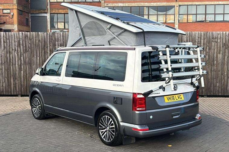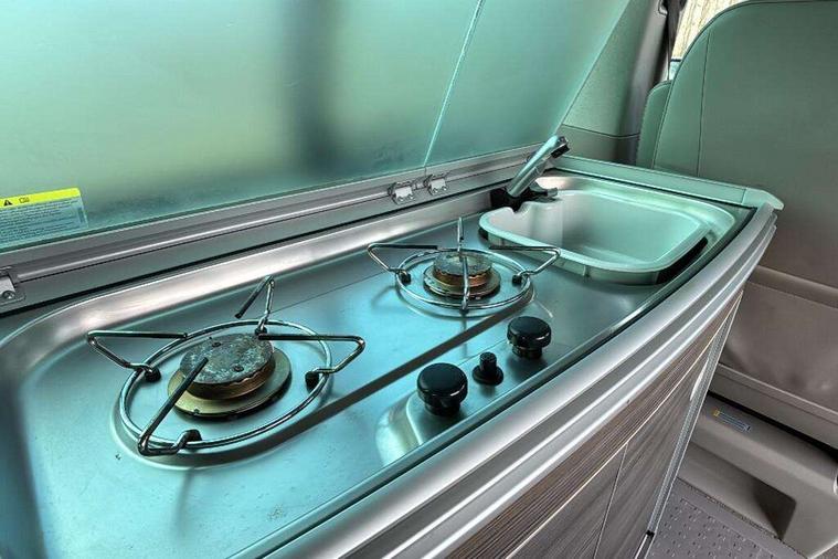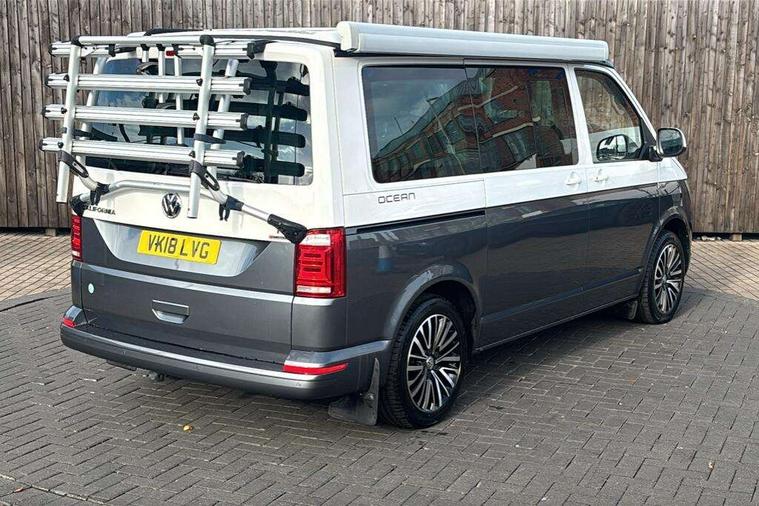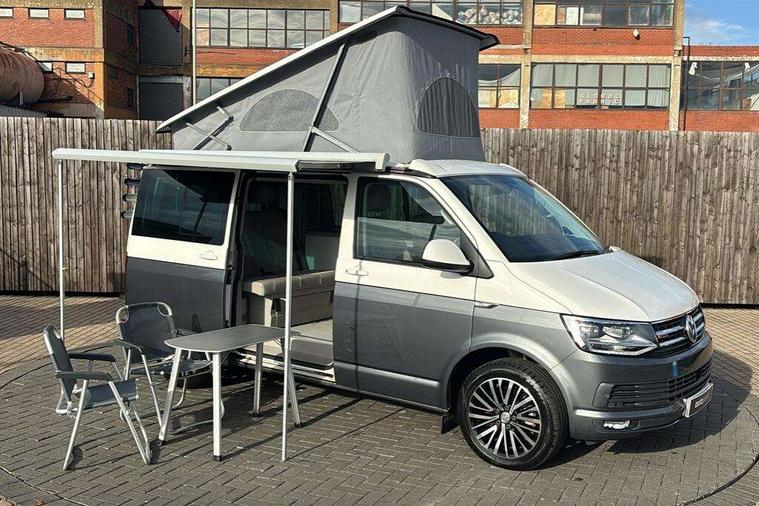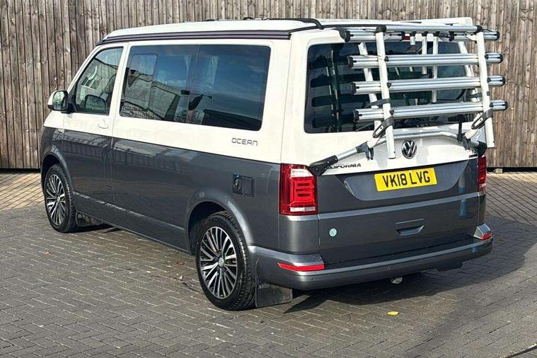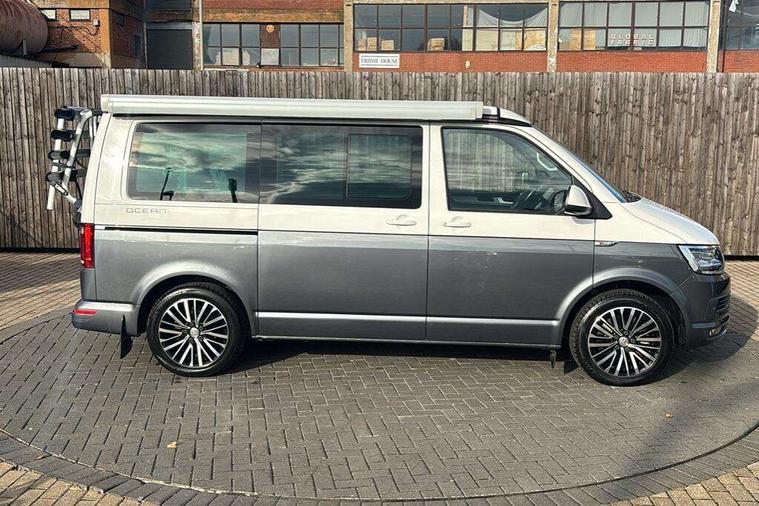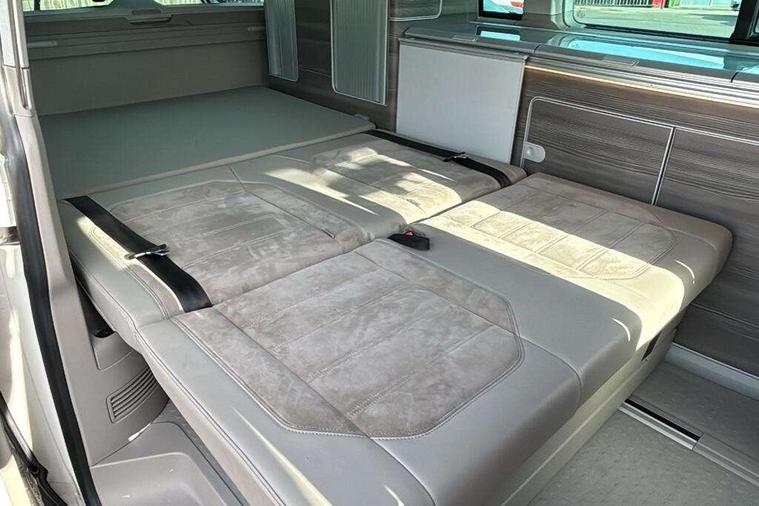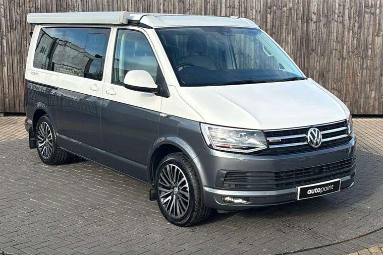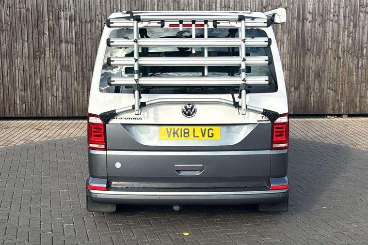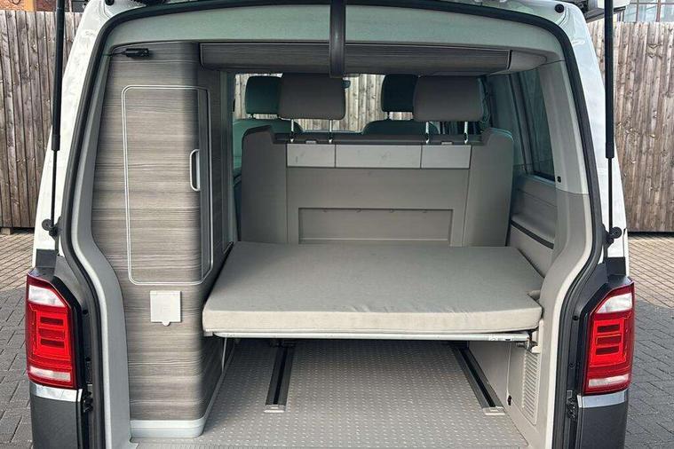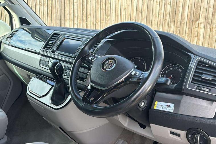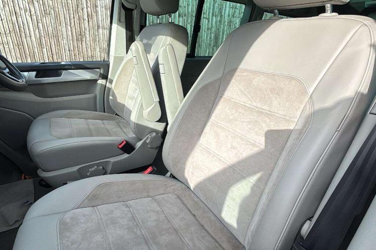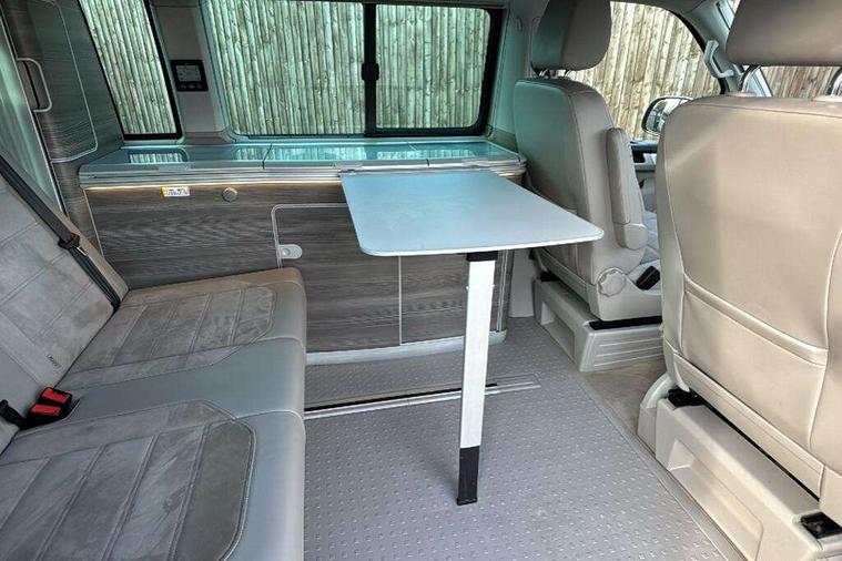 Digital clock, Driver alert system, External temperature gauge, Lockable tailgate, Low washer fluid indicator, Power Steering, Rev counter, Service interval indicator, Tailgate power closing, Trip computer, 180A alternator, 2x Auxiliary rechargable batteries, Auxiliary input socket, DAB Digital radio, Radio/CD + MP3, USB port, Auto dimming rear view mirror, Automatic coming home lighting, Automatic headlights, Body colour bumpers, Body colour door mirrors and handles, Electric adjustable/heated/folding door mirrors, Front fog lights with static cornering function, Glazed tailgate, Heated front washer nozzles and low fluid level indicator, Intermittent windscreen wipers, LED tail lights, Power latching sliding driver's door, Power windows, Rain sensor, Range adjustable headlights, Rear wash/wipe, Roof rails, Side sliding windows, 230V socket, 3 zone climate control, Adjustable dashboard illumination, Auxiliary heater, Camping table with two folding chairs, Centre console, Driver + passenger lumbar support, Driver/front passenger seat height adjustment, Dust/pollen filters, Front door storage bins with bottle holder, Front grab handles, Front seat armrests, Front seat backrest storage nets, Head restraints for all seats, Heated front seats, Independent rear heating controls, Interior illuminated entry steps, ISOFIX top tethers and lower anchor points, Jack and tool kit, Leather gear knob/gaiter, Leather steering wheel, Parking heater with programmable timer and remote control, Passenger floor covering in Moonrock grey, Preparation for separate seat in passenger compartment, Storage net on lower dash passenger side, Sunvisors with illuminated vanity mirrors, Swivelling front seats, Comfort pack - California, Lights and vision pack - California, Smoking pack - California, ABS/EBD, Brake assist function, Child proof door locks, Door open warning, Driver seatbelt warning indicator, Driver/Front Passenger airbags, Driver/front passenger seatbelt tensioners, EDL, ESP, Front side airbags with curtain airbags, Hill hold control, Passenger airbag deactivation system, Two tone horn, Tyre pressure warning, Warning triangle and first aid kit, Alarm with interior protection, Electronic immobiliser, Locking wheel nuts, 235/55 R17 tyres with optimised rolling resistance, Wheel covers,