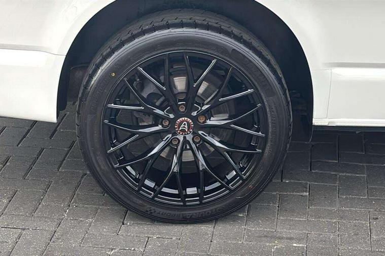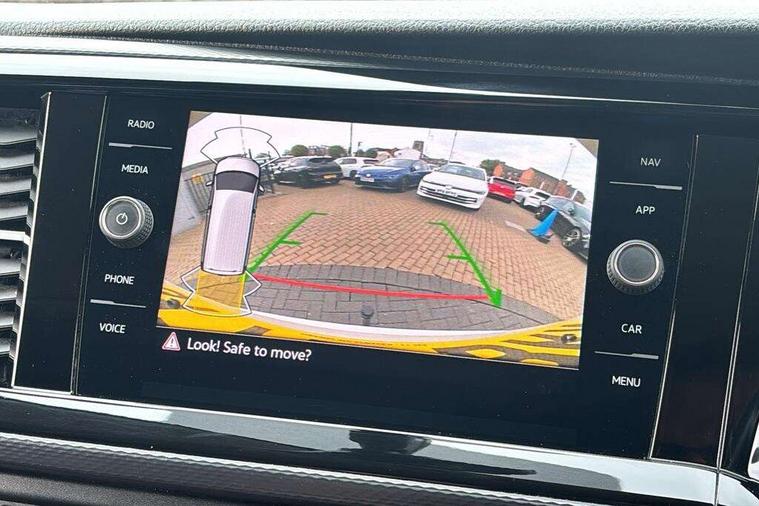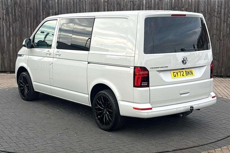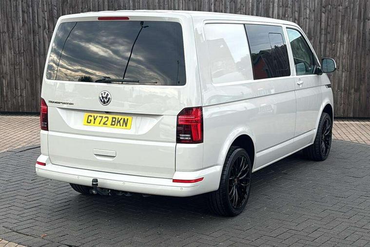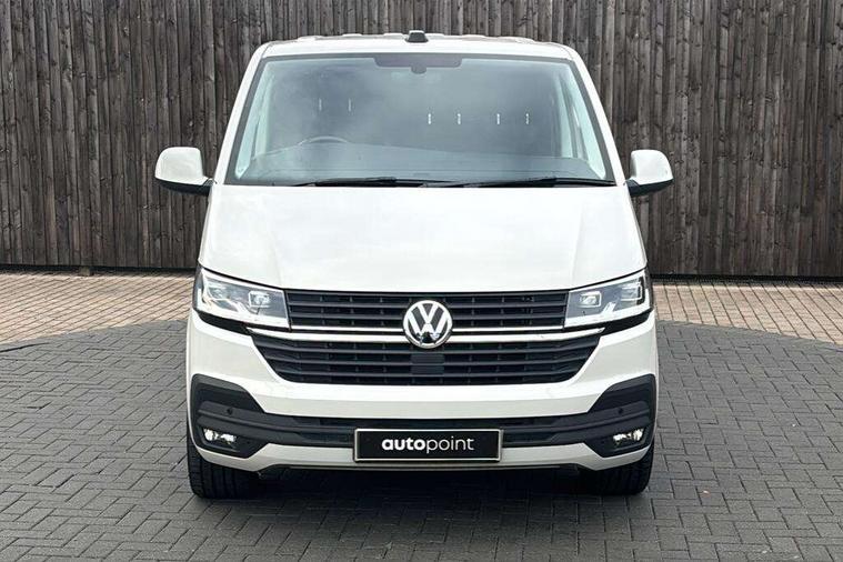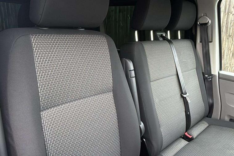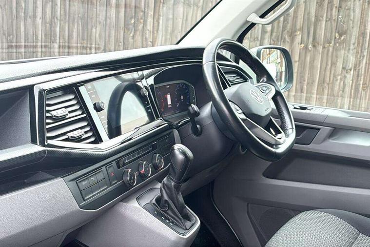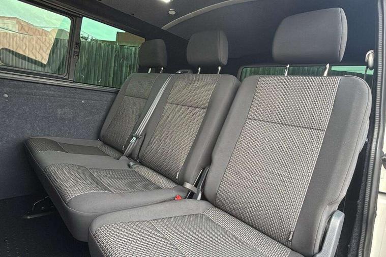 Adaptive cruise control, Child seat anchors ISOFIX and top tether in 2nd row of seats, Cross wind assist, Dimmable illuminated instruments, Driver alert with black and white multi function display plus, eCall emergency system, Forward collision warning front assist with autonomous emergency braking, Headlight range control, Mobile phone interface, Without voice control, 2 USB interfaces type C in dashboard, 4 speakers with 2 tweeters and 2 woofers, Composition colour radio with 6.5" touchscreen, Digital radio reception (DAB+), Volkswagen app connect, Automatic headlight control, leaving home and manual coming home feature, Front fog lamps with cornering light, Green heat insulating glass, Heated front windscreen, Illuminated steps in passenger/load compartment, Left convex exterior mirror, Power folding adjustable door mirrors with separately heated, Privacy glass from the B-pillar and heat-insulating glass in front, Radiator grille with 2 chrome trims, Rear window with heated insulating glass, heated rear window wiper and washer system, Right convex exterior mirror, Tailgate closing with unlatching from the inside, Transporter nameplate on the rear fender, Windshield wiper intermittent control with rain sensor for windshield wipers, Without adhesive film, 3 spoke leather wrapped multi function steering wheel, Additional sound deadening measures in cab and passenger compartment, Auto dimming breakaway interior rear view mirror, Comfort headliner in cab, hardboard roof trim in passenger and load compartment, Dust/pollen filter, Folding grab handles and storage compartments on cab seats, reading light, Front seats on the right in 1st row of seat, Glove compartment with illumination, Heavy duty tool kit and jack, Interior plastic loading edge protection, Lashing rings for load restraint system, LED Interior lighting in load and passenger compartment, Medium height for vehicles with window aperture hardboard side trim panels in passenger/load compartment, Refrigerant R134a, Standard lower part dashboard in palladium, Without partition, Without seats in 3rd row of seats, Comfort pack - Transporter, Exterior pack without fog light- Transporter, Light and vision pack - Transporter, Non smoker pack - Transporter, 3 point height adjustable seat belts on outer seats cab with electric pretensioners, Driver and front passenger airbag with front passenger airbag deactivation, Power operated child safety lock, Warning buzzer and light for driver seat belt not fastened, Anti theft alarm system with interior monitoring in cab, backup horn and towing protection, Lockable wheel bolts, 16" chassis with 16" brake system, Diesel particulate filter, Electronic stability control, ABS, ASR with deactivation button, hill start assist and brake assist system, Speed limiter, Start/stop system with regenerative breaking, 17" Devonport silver alloy wheels, Wheel trims,