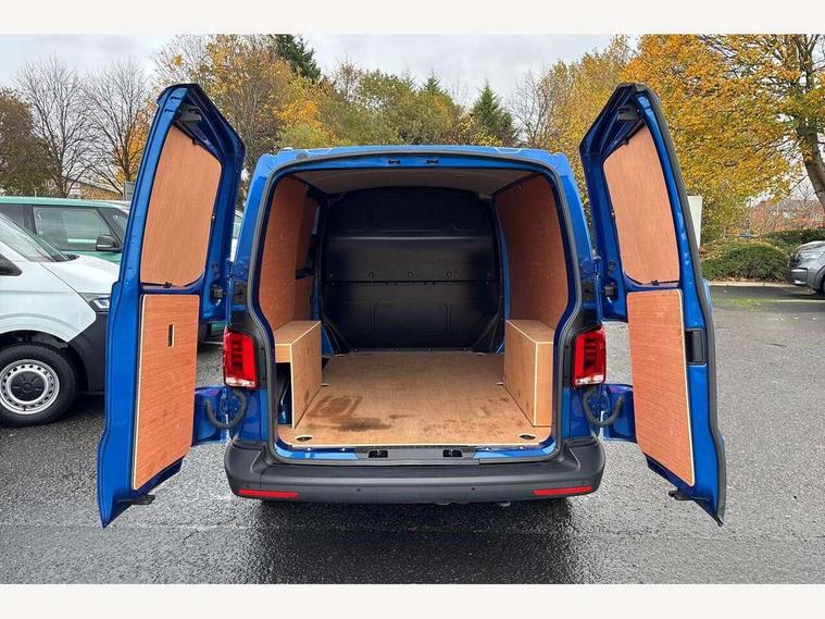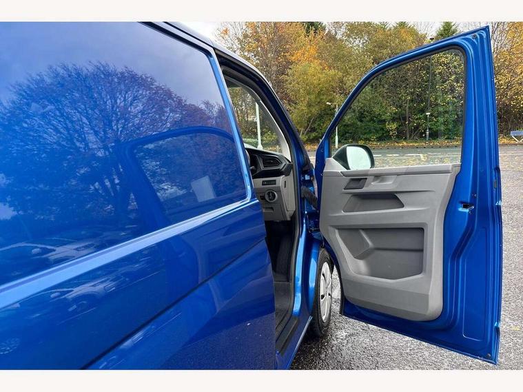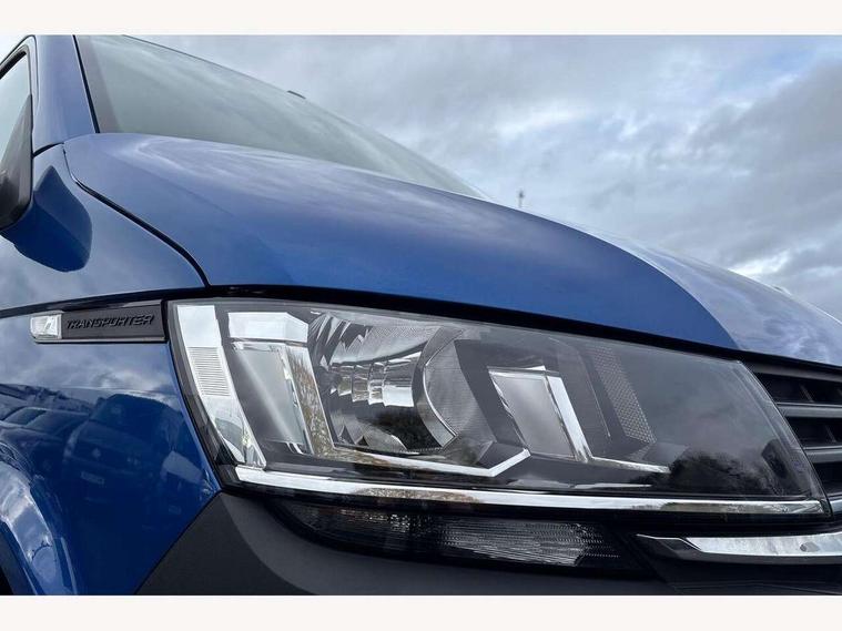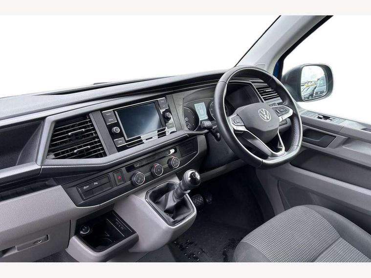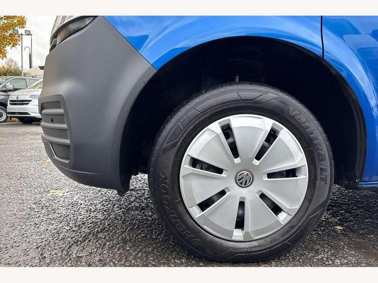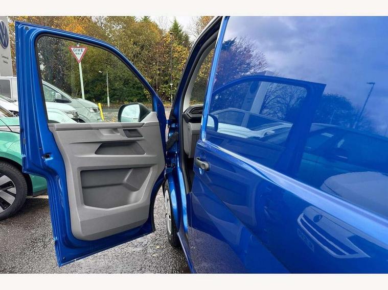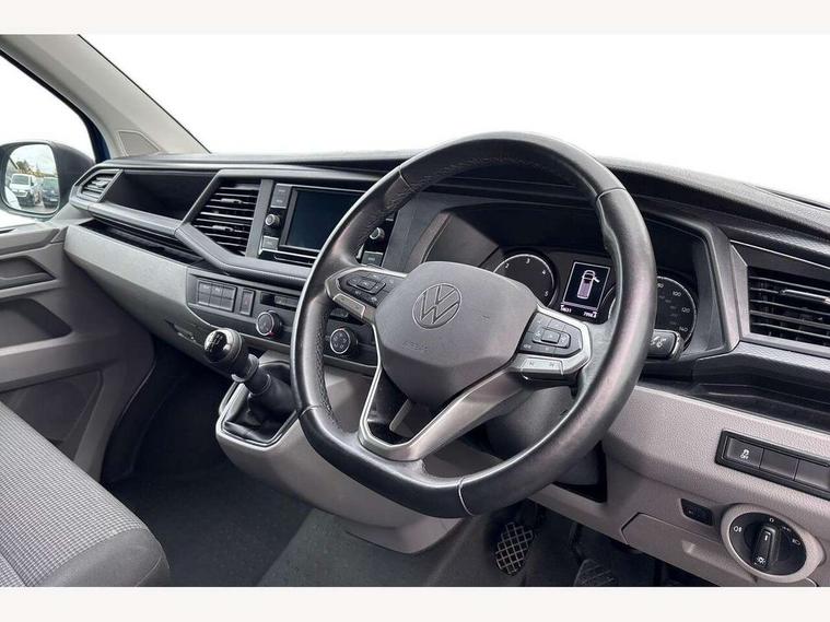 Cross wind assist, Dimmable illuminated instruments, Driver alert with Multi-function display plus, eCall emergency system, Forward collision warning front assist with autonomous emergency braking, Mobile phone interface, Multi function display plus with black and white display, 2 USB interfaces type C in dashboard, 4 speakers with 2 tweeters and 2 woofers, Composition colour radio with 6.5" touchscreen, Digital radio reception (DAB+), Volkswagen app connect, Closing rear wing door with unlatching from the inside, H7 twin halogen headlamps, Heat insulating glass (green) in cab and passenger/load compartment, Heat insulating windshield made of laminated glass, Left convex exterior mirror, Rear wing doors without window apertures, Right convex exterior mirror, Separate Daytime running lights, Transporter nameplate on the rear fender, Unpainted radiator grille with 2 chrome trims, 3 spoke leather wrapped multi function steering wheel, Comfort headliner in cab, hardboard roof trim in passenger and load compartment, Dust/pollen filter, Folding grab handles on roof frame, Front and rear left without window closed side panel in load compartment, Front seats on the right in 1st row of seat, Heavy duty tool kit and jack, High partition, Interior plastic loading edge protection, LED Interior lighting in load and passenger compartment, Standard lower part dashboard in palladium, Without refrigerant, Without right side window apertures in passenger and load compartment, Non smoker pack - Transporter, 3 point height adjustable seat belts on outer seats cab with electric pretensioners, Driver and front passenger airbag with front passenger airbag deactivation, Warning buzzer and light for driver and front passenger seat belt not fastened, Without child safety lock in passenger compartment, Electronic immobiliser, Wheel bolts without wheel locks, 16" chassis with 16" brake system, Diesel particulate filter, Electronic stability control, ABS, ASR with deactivation button, hill start assist and brake assist system, Standard anti drum measures, Start/stop system with regenerative breaking,