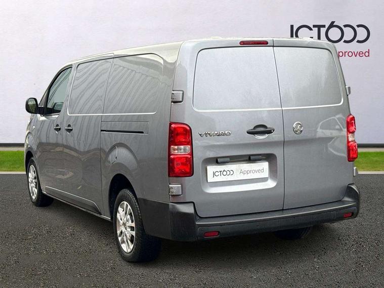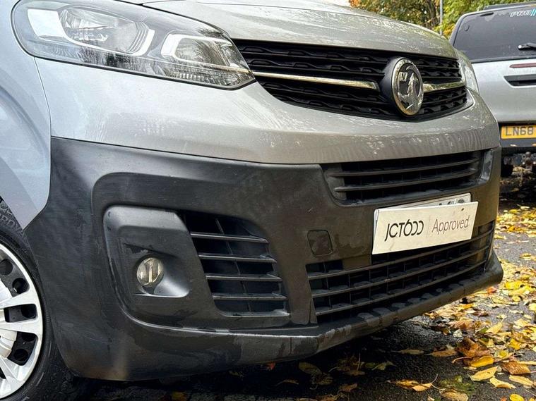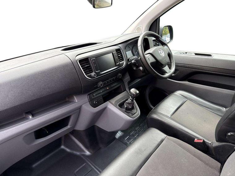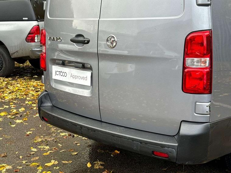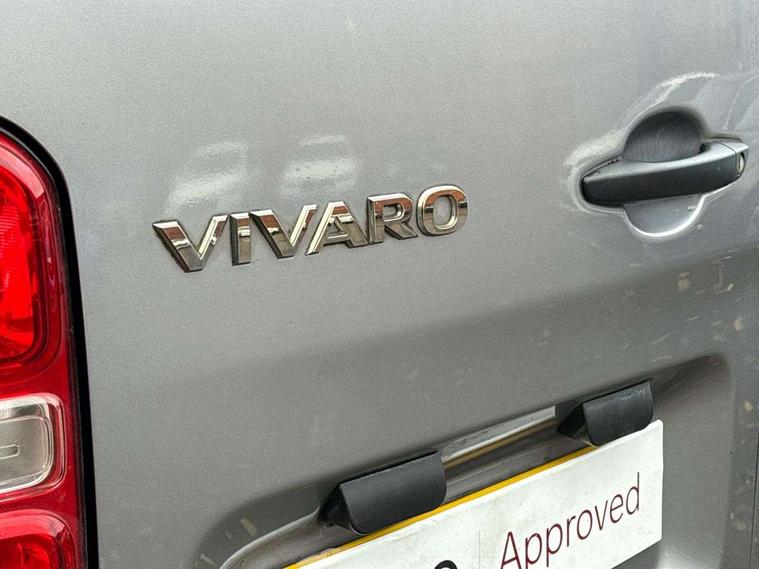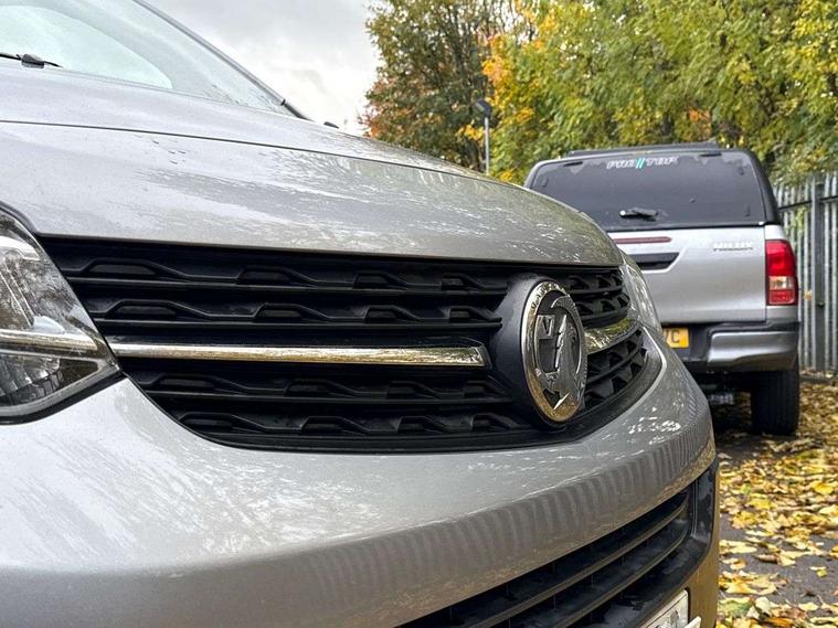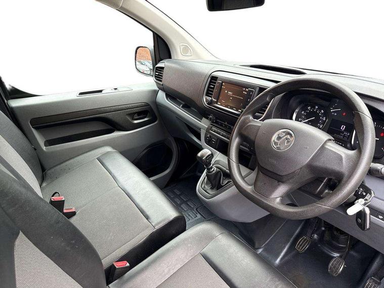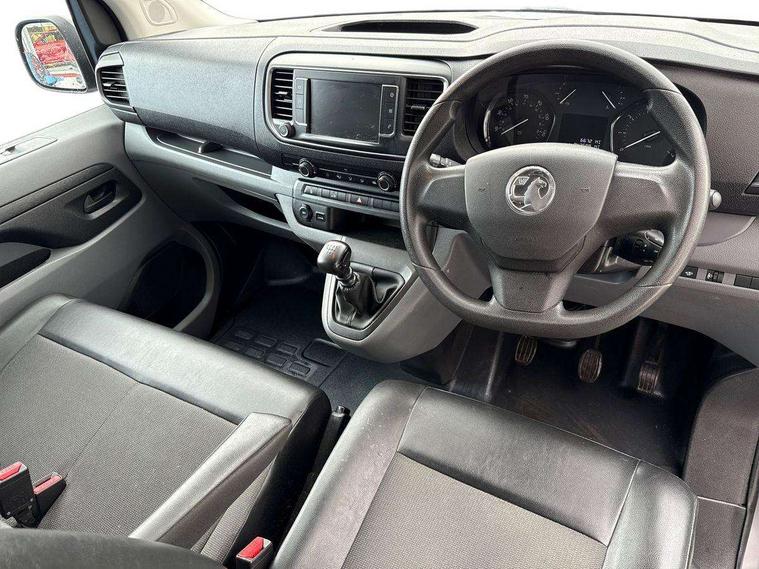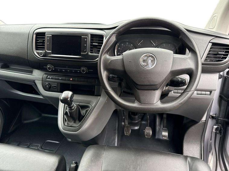 Driver drowsiness system, Instrumentation - Speedometer, rev counter, fuel gauge with low fuel warning light and coolant temperature warning light, Multi function trip computer, trip odometer, vehicle range, average speed, driving time, average and instantaneous fuel economy, PAS, Vauxhall connect box, Steering column mounted audio controls and flexible roof mounted aerial, Electric front windows with one touch up/down facility, Electrically adjustable + heated door mirrors, Front cornering lights, Front fog lights, Halogen headlights, Lights on audible warning, reversing light, hazard warning, rear fog light, high level brake light, side repeat indicators and daytime running lights, Unglazed nearside and offside sliding side access door, Cab soundproofing, Curitiba cloth upholstery with vinyl side bolsters, Facia storage-upper glovebox, open lower glovebox with 12v socket and aux-in , lower shelf, A4 storage on top, two drink holders, pocket in gear lever, Fixed floor mounted load restraint lashing eyes x8, Front door pockets, Reach and rake adj steering wheel, facia mounted gear lever, floor mounted handbrake lever, cab headliner, inertia reel lap and diagonal seatbelt, Visibility Pack - Vivaro, Driver airbag and front passenger airbag with deactivation switch, Height adjustable outer front seatbelts, Electronic engine deadlock immobiliser, steering column lock, lockable fuel filler cap and anti theft spare wheel cradle, Remote control door locking, selective door locking, two keys with integral remote and door deadlocks, Security alarm system with monitors doors, tailgate, bonnet and the passenger compartment, 22.5 litres AdBlue tank, Electronic brake force distribution, ESP including traction control, Four channel Anti lock braking system, Hill start assist,