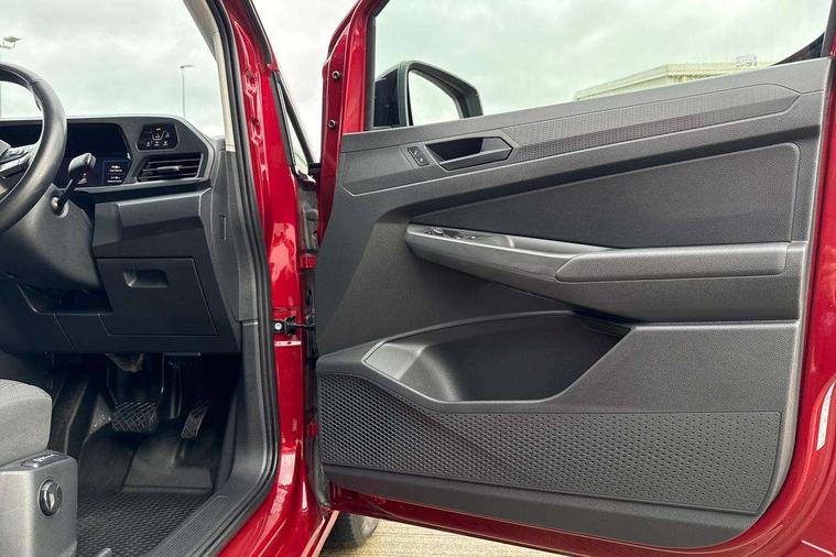 Bluetooth - Mobile phone interface, Digital cockpit, Digital multi-function cockpit display, Driver alert system, eCall emergency system, Front and rear parking sensors, Lane assist, Rear view camera, Seatbelt warning indicator, Service indicator, Start-stop system with regenerative braking, 2 USB interfaces type C in dashboard, App-Connect - Wireless for Apple CarPlay, DAB Radio, We Connect Plus Preparation, Automatic hazard light activation under emergency braking, Body coloured bumpers, Electric front windows, Gloss black painted exterior mirror housings, body-colored door handles and Silver sliding door rail, LED rear combination lights, LED rear tail lights, Rear view mirror with anti dazzle function, Roof rail preparation, Windscreen wiper with variable intermittent delay and wash-wipe system, Electronically controlled heating system, ergoComfort seats for driver, Interior light in headliner incorporting LED technology, Lockable glove compartment door with light, Manual heating and ventilation system, Manual height adjustment for front seats and seat cushion inclination and depth adjustment on drivers seat, Multi function leather steering wheel, Power-adjustable lumbar support for drivers seat, Reach and rake adjustable steering column, Six lashing points for securing loads, Steering wheel paddle shift, Storage compartments under driver and front passenger seats, Sun visors with mirror, airbag label on front passenger sun visor, Winter pack plus - Caddy, 3-point seat belts in front, with pretensioner and height adjustment, Driver and front passenger airbag with front passenger airbag deactivation, Keyless-Go without SAFELOCK, Tyre pressure monitoring system, Anti-theft alarm system, interior monitoring, backup horn, and towing protection, Electronic engine immobiliser, Remote central locking with deadlocks, interior locking, Anti locking braking system (ABS), Automatic post collision braking system, Diesel particulate filter, Electric parking brake with auto hold function, Electronic brake force distribution (EBD), Electronic differential lock (EDL), Electronic stabilisation programme (ESP), Engine drag torque control (MSR), Hill hold assist, Traction control system (TCS), Decorative beige birch vein inserts, Wheel bolts with anti-theft protection (unlockable),