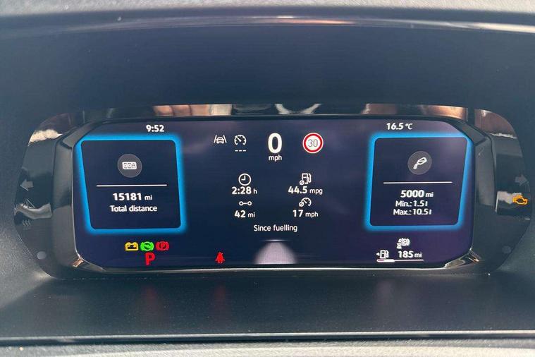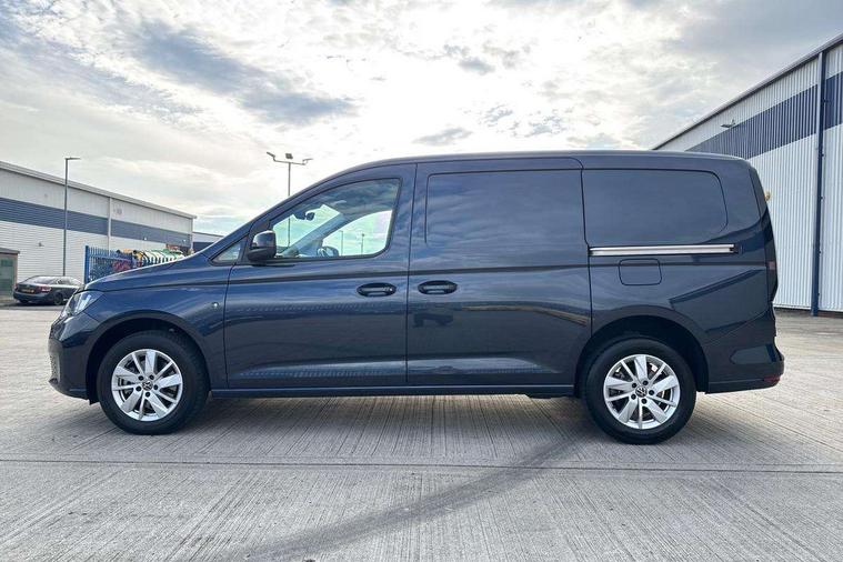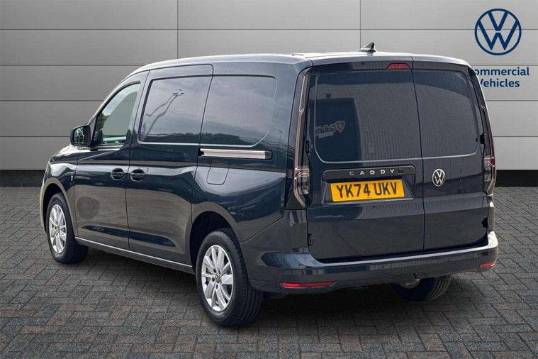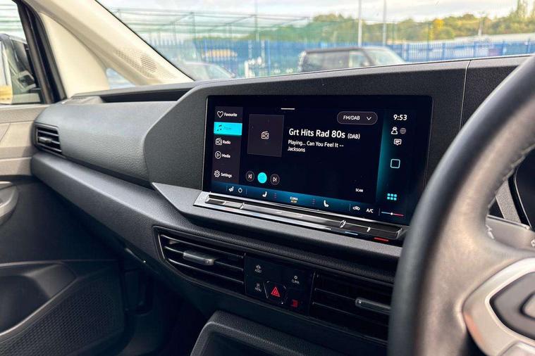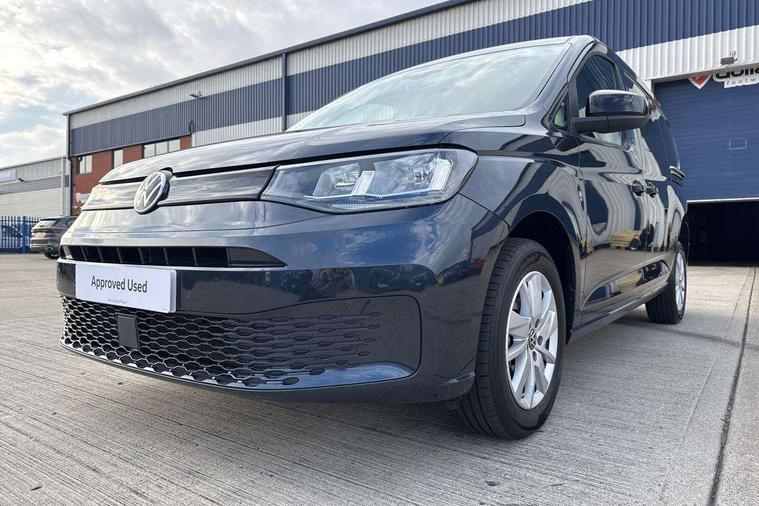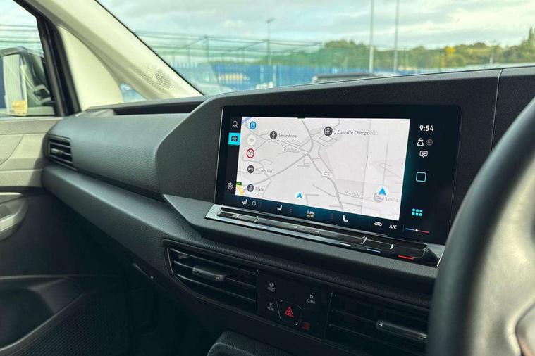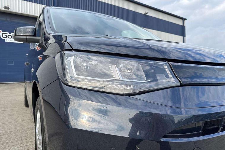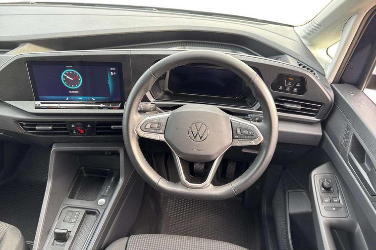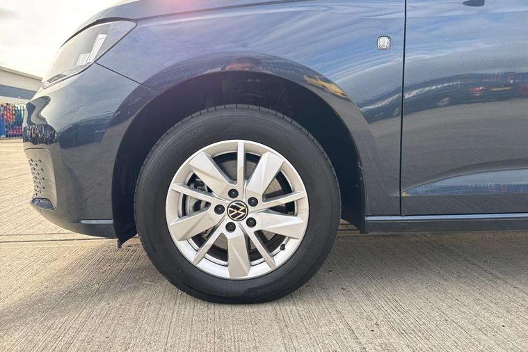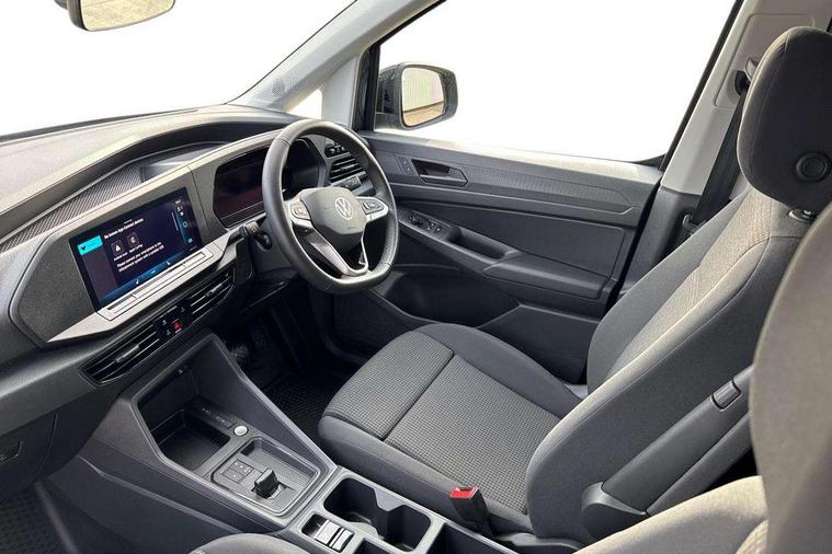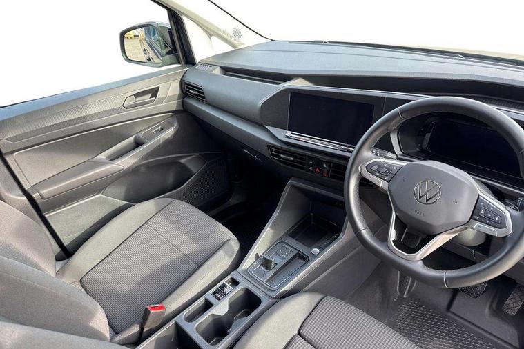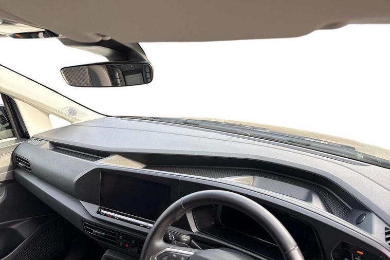 Bluetooth - Mobile phone interface, Digital cockpit, Digital multi-function cockpit display, Driver alert system, eCall emergency system, Front and rear parking sensors, Lane assist, Rear view camera, Seatbelt warning indicator, Service indicator, Start-stop system with regenerative braking, 2 USB interfaces type C in dashboard, App-Connect - Wireless for Apple CarPlay, DAB Radio, We Connect Plus Preparation, Automatic hazard light activation under emergency braking, Body coloured bumpers, Electric front windows, Gloss black painted exterior mirror housings, body-colored door handles and Silver sliding door rail, LED rear combination lights, LED rear tail lights, Rear view mirror with anti dazzle function, Roof rail preparation, Windscreen wiper with variable intermittent delay and wash-wipe system, Electronically controlled heating system, ergoComfort seats for driver, Interior light in headliner incorporting LED technology, Lockable glove compartment door with light, Manual heating and ventilation system, Manual height adjustment for front seats and seat cushion inclination and depth adjustment on drivers seat, Multi function leather steering wheel, Power-adjustable lumbar support for drivers seat, Reach and rake adjustable steering column, Six lashing points for securing loads, Steering wheel paddle shift, Storage compartments under driver and front passenger seats, Sun visors with mirror, airbag label on front passenger sun visor, Winter pack plus - Caddy, 3-point seat belts in front, with pretensioner and height adjustment, Driver and front passenger airbag with front passenger airbag deactivation, Keyless-Go without SAFELOCK, Tyre pressure monitoring system, Anti-theft alarm system, interior monitoring, backup horn, and towing protection, Electronic engine immobiliser, Remote central locking with deadlocks, interior locking, Anti locking braking system (ABS), Automatic post collision braking system, Diesel particulate filter, Electric parking brake with auto hold function, Electronic brake force distribution (EBD), Electronic differential lock (EDL), Electronic stabilisation programme (ESP), Engine drag torque control (MSR), Hill hold assist, Traction control system (TCS), Decorative beige birch vein inserts, Wheel bolts with anti-theft protection (unlockable),