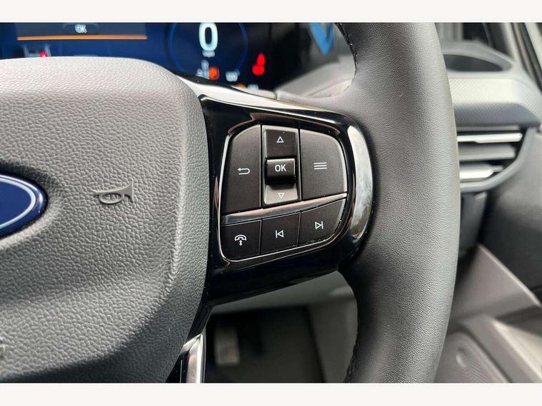 13" Touchscreen, 5G embedded modem, AECS NO SMS/Roll Detect 2G, PAS, Tyre pressure monitor, SYNC 4 - Android Auto/Apple Car Play, advance speech recognition, over the air update capability, Automatic headlights, Automatic windscreen wipers, Body coloured door mirrors, Body coloured front bumper, Body coloured rear bumpers, Daytime running lights, Electric front windows with one touch facility for driver and front passenger, Front mud flaps, Front splash guards, Low roof line, Quickclear front window defroster, Rear cargo hinged door, Rear splash guards, Trailer sway control, 8 Load compartment tie down loops, Courtesy light, Interior grab handle with driver's sunglasses holder, LED lights, Locking glove box lid, Sensico gearshift knob, 2 remote keys, Alcohol Interlock wiring preparation pack, Keyless entry and start, Locking wheel lug nut, Thatcham category 1 alarm, 20L AdBlue tank, ABS, Diesel particulate filter, ESP, Hill launch assist, Traction control, Full wheelcovers,
