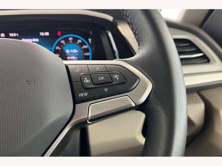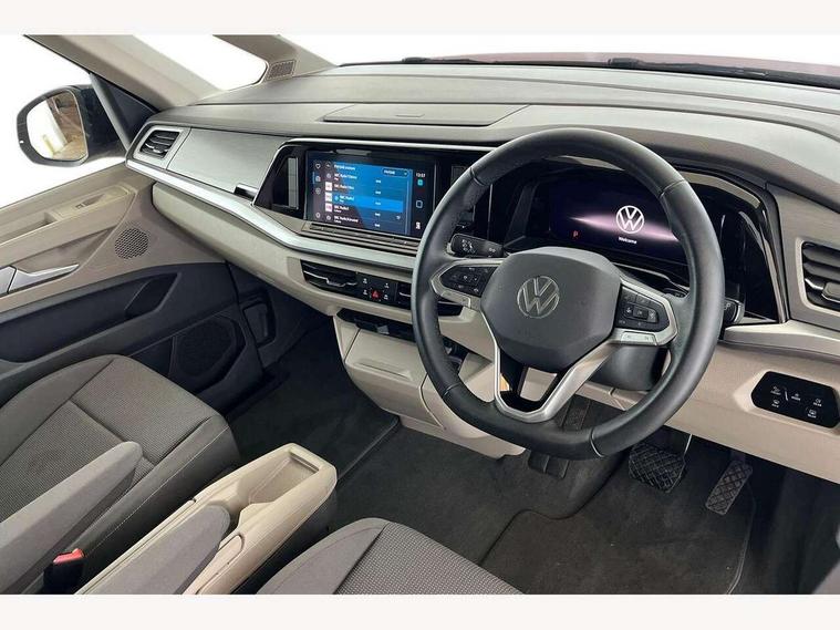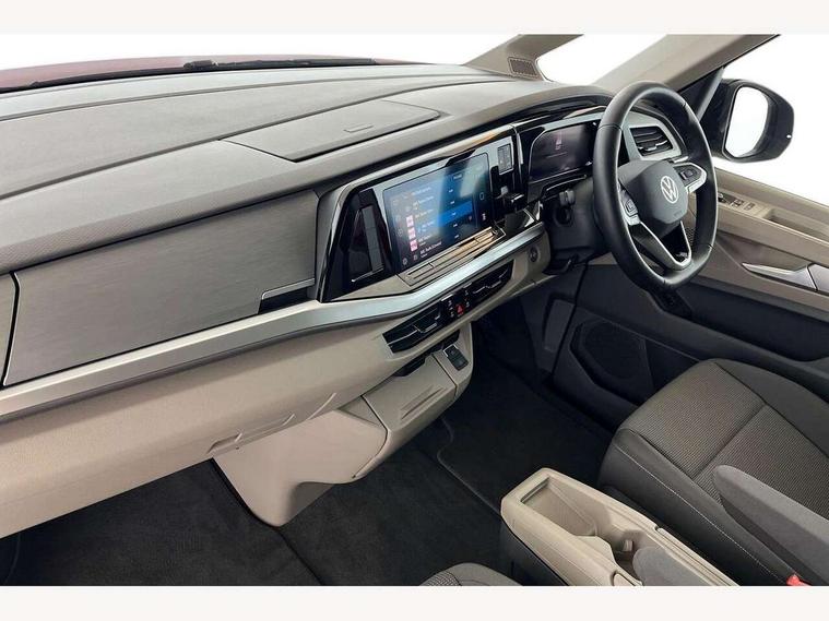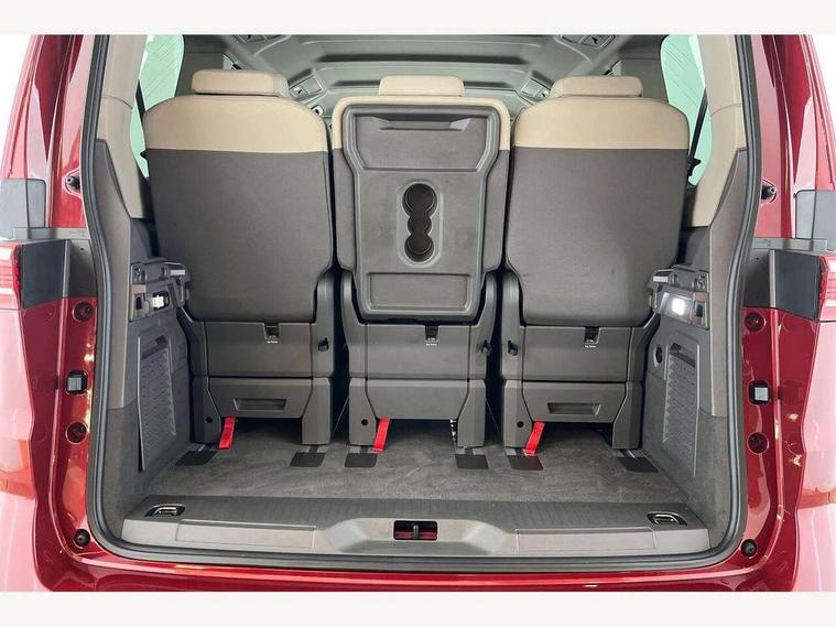 Adaptive cruise control with C2X including front assist and city emergency braking system, App-Connect incl. App-Connect Wireless for Apple CarPlay and Android Auto, Digital Cockpit Pro with 10.25" Display, Driver alert system, Dynamic road sign display, eCall emergency system, Lane keeping system Lane Assist, Mobile phone interface, PAS, Rear view camera, Socket AC Type 2, Tailgate, Voice control system including Alexa web app, We connect preparation, 1 x 6 metre charging cables - 16amp AC cable for wallbox chargepoints (mode 3), Charging cable Mode 3 Type 2 / 3 (16A), Electronic differential lock, 2 USB-C ports in front and 4 USB-C ports in passenger compartment, Digital radio reception (DAB+), Automatic headlight control with welcome home lights, Body coloured exterior door handles, Break away auto dimming rear view interior mirror, Dynamic headlight range control (self adjusting), Electrically adjustable, heated and folding door mirrors, Front fog lights, Glossy black painted radiator grille with 2 chrome trims, Heated rear window with window wiper and washer system, High gloss black exterior mirror housing, Interior noise reduction measures, Laminated safety glass windshield, heat and sound insulating, LED 3rd brake lamp, LED main headlamps with LED separate daytime running light, LED rear combination lamps, Rear wiper, Sliding door on left/right with power latching, Windshield wiper intermittent control with rain sensor, 1 x 12V sockets on the dash panel, 12V socket in passenger compartment, 3 seat bench in 3rd row, 7 single seats removable/movable, Carpet mats in cab, Front and rear head restraints, Grab handles on A pillar for access, on driver and front passenger side, Height adjustable seats, Height and longitudinal adjustment steering wheel with gear shift paddles, Illumination lockable glovebox compartment, ISOFIX (including i-size) and top tether in all seats in 2nd and 3rd rows, LED luggage compartment lighting X 2, Load compartment partition to 20kg with bag hooks and luggage net, Luggage compartment lid power latching with unlatching from inside, Multifunction leather steering wheel with tiptronic, Reinforced carpet floor covering in passenger compartment, Removable armrests for front seats with power adjustable lumbar support and folding table for 2nd row passenger seats, Removable armrests in 2nd row passenger seats, Single front passenger seat, Storage compartment under the 2nd and 3rd row seat and two waste bins, Sun visors with illuminated vanity mirrors and airbag warning label on front passenger sun visors, Surround lighting in door area, 3x3 point rear seat belts, ABS, Automatic post collision braking system, Autonomous emergency braking front assist with pedestrian and cyclist monitoring, Driver and front passenger airbag with front passenger airbag deactivation, Electric childproof lock, Electronic stability control (ESC) and Electromechanical brake booster, ESP, First aid kit with warning triangle and safety vest, Hill hold assist, Seat belt warning for the drivers and all passengers seats if unfastened, Side and curtain airbags for driver and front passenger, curtain airbags for outer seats in rear, centre airbag in front, Single tone horn, Traction control, Tyre pressure monitoring system, Anti theft alarm system with interior monitoring in cab, backup horn and towing protection, Keyless Start, Start/stop button on centre console, Dark silver brushed decorative inserts,