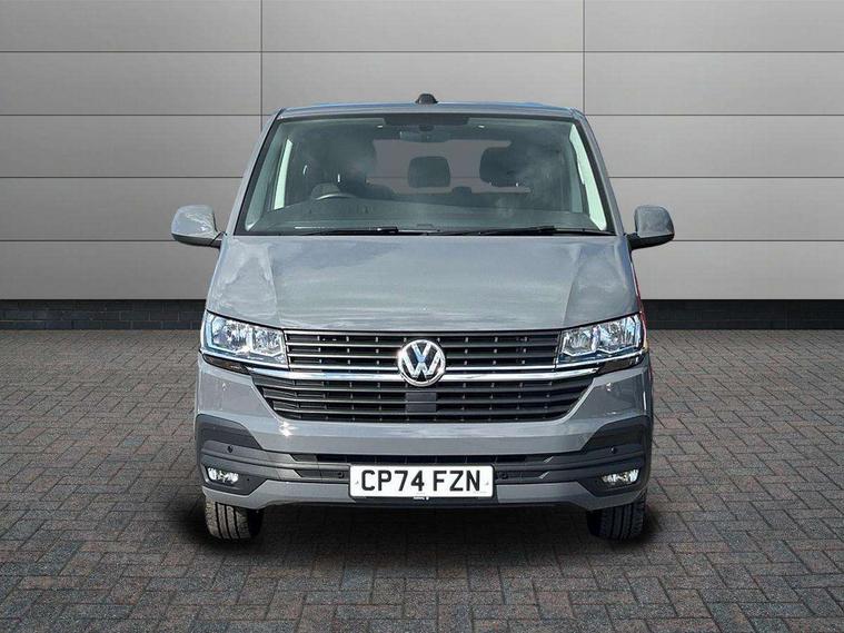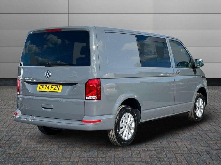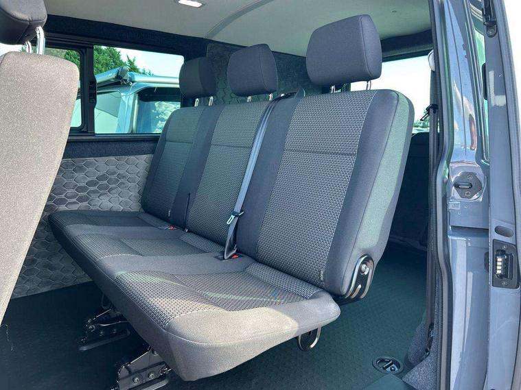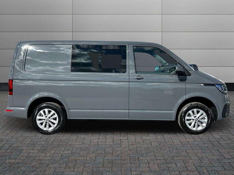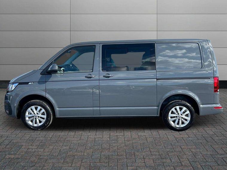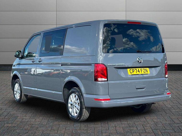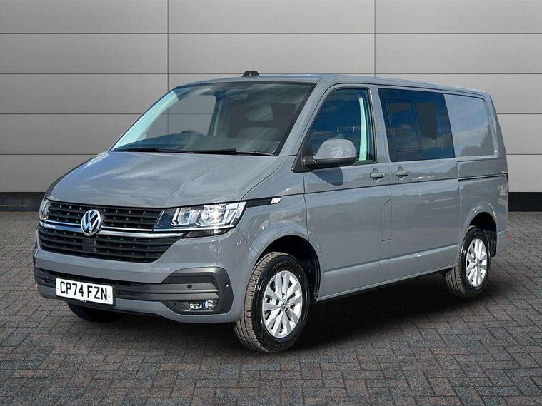 Adaptive cruise control, Child seat anchors ISOFIX and top tether in 2nd row of seats, Cross wind assist, Dimmable illuminated instruments, Driver alert with black and white multi function display plus, eCall emergency system, Forward collision warning front assist with autonomous emergency braking, Headlight range control, Mobile phone interface, Without voice control, 2 USB interfaces type C in dashboard, 4 speakers with 2 tweeters and 2 woofers, Composition colour radio with 6.5" touchscreen, Digital radio reception (DAB+), Volkswagen app connect, Automatic headlight control, leaving home and manual coming home feature, Front fog lamps with cornering light, Green heat insulating glass, Heated front windscreen, Illuminated steps in passenger/load compartment, Left convex exterior mirror, Power folding adjustable door mirrors with separately heated, Privacy glass from the B-pillar and heat-insulating glass in front, Radiator grille with 2 chrome trims, Rear window with heated insulating glass, heated rear window wiper and washer system, Right convex exterior mirror, Tailgate closing with unlatching from the inside, Transporter nameplate on the rear fender, Windshield wiper intermittent control with rain sensor for windshield wipers, Without adhesive film, 3 spoke leather wrapped multi function steering wheel, Additional sound deadening measures in cab and passenger compartment, Auto dimming breakaway interior rear view mirror, Comfort headliner in cab, hardboard roof trim in passenger and load compartment, Dust/pollen filter, Folding grab handles and storage compartments on cab seats, reading light, Front seats on the right in 1st row of seat, Glove compartment with illumination, Heavy duty tool kit and jack, Interior plastic loading edge protection, Lashing rings for load restraint system, LED Interior lighting in load and passenger compartment, Manual height adjustable and lumbar support for driver and single passenger seats, Medium height for vehicles with window aperture hardboard side trim panels in passenger/load compartment, Refrigerant R134a, Standard lower part dashboard in palladium, Without partition, Without seats in 3rd row of seats, Comfort pack - Transporter, Exterior pack without fog light- Transporter, Light and vision pack - Transporter, Non smoker pack - Transporter, 3 point height adjustable seat belts on outer seats cab with electric pretensioners, Driver and front passenger airbag with front passenger airbag deactivation, Power operated child safety lock, Warning buzzer and light for driver seat belt not fastened, Anti theft alarm system with interior monitoring in cab, backup horn and towing protection, Lockable wheel bolts, 16" chassis with 16" brake system, Additional 12V socket, Diesel particulate filter, Electronic stability control, ABS, ASR with deactivation button, hill start assist and brake assist system, Speed limiter, Start/stop system with regenerative breaking, 16" Clayton alloy wheels, Wheel trims,