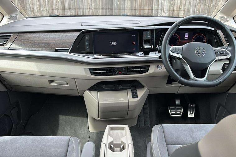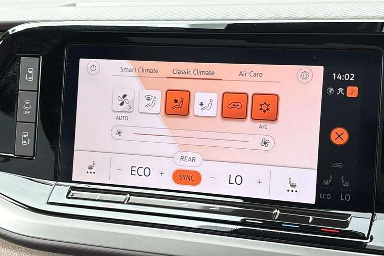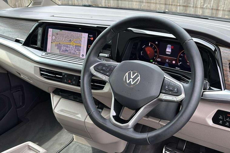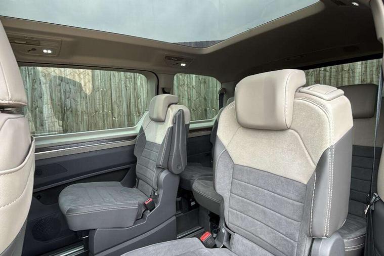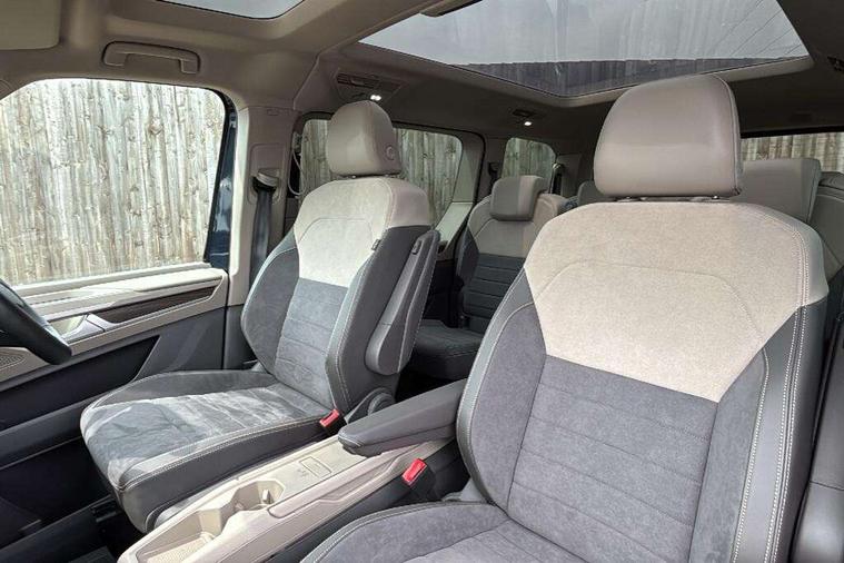 Adaptive cruise control with C2X including front assist and city emergency braking system, App-Connect incl. App-Connect Wireless for Apple CarPlay and Android Auto, Digital Cockpit Pro with 10.25" Display, Driver alert system, Dynamic road sign display, eCall emergency system, Electric tailgate with virtual pedal, Electrically-operated tailgate opening and closing function (Easy open), operated via foot movement under rear tailgate, Emergency assist, Lane change system with side assist including blind spot monitor, rear traffic alert and exit warning system, Lane keeping system Lane Assist, Mobile phone interface, PAS, Rear view camera, Semi-automated driving assistance, Socket AC Type 2, Tailgate, Travel assist, Voice control system including Alexa web app, We connect preparation, 1 x 6 metre charging cables - 16amp AC cable for wallbox chargepoints (mode 3), Electronic differential lock, 2 USB-C ports in front and 4 USB-C ports in passenger compartment, Digital radio reception (DAB+), Additional interior noise reduction measures, Advanced high beam control dynamic light assist for LED matrix headlamps, Automatic headlight control with welcome home lights, Body coloured exterior door handles, Break away auto dimming rear view interior mirror, Dynamic headlight range control with dynamic cornering light, Electric sliding rear side door on the left/right with easy open feature, Electrically adjustable, heated and folding door mirrors, Front fog lights, Glossy black painted radiator grille with 2 illuminated chrome trims, Heated rear window with window wiper and washer system, Heated windscreen, High gloss black exterior mirror housing, IQ.Light LED matrix headlamps with LED separate daytime running light, Laminated safety glass windshield, heat and sound insulating, LED 3rd brake lamp, LED rear combination lamps, Rear wiper, Stainless steel tailgate trim, Surround lighting in door area and tailgate with logo projection in door area, Windshield wiper intermittent control with rain sensor, 1 x 12V sockets on the dash panel, 12V socket in passenger compartment, 3 seat bench in 3rd row, 30 colours ambient interior lighting and tailgate surround lighting, 7 single seats removable/movable, Carpet mats in cab, Climatronic 3 zone air conditioning with 2nd evaporator, auxiliary heater, air conditioned headliner and additional passenger control, Front and rear head restraints, Grab handles on A pillar for access, on driver and front passenger side, Heated steering wheel, Height adjustable seats, Height and longitudinal adjustment steering wheel with gear shift paddles, Illumination lockable glovebox compartment, ISOFIX (including i-size) and top tether in all seats in 2nd and 3rd rows, LED luggage compartment lighting X 2, Load compartment partition to 20kg with bag hooks and luggage net, Luggage compartment lid power latching with unlatching from inside, Multifunction leather steering wheel with tiptronic, Reinforced carpet floor covering in passenger compartment, Removable armrests for front seats with power adjustable lumbar support and folding table for 2nd row passenger seats, Removable armrests in 2nd row passenger seats, Single front passenger seat, Stainless steel pedals, Storage compartment under the 2nd and 3rd row seat and two waste bins, Sun visors with illuminated vanity mirrors and airbag warning label on front passenger sun visors, 3x3 point rear seat belts, ABS, Automatic post collision braking system, Autonomous emergency braking front assist with pedestrian and cyclist monitoring, Driver and front passenger airbag with front passenger airbag deactivation, Electric childproof lock, Electronic stability control (ESC) and Electromechanical brake booster, ESP, First aid kit with warning triangle and safety vest, Front disc brakes, Hill hold assist, Seat belt warning for the drivers and all passengers seats if unfastened, Side and curtain airbags for driver and front passenger, curtain airbags for outer seats in rear, centre airbag in front, Single tone horn, Traction control, Tyre pressure monitoring system, Anti theft alarm system with interior monitoring in cab, backup horn and towing protection, Central locking system keyless entry with touch two stage unlocking, Start/stop button on centre console, Dark woodgrain optic decorative inserts,
