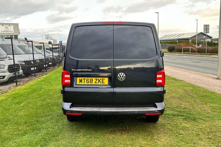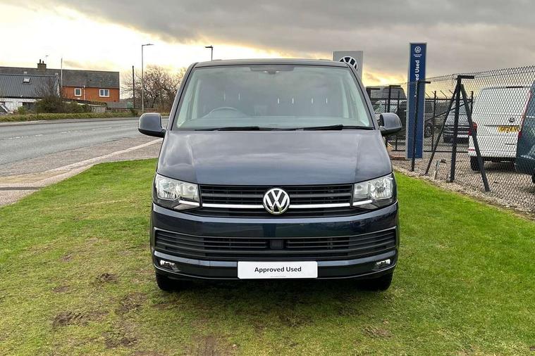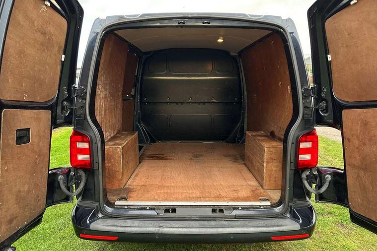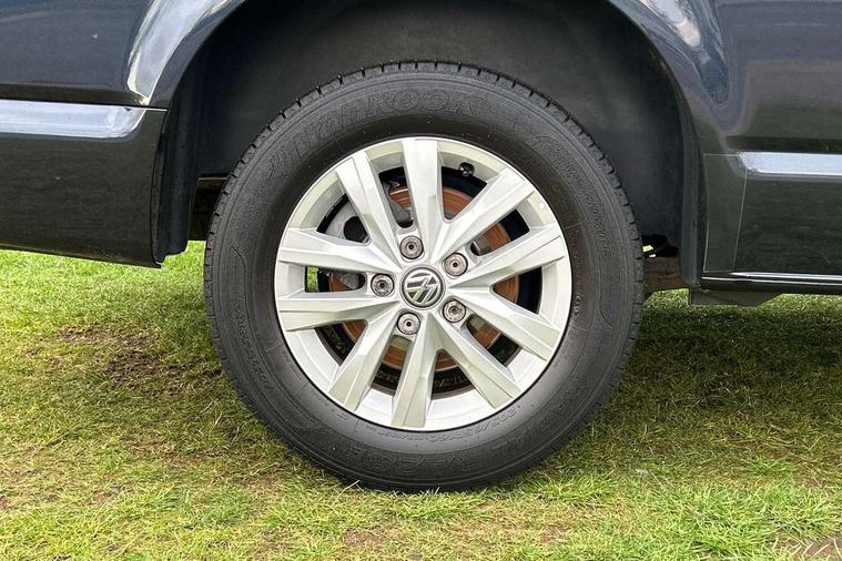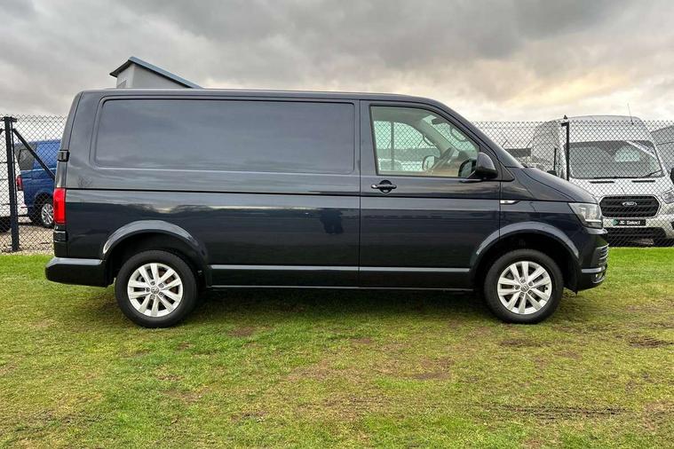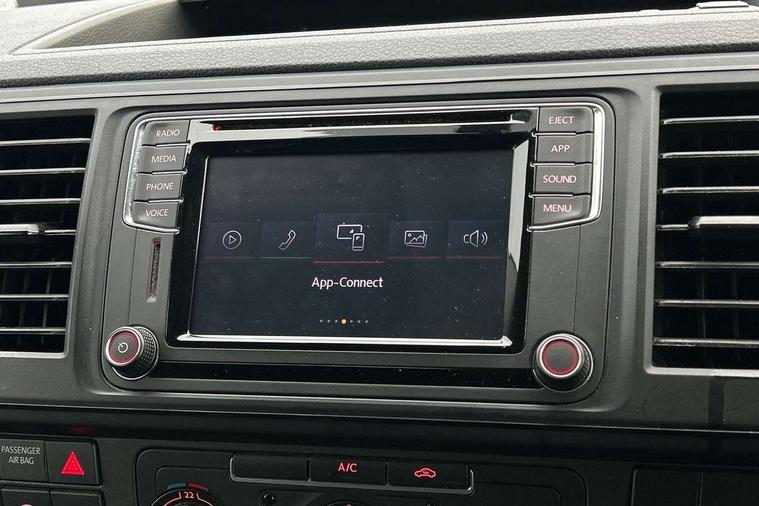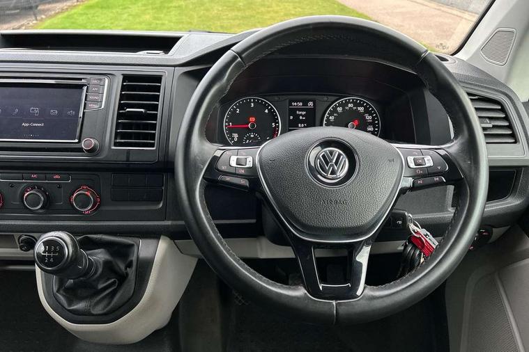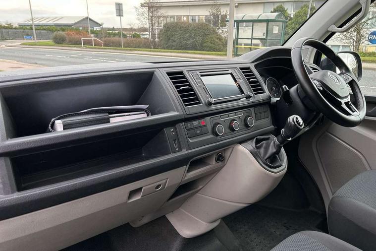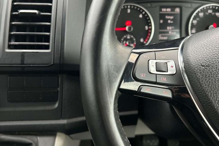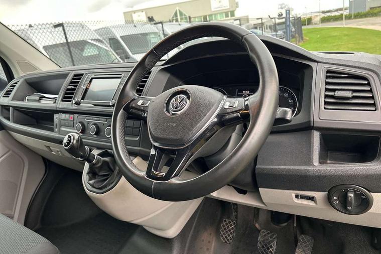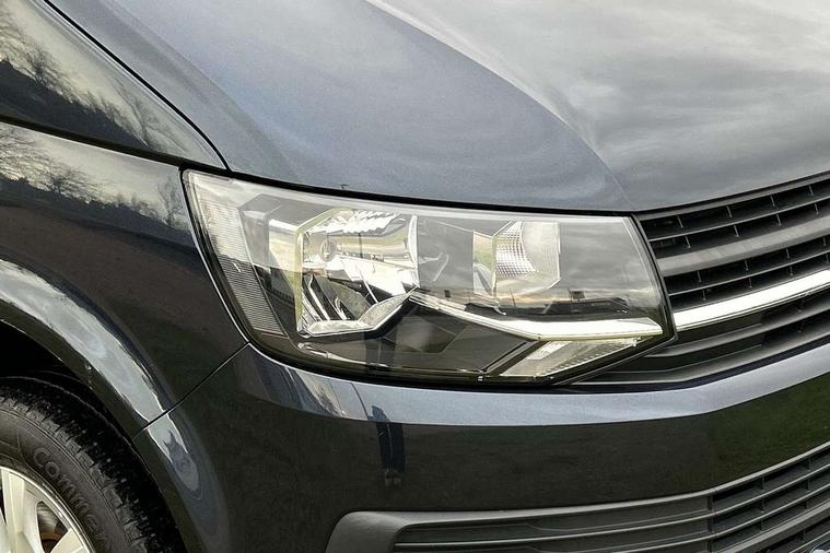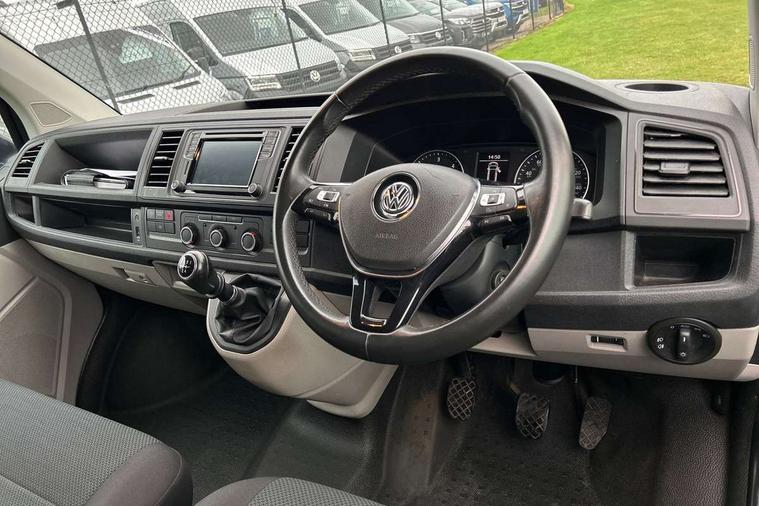 Bluetooth connectivity, Collision prevention assist, Digital clock, Driver alert with Multi-function display plus, Gearshift indicator, Headlight range control, Lights on warning buzzer, PAS, Rear door interior release lever, Rev counter, SD card slot, Service indicator, 4 speakers, Aux input socket, DAB radio/CD player, USB connection, 180 degree opening rear doors, 2 speed windscreen wipers/intermittent wash, 8 securing points for roof load rack system, Auto dimming rear view mirror, Automatic coming/leaving home lighting function, Electric front windows, Front and rear towing rings, Front fog lights with cornering function, Heat insulating glass, Heat reflective glass, Heated front windscreen, Laminated windscreen, Rear wing doors without windows, 1 coat hook, 1 hook on lower dash on front passenger side, 2 rear interior lights, switchable by door, 2 storage trays in dashboard, 2 sun visors folding and pivoted, 6 lashing points for securing loads, Additional 12v accessory socket, Cab interior light, Drinks holder, Driver's seat armrest, Dust/pollen filter, Front door pockets with bottle holder, Half height load lining, Height adjustable head restraints, Height and rake adjustable steering column, Interior entry steps, Interior roof trim - hardboard, Interior roof trim as headliner, Locking glovebox, Multifunction leather steering wheel, gearknob and gaiter, Open storage compartment in dash panel including mobile phone holder, Passenger seat with reach and rake adjustment, Sheet steel flooring, Side roof frame trim, Storage box integrated in roof headliner, Storage compartments in doors, Storage compartments in outer side of driver & passenger seats, Storage net on lower dash passenger side, Cab comfort pack - Transporter Van, Electric pack A - Transporter, Exterior pack - Transporter, Lights and vision pack - Transporter, Non smoker pack, 3 point inertia reel belt on all seats, Brake pad wear indicator, Front passenger airbag deactivation, Height adjustable seatbelts with tensioners, Anti-theft alarm with rear control in cab, backup horn and towing protection, Locking wheel bolts, 70 litre fuel tank, ABS with electronic brake distribution, ASR traction control, Diesel particulate filter, EDL, Electronic differential lock, Engine braking control (MSR), ESP, Hill start assist, Traction control, Platinum grey trim, 16" Clayton alloy wheels,