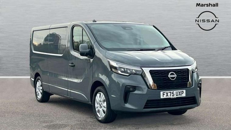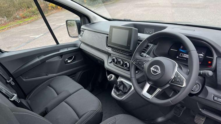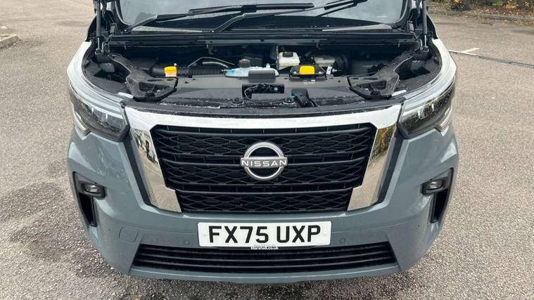 7" Colour TFT screen in dials dash, Blind Spot warning system, Bluetooth, Car phone pre installed, Driver drowsiness and attention warning, eCall, Front parking sensor, Intelligent Speed Assist (cruise control with speed limiter and traffic sign recognition), Lane departure warning system, Low fuel level warning light, Navigation system, Nissan connected services, PAS, Rear parking sensor, Rear view camera, Service indicator, Trip computer, AM/FM Radio, Apple Carplay/Android Auto, Audio switch on steering wheel, Aux port, Digital radio (DAB), Media center with 8" Touchscreen at centre of dashboard and multi-touch support, USB socket, Automatic headlights and wipers, Blind spot mirror in sunvisor, Body coloured exterior mirrors, Body coloured front and rear bumper, side mouldings and rear columns, Daytime running lights, Electric front windows with one touch drivers window, Electric heated and folding door mirrors, High low headlights beam, LED front fog lights, LED headlights, Left side sliding door, 2 x cargo load mounting hooks on each side of C and D pillars, 4 x cargo floor load mounting hooks on each side, Cloth upholstery, Cupholders on dashboard, Drivers armrest, Foldable Passenger bench with fixed table, Front automatic AC, Front head restraints, Full steel bulkhead, Height adjustable driver seat with lumbar support, Imitation leather steering wheel, Loadthrough facility in bulkhead, Passenger bench with underseat storage, Steering wheel rake adjustment, Steering wheel reach adjustment, Automatic door locking (at 5mph), Driver's airbag, Passenger airbag, Tyre pressure monitoring system, Alcohol interlock predisposition, Deadlocks, I Key, Insurance approved immobiliser, Radio frequency remote central locking, Thatcham alarm system, 12V socket in load area, ABS + EBD, Automatic forward emergency braking system (AEBS), ESP, Hill start assist and Extended grip, 17" alloy wheels, Full size spare wheel,