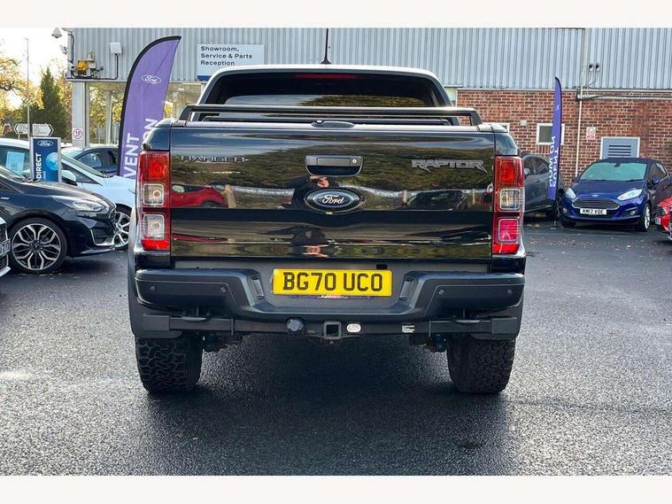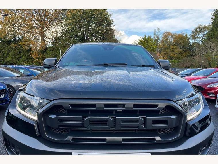2 key fob, Collision mitigation braking system, Electric power assisted steering, Fixed rear view camera, Intelligent speed assistant, Lane keeping aid, Speed control with ASLD, AEB and ISA, Speed sign recognition, Trip computer, Automatic headlights, Black door mirrors, Black front fender grille, Black plastic front bumper, Black radiator grille, Black side steps with Raptor logo, Black tailgate handle, Daytime running lights, Dual power heated fold back door mirror with puddle lamp and signal, Dyno grey exterior door handle, Dyno grey painted rear bumper, Dyno grey sports hoop with side rails, Electrically operated windows with one shot driver's window, Electrochromic interior mirror, Front splash guard and mud flaps, Heated windshield and rear window, Heavy body construction, High mounted stop lamp with cargo area light, LED Front fog lamp, LED headlamps, Low speed crash foam in bumper, Power rear side window, Privacy glass, Rain sensitive windshield wipers, Rear bumper sensor device, Rear splash guard, Single rear fog lamp, Tailgate - Easy-lift/lower mechanism, Under hood engine cover, Underbody protection, Cargo management system, Centre console coolbox, Chrome interior door handle, Driver seat back mounted map pocket, Dual control system - Electronic air temperature control (EATC), Ebony headliner, Front roof interior assist handle, Heated front seat, Leather gearknob, Leather handbrake with chrome button, Load box bedliner including power point and tie down hook, Mountain top lockable cover and load bars, Power adjustable 8 way driver seat, Power adjustable 8 way passenger seat, Premium front and rear floor mats with Raptor logo, Reach and rake adjustable steering column, Rear seat centre armrest, Roof storage for driver sunglasses, Second row bench seat, Single driver sunvisor with illuminated vanity mirror and ticket holder + sliding rod, Single passenger sunvisor with illuminated vanity mirror + sliding rod, Soho grain premium leather upholstery with Raptor logo, Unique leather stitched steering wheel, Vinyl door trim panel insert, Washer tank level warn lamp, ICE feature pack 129 - Ranger, Trailer tow pack - Ranger, 3 point inertia rear seatbelts, Child proof rear door locks, Driver and front passenger airbag, side airbag, curtain airbag and driver knee airbag, ISOFIX hardpoint attachment, Passenger airbag disable lamp, Seat mounted Thorax side airbags, Seatbelt reminders for driver and front passenger, 433 MHz high power door lock frequency, Double locking power door lock, Immobiliser, Locking wheel nuts, Passive keyless entry and start system, Power tailgate lock, Security lock group 5, Thatcham security system, Volumetric remote alarm system with less battery backup, ABS, ESP, RSC and Terrain management, Emergency brake assist, Loadbox power point plug, Locking rear axle, Performance suspension, Power converter, Standard electic starter, 17" Dyno grey alloy wheels and Dyno grey alloy spare wheel, All terrain tyres,